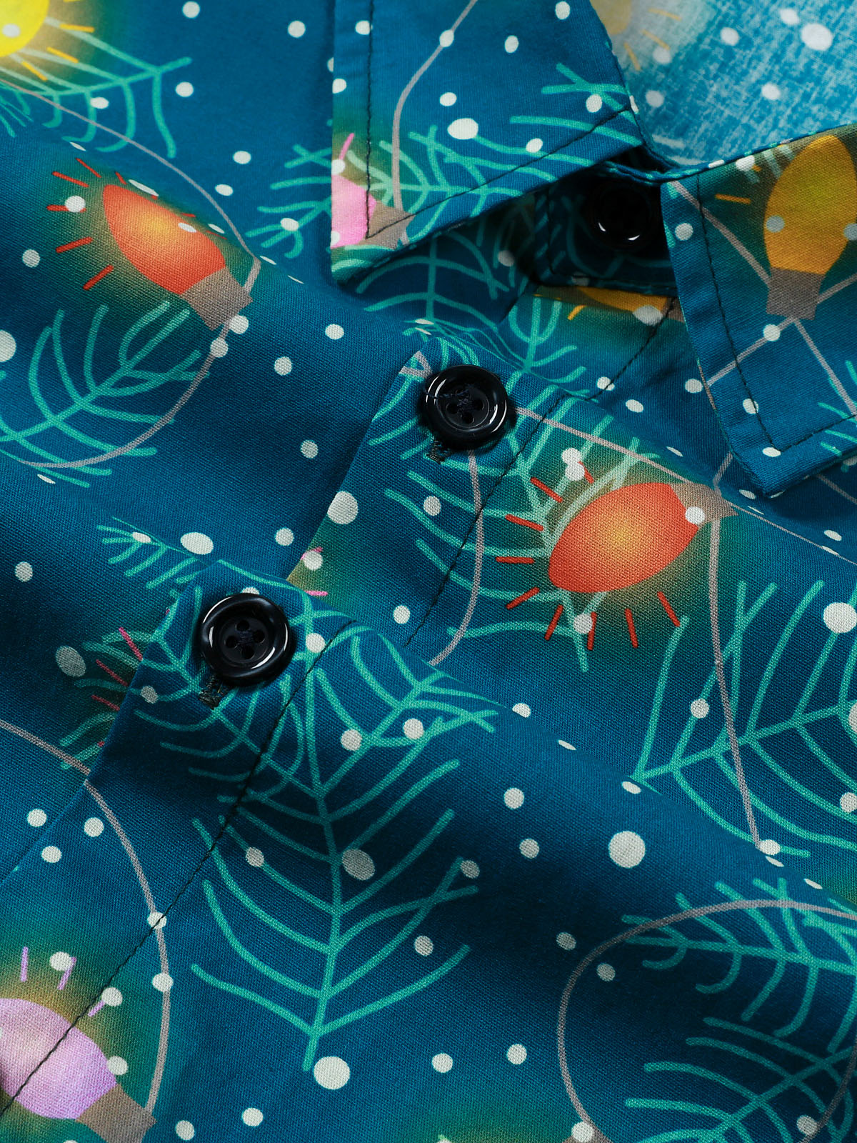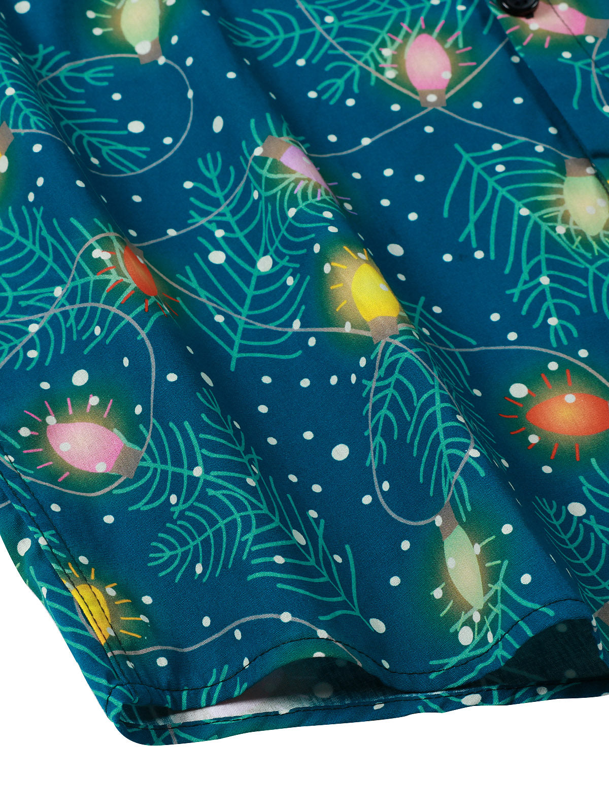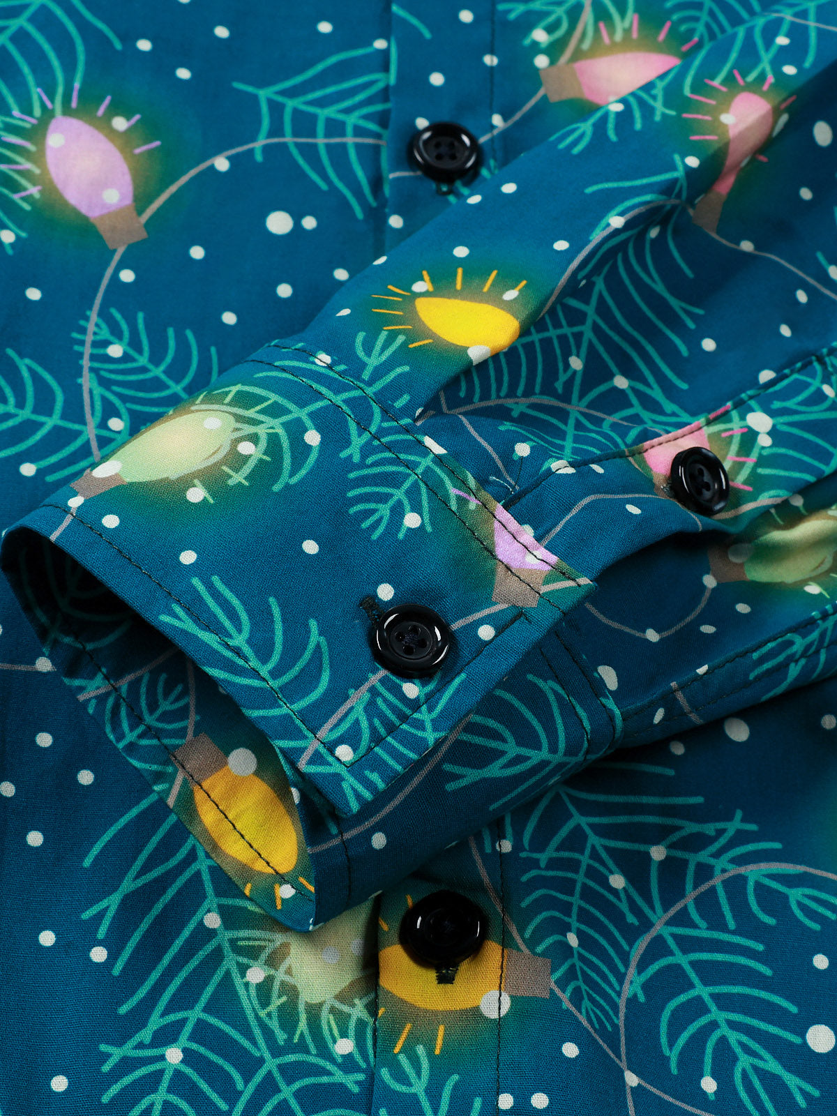 Herren Langarm-Baumwollhemd mit Weihnachtsbeleuchtung
