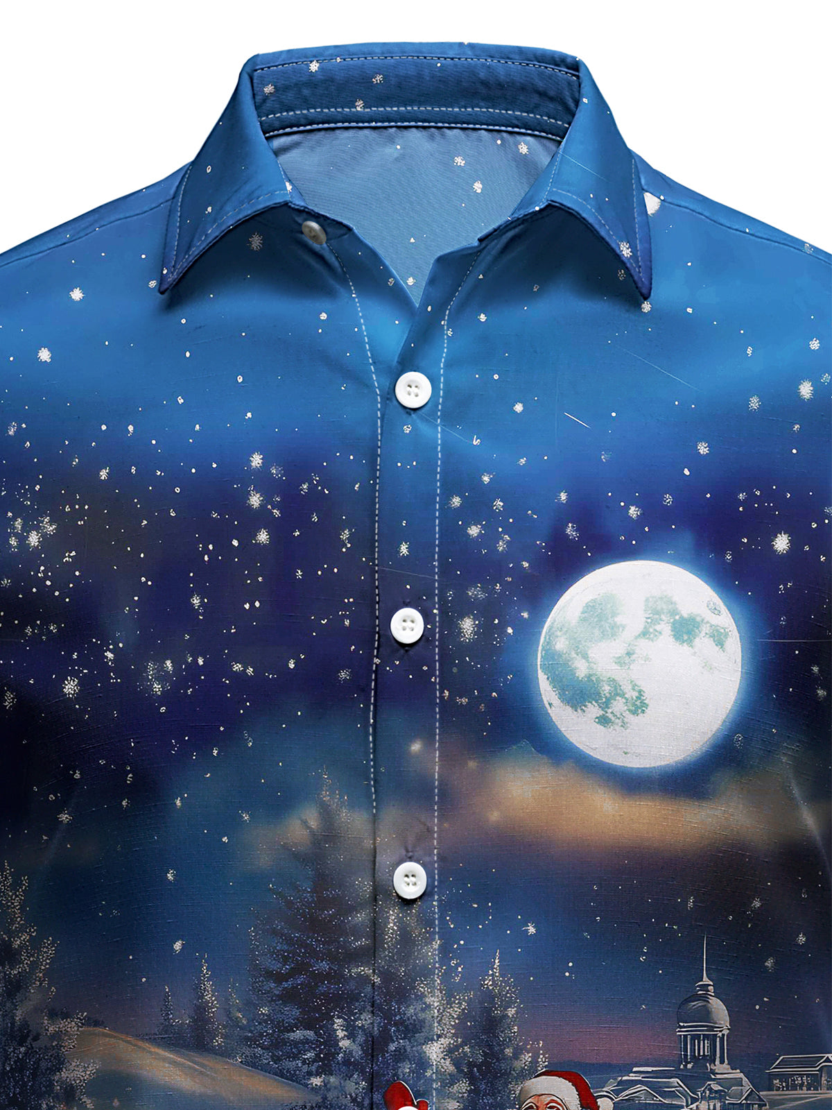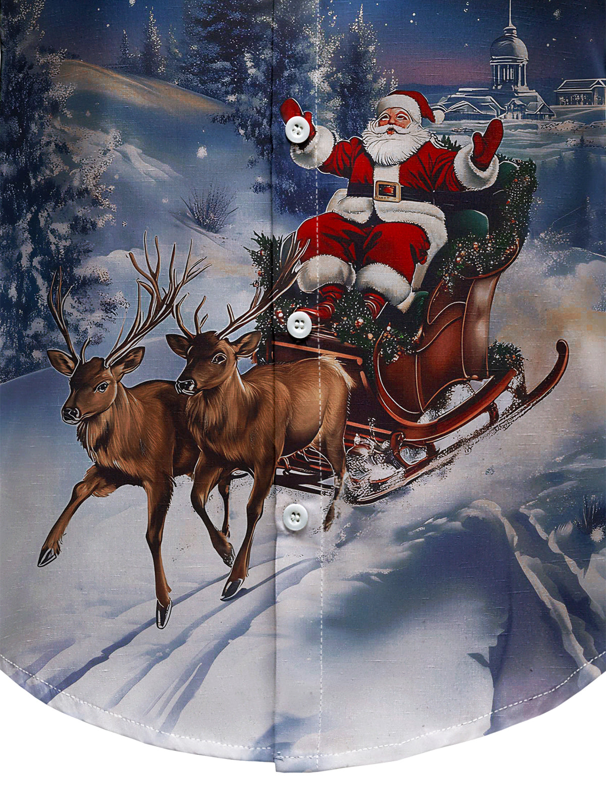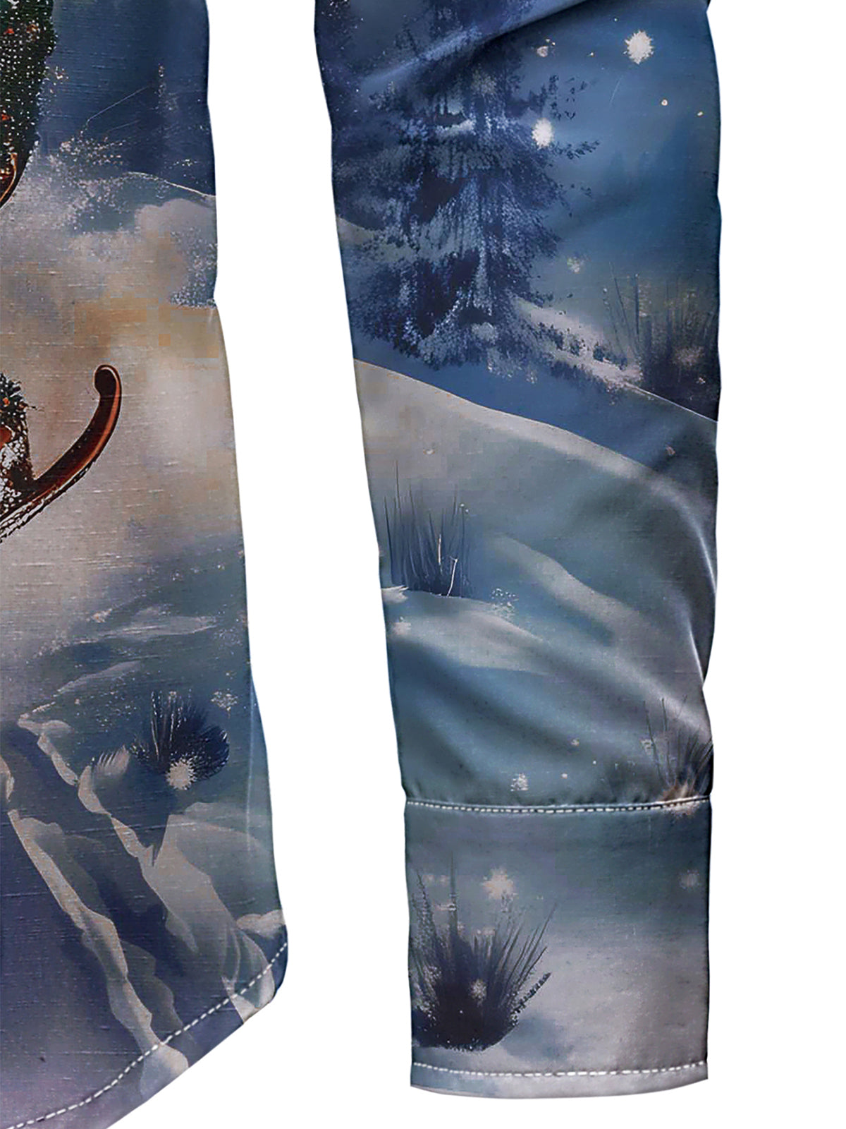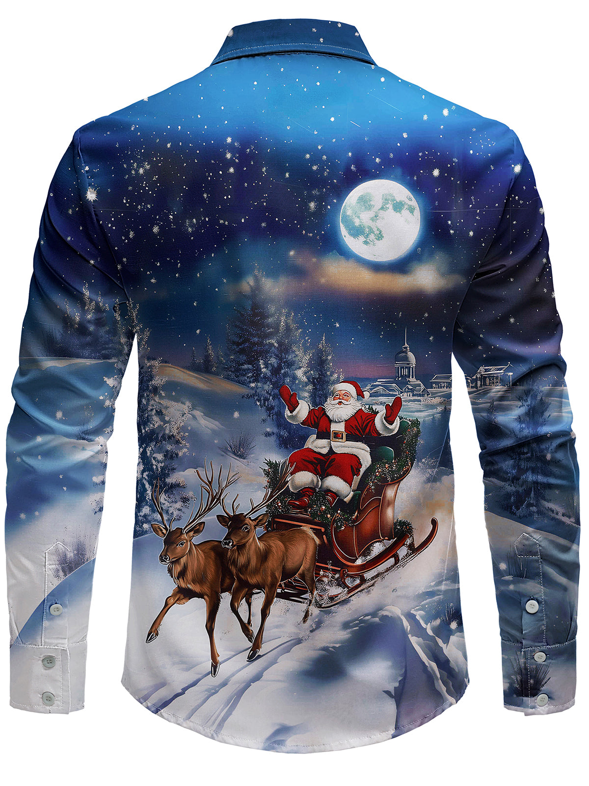 Herren Weihnachts Langarmshirt mit Elchschlitten und Weihnachtsmann