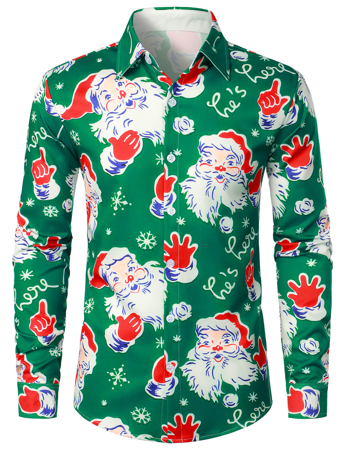 Herren Weihnachten Muster Grün Weihnachtshemd