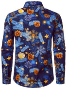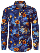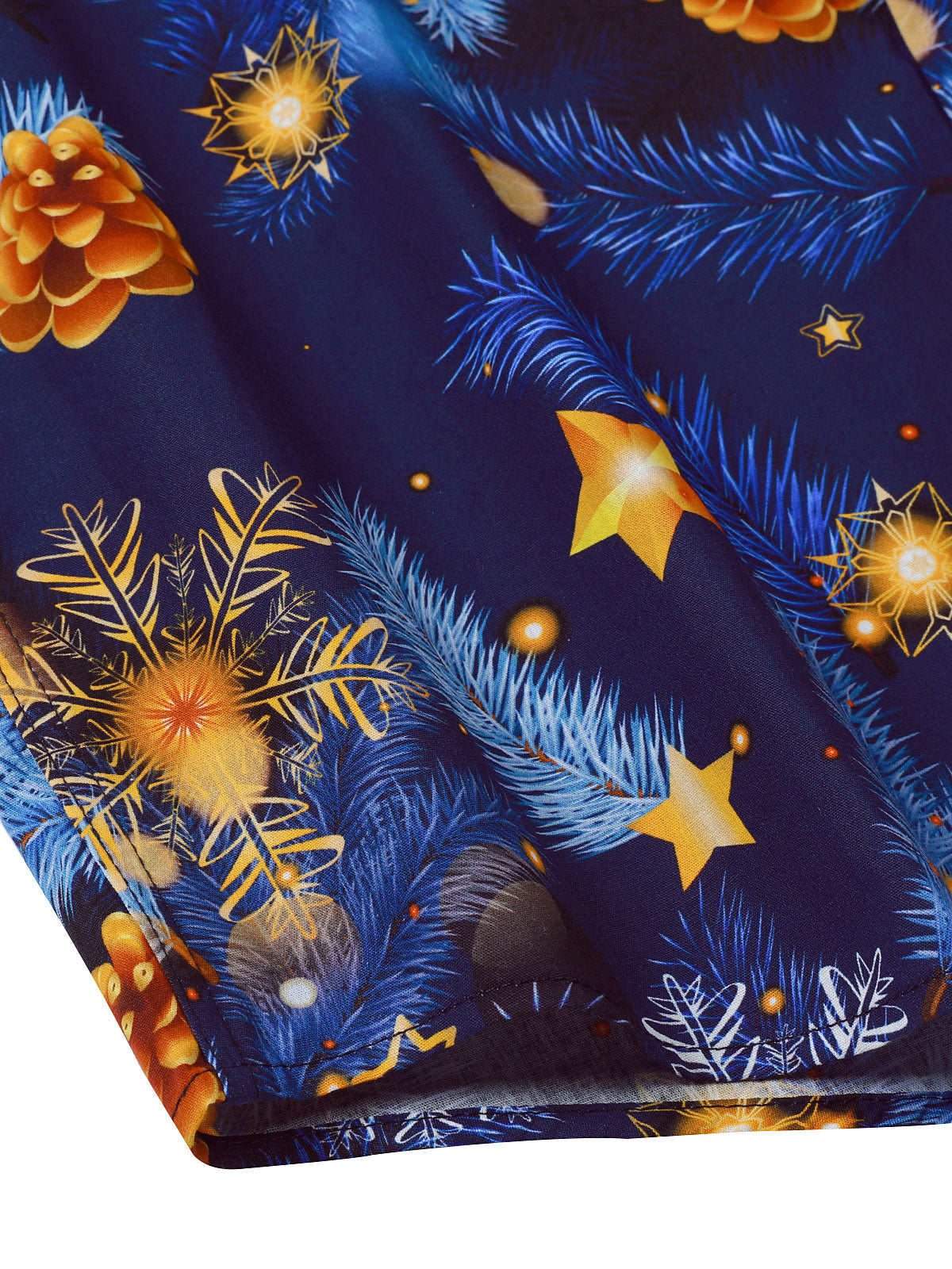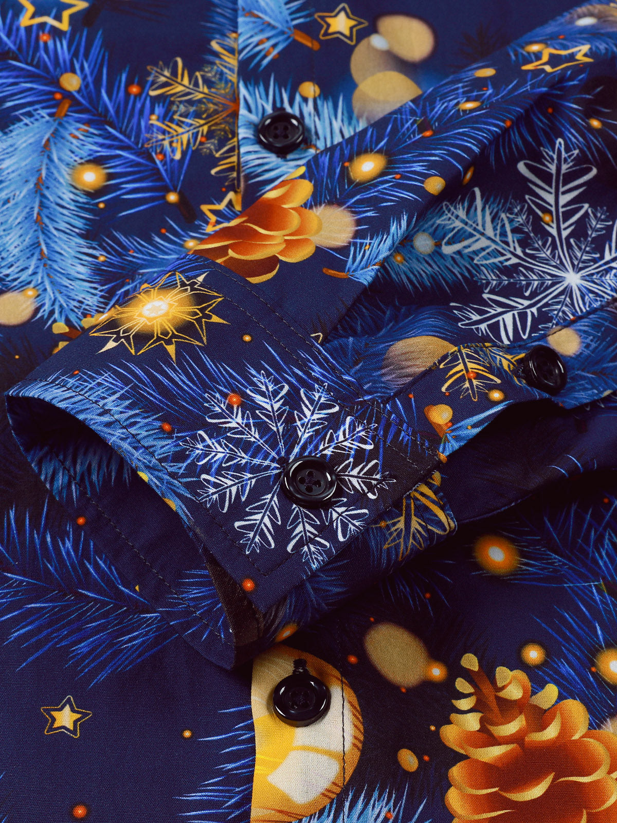 Herren Langärmliges Baumwollhemd mit Weihnachtsbaum-Print Blau