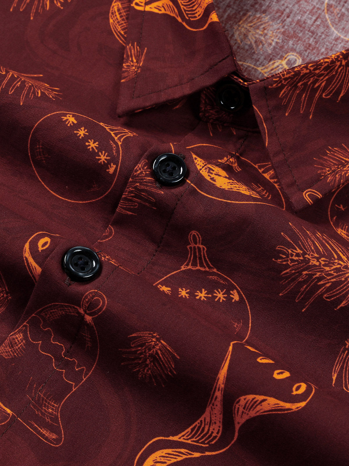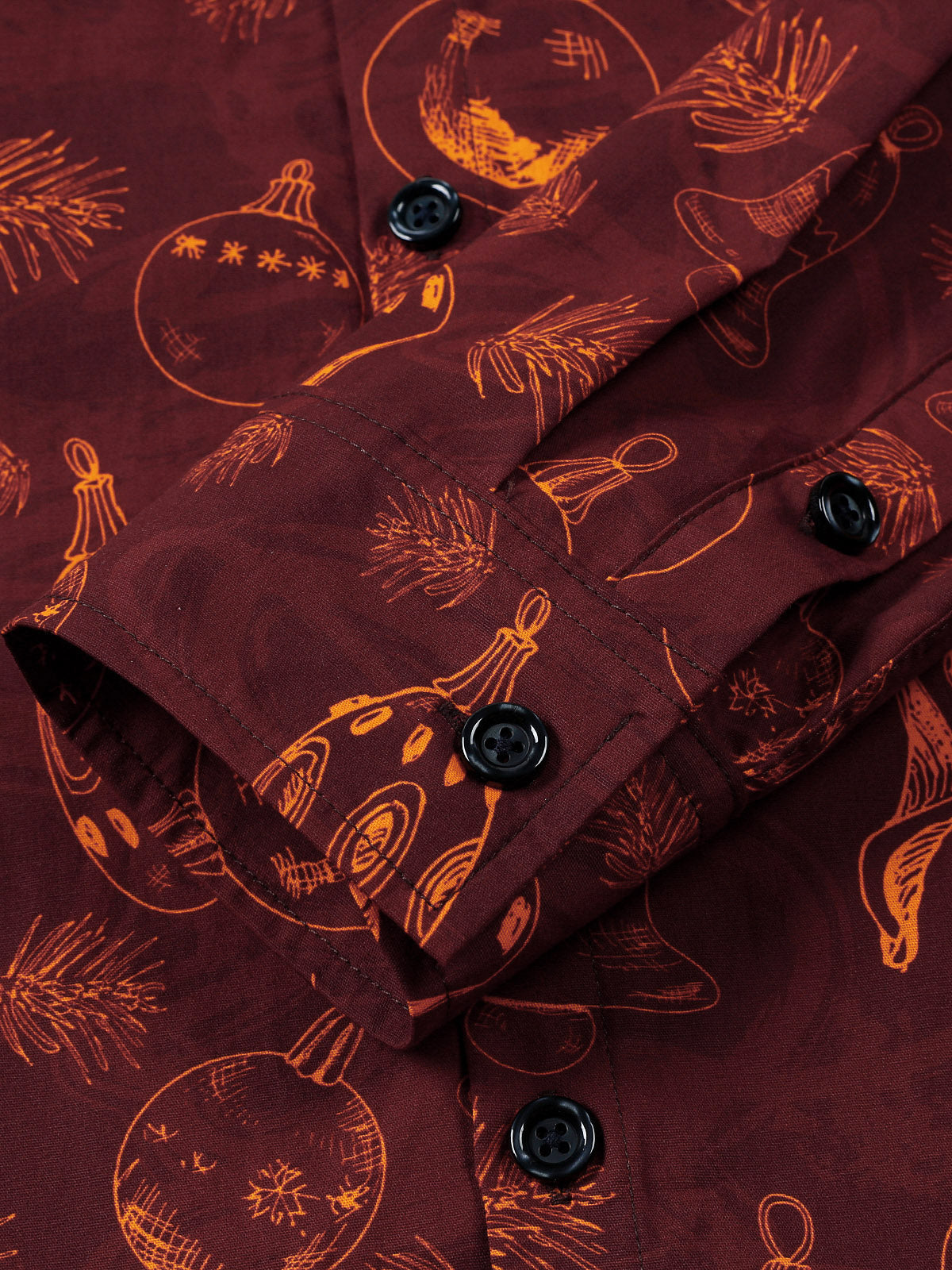 Herren Langarm-Baumwollhemd mit Weihnachtsbaum-Print