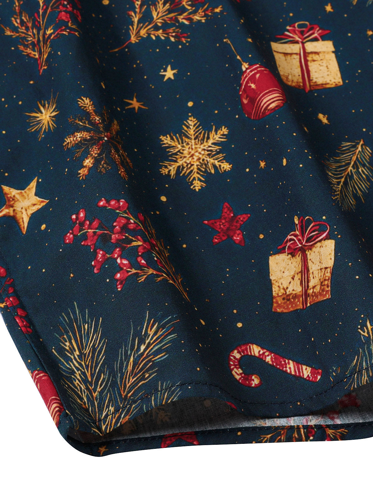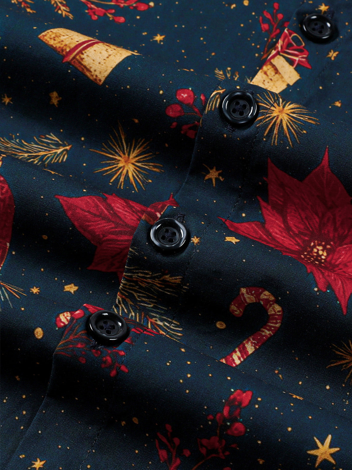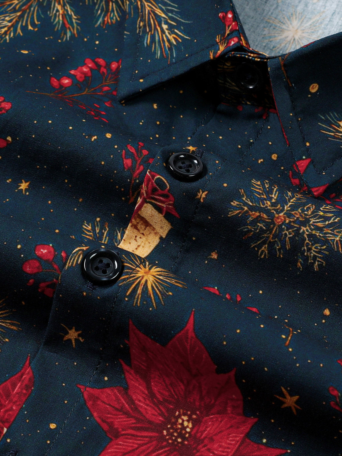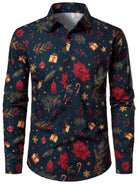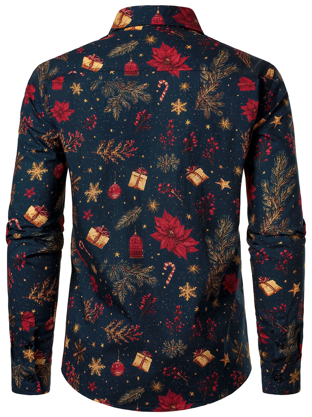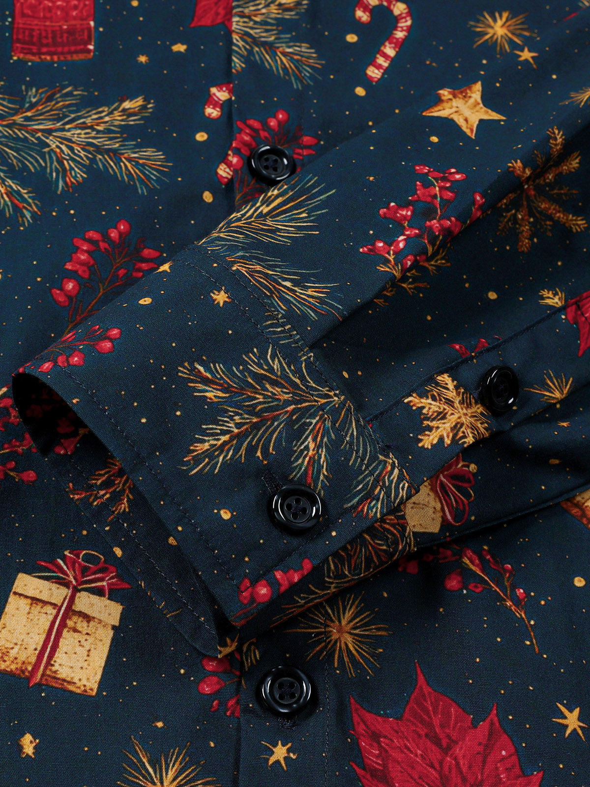Herren Baumwolle Marineblau Weihnachten Langarmhemd