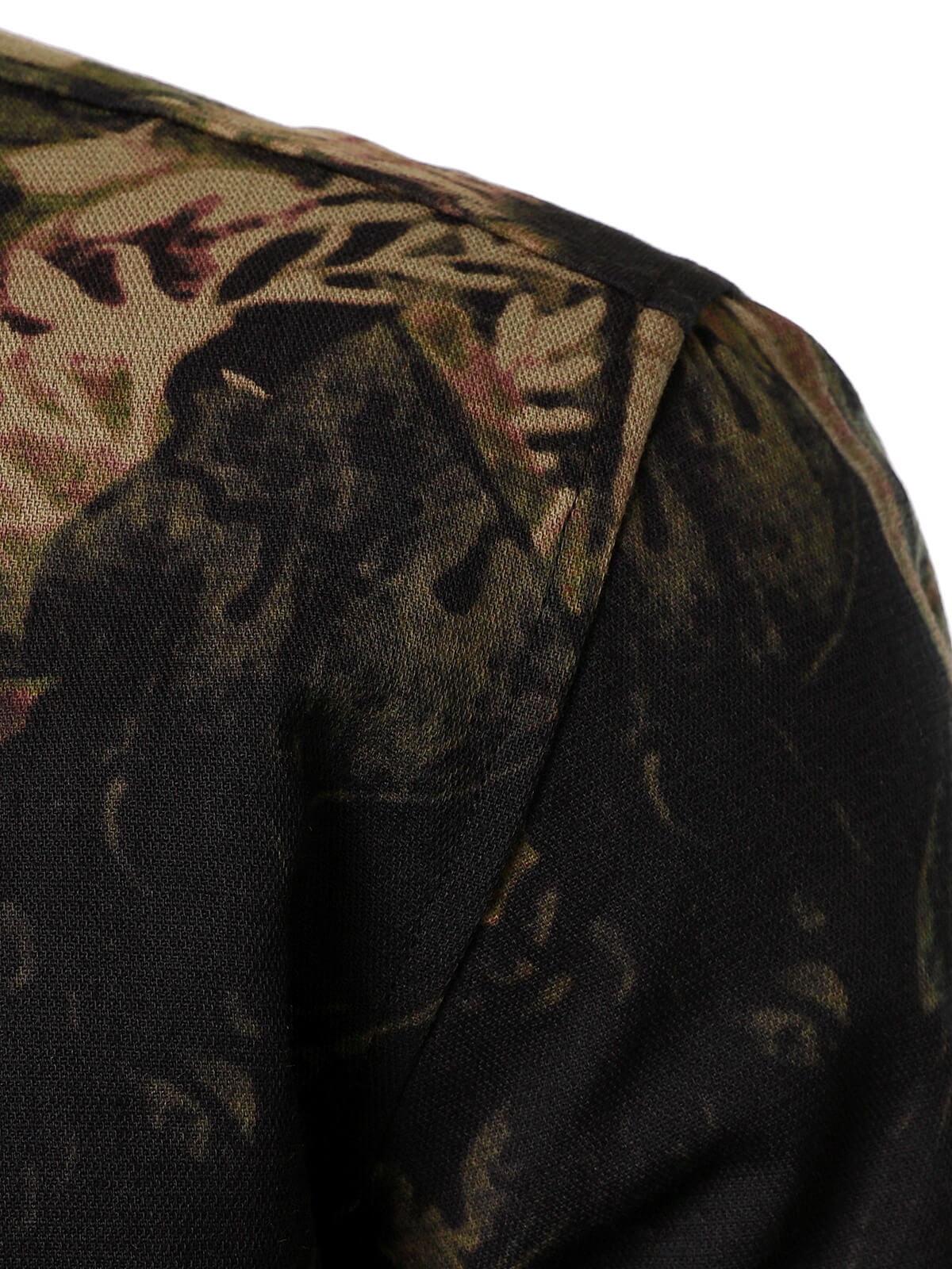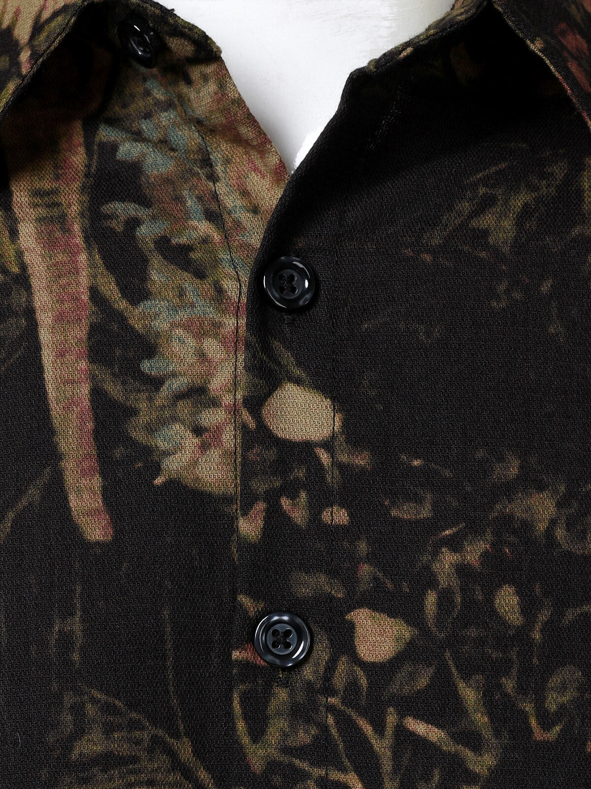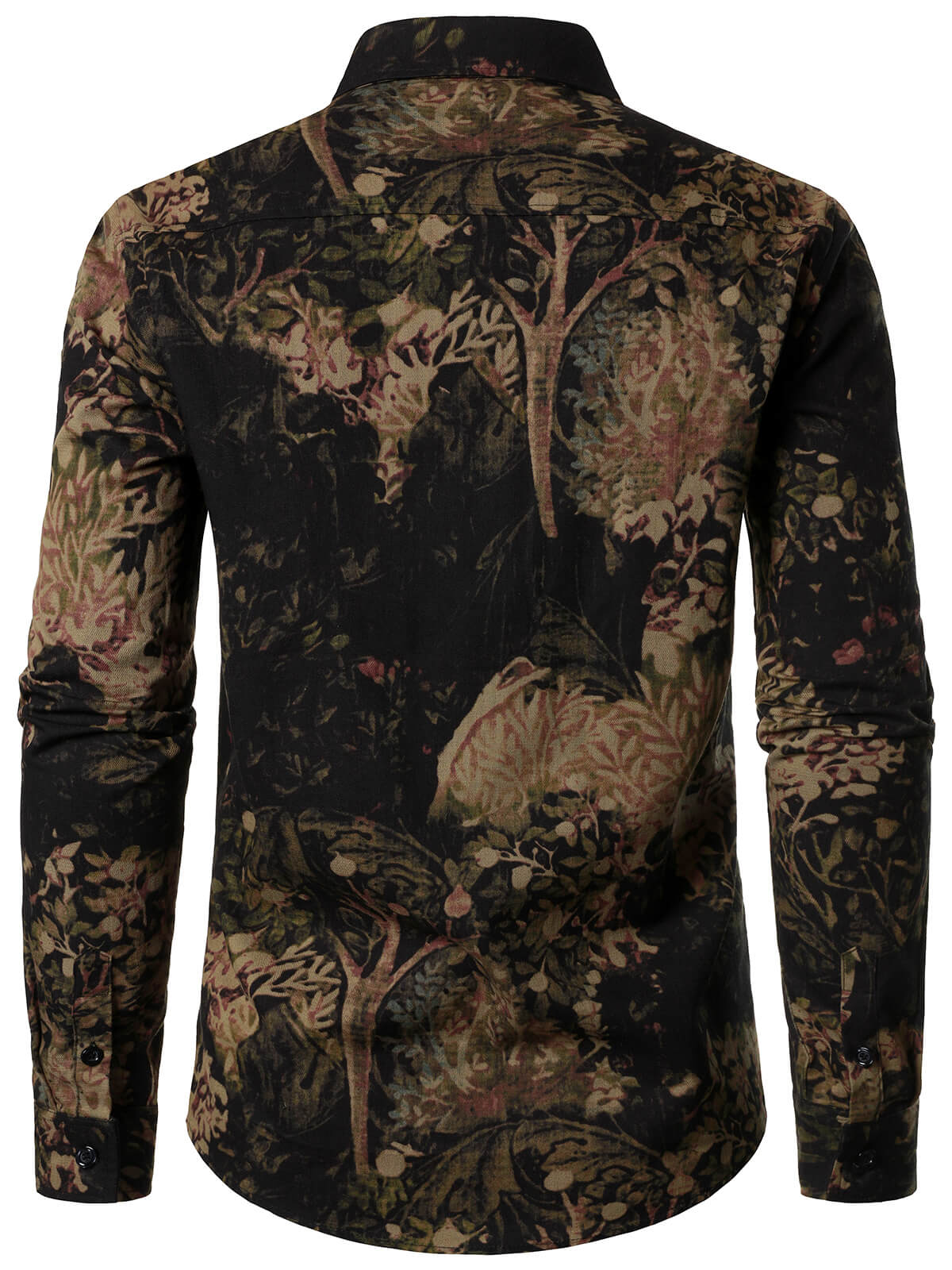 Herren Baumwolle Retro-Blumendruck Langarmhemd Schwarz