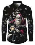 Herren Weihnachtsmann-Motorrad-Aufdruck Weihnachtshemd