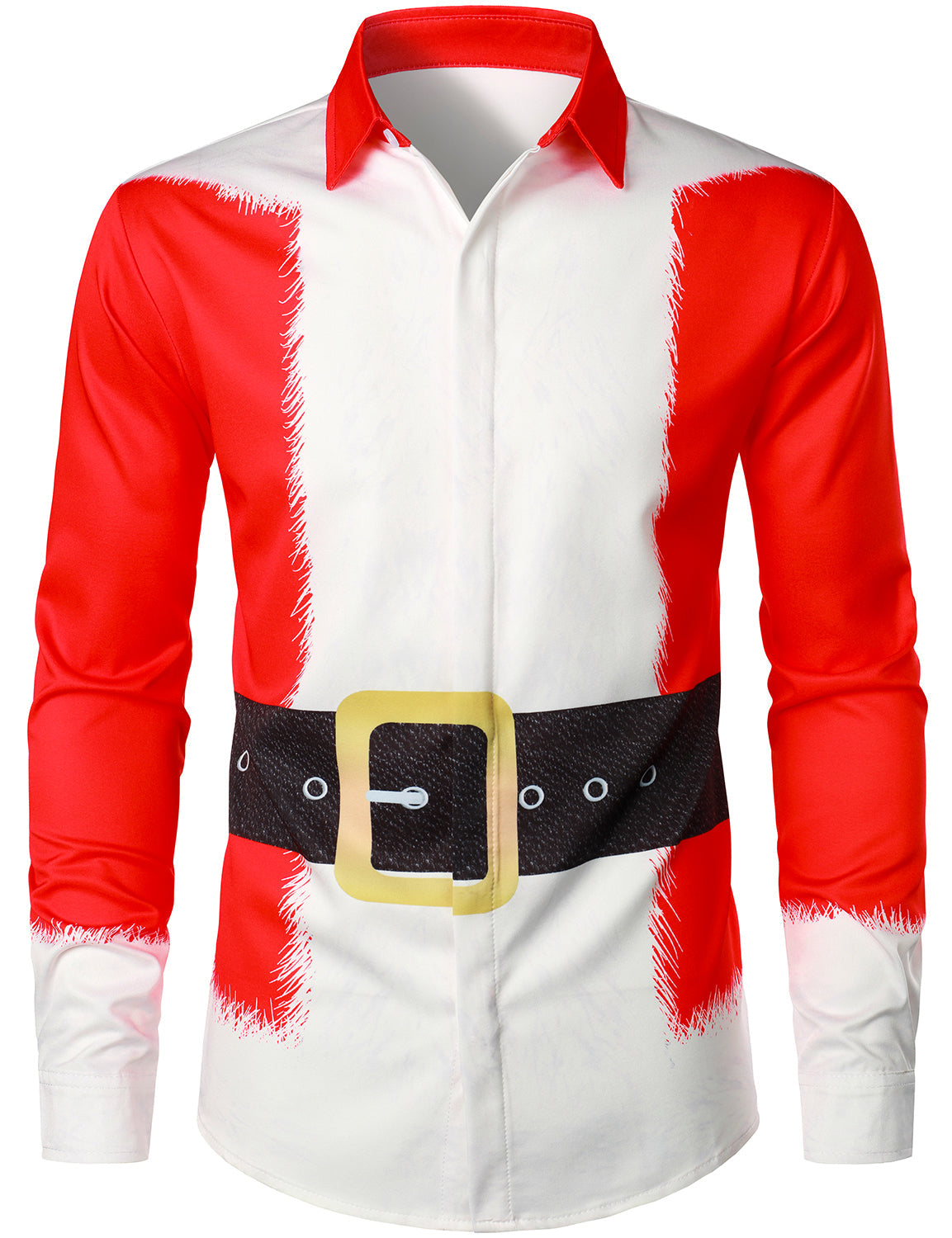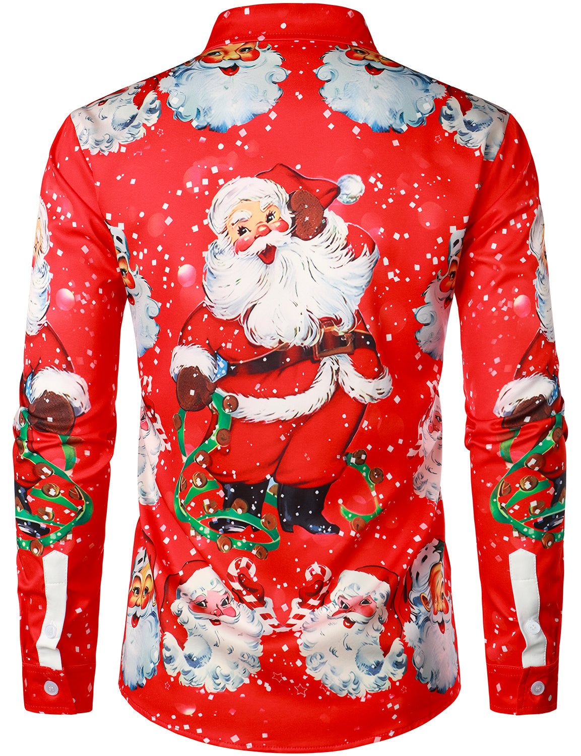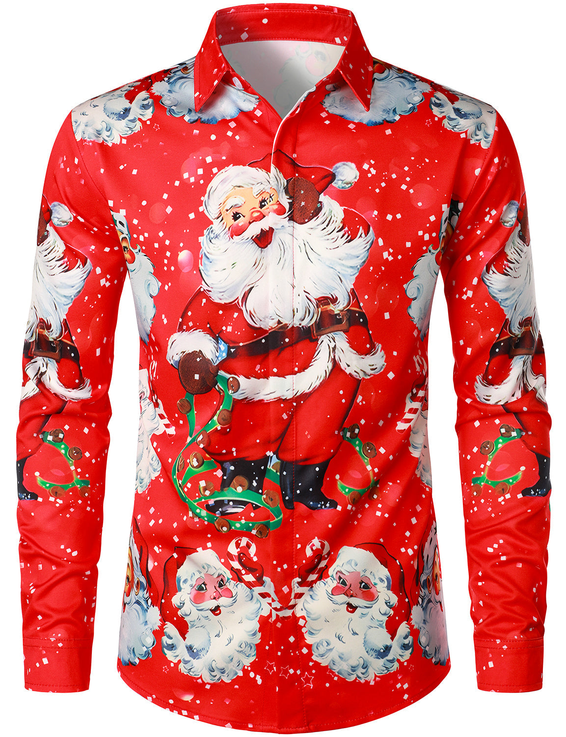 Herren Lustige Weihnachtsmann Langarm Rot Weihnachtshemd