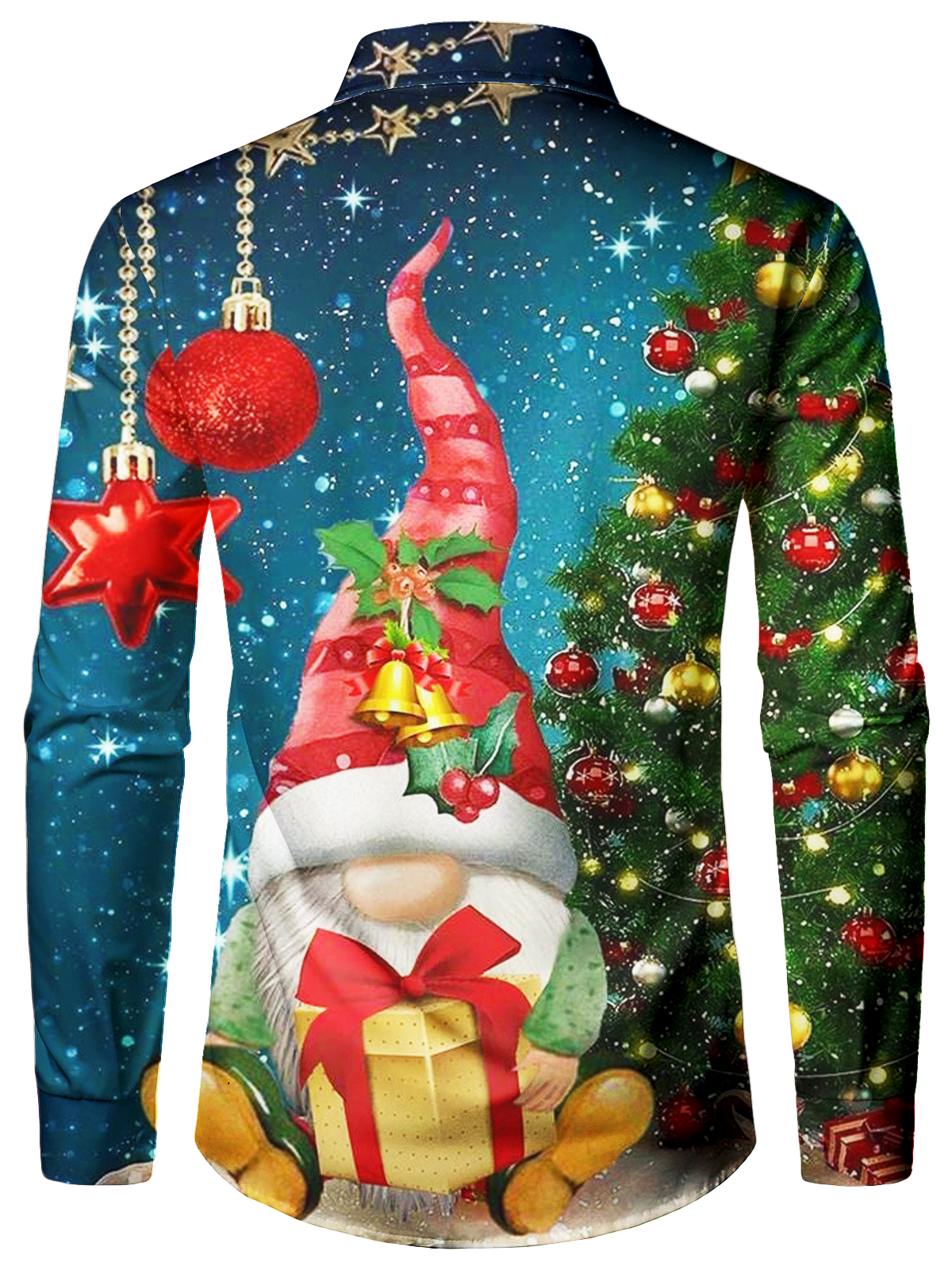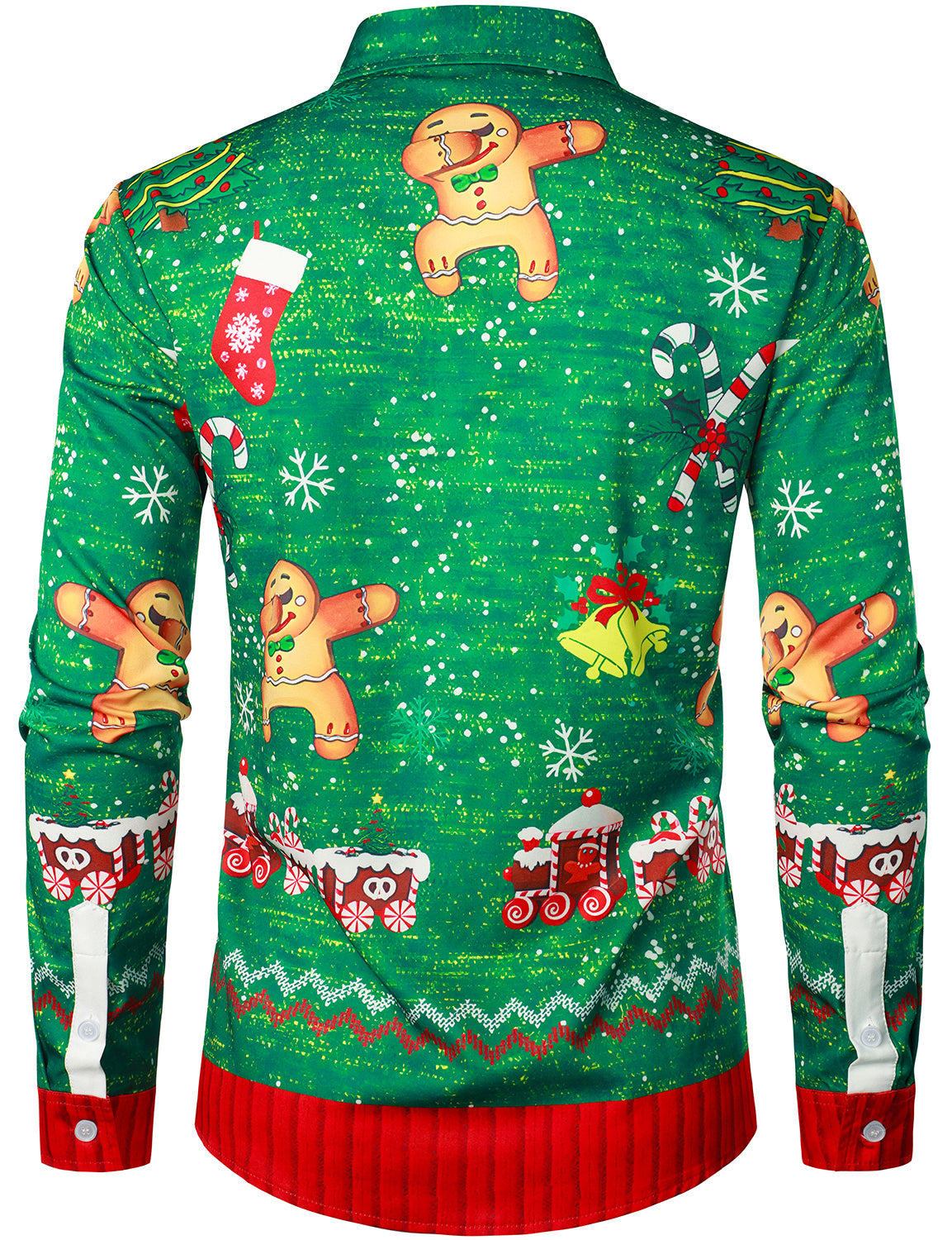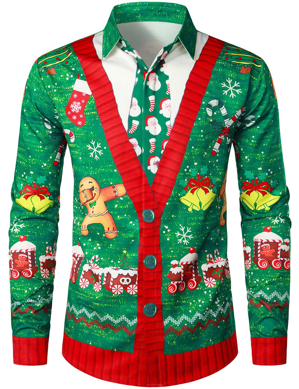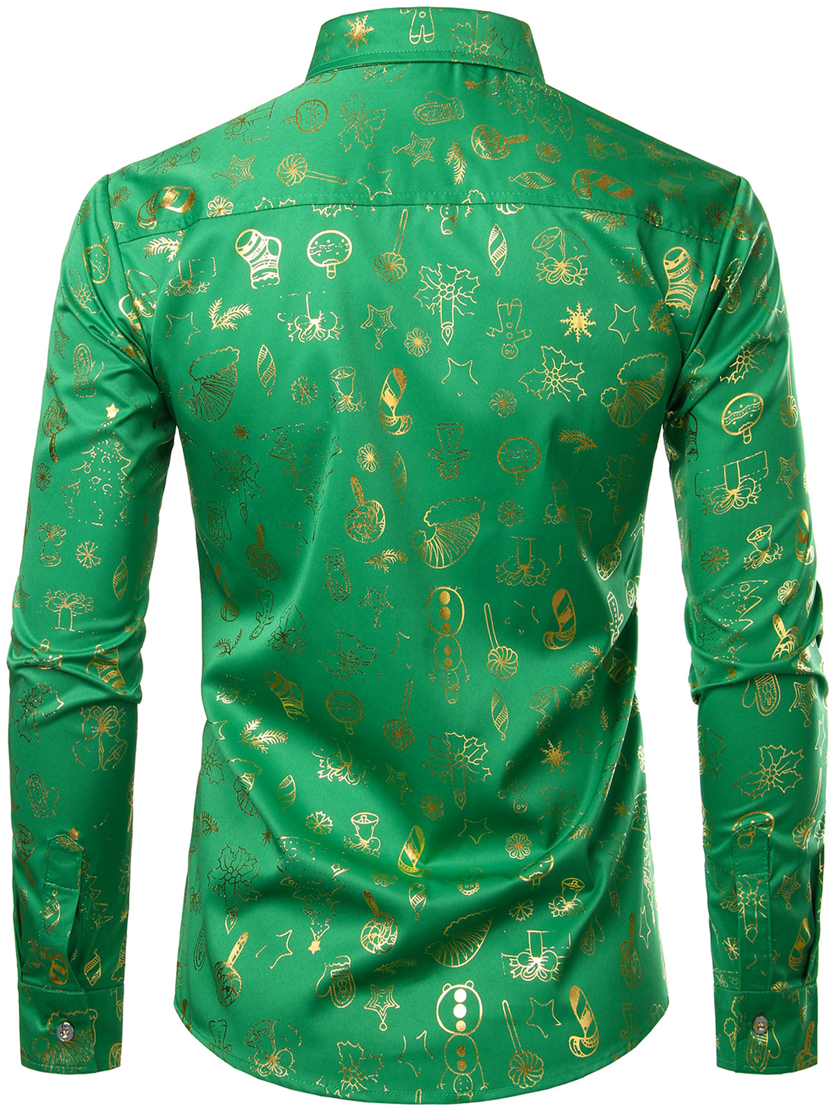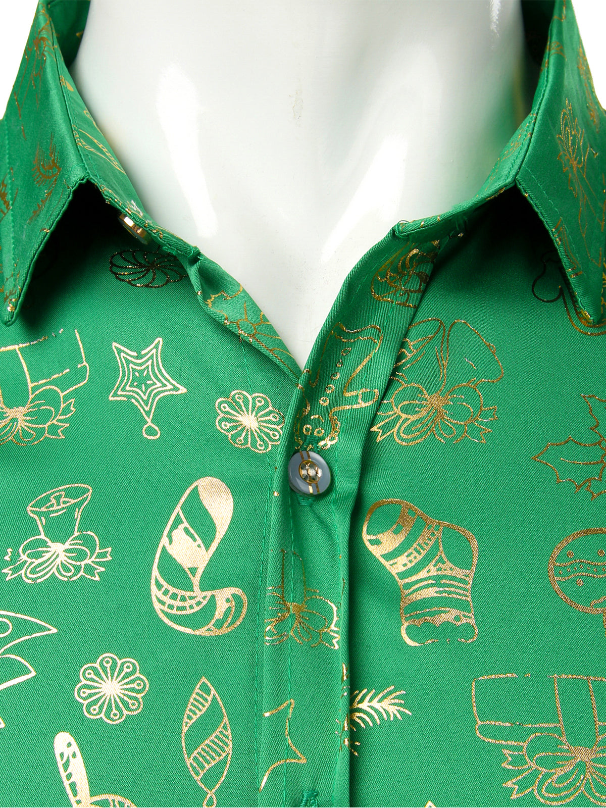 Herren Glänzendes Langarm Grün Weihnachtshemd