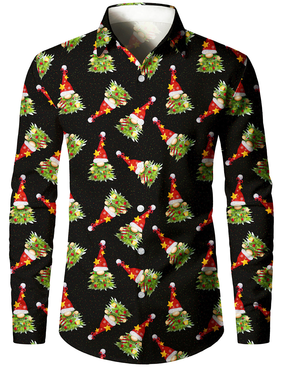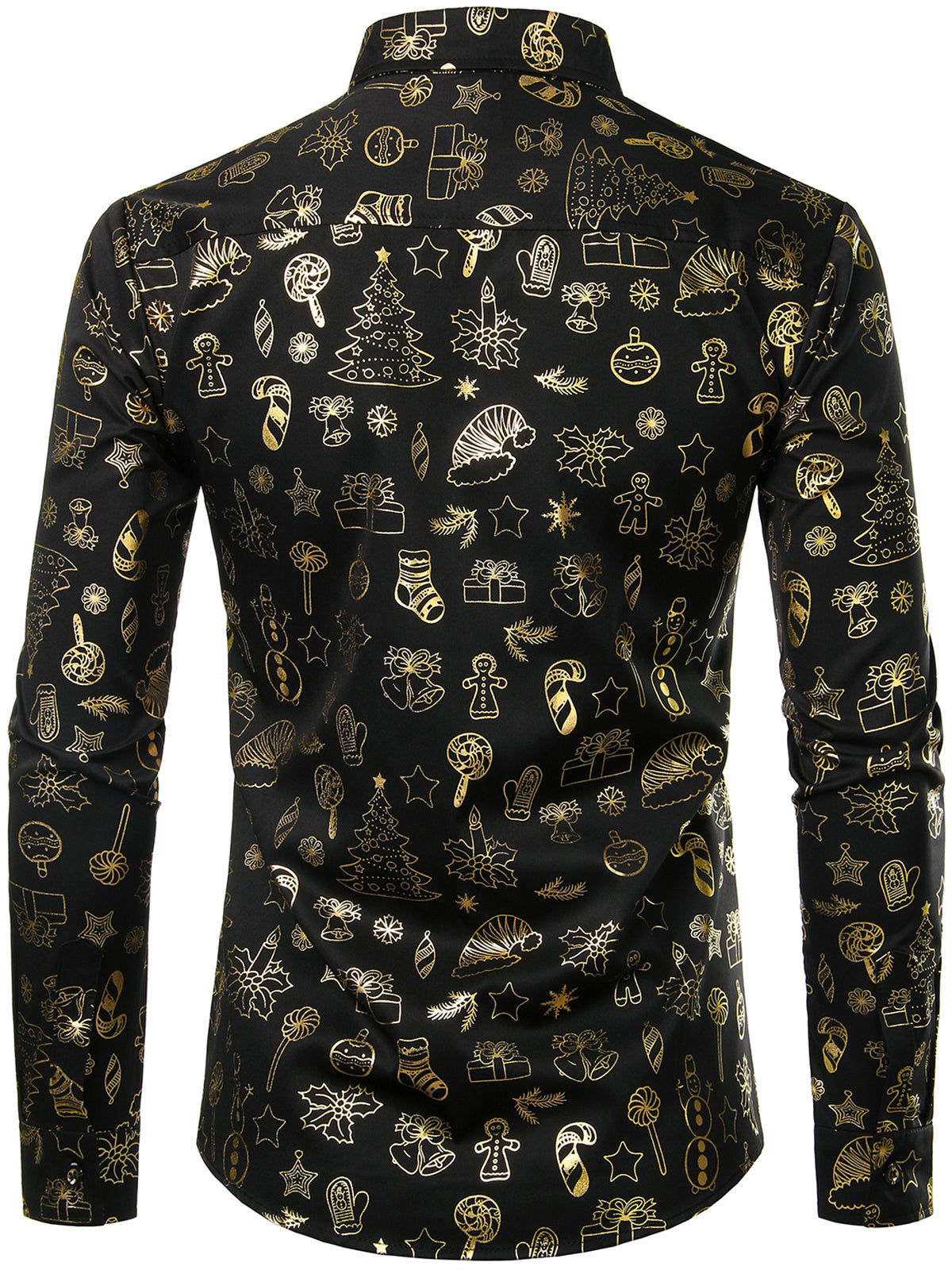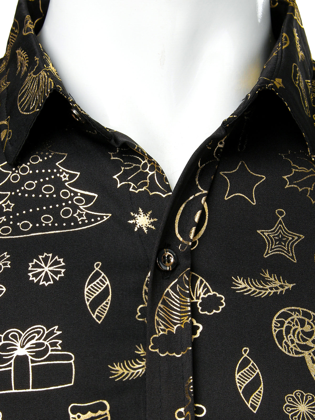 Herren Glänzendes Langarm Schwarz Weihnachtshemd