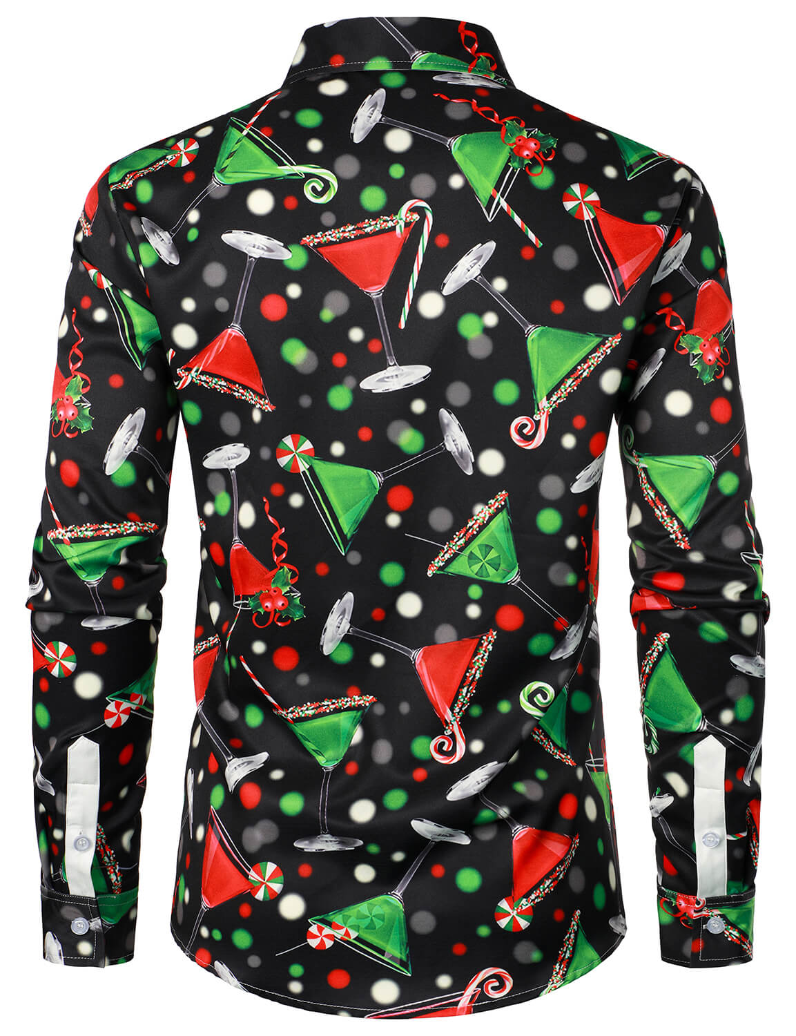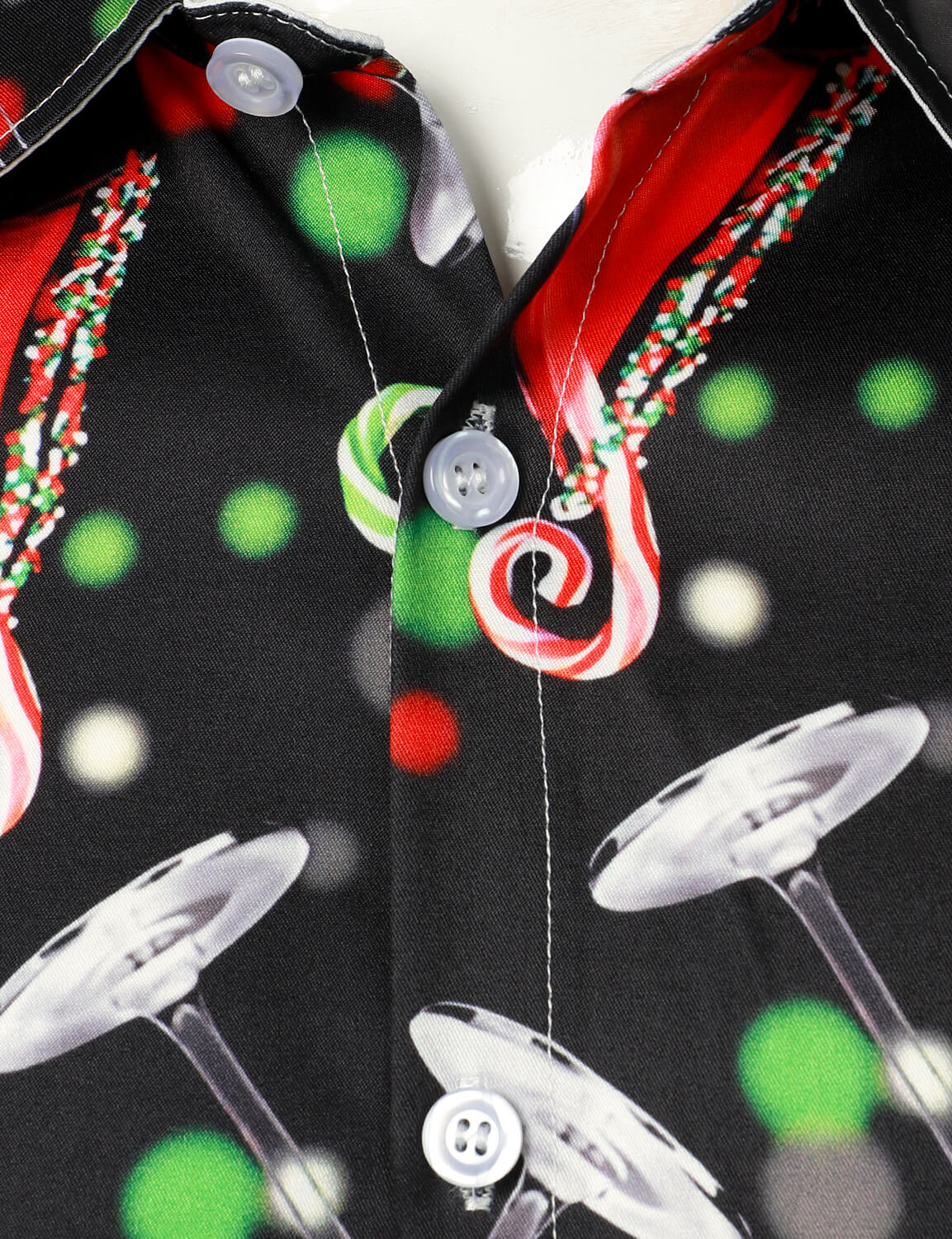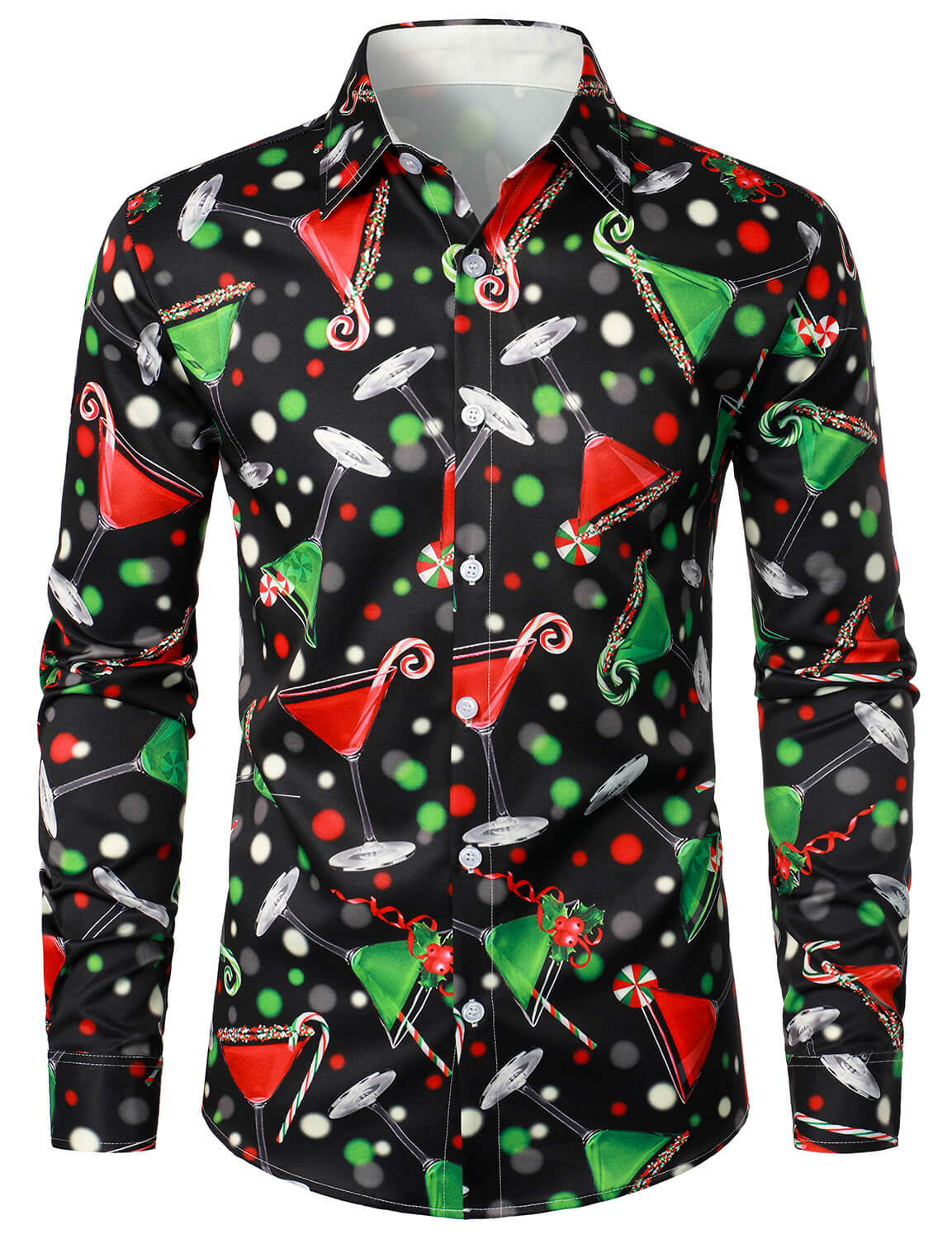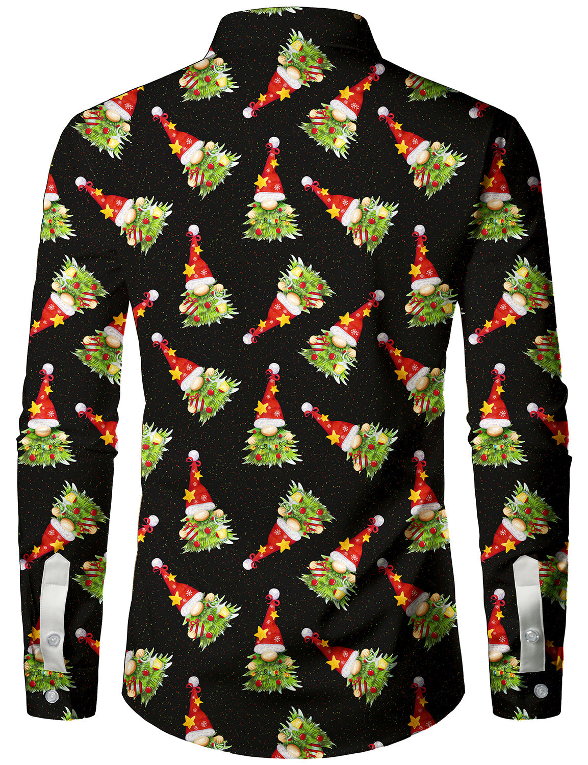 Herren Glänzendes Langarm Schwarz Weihnachtshemd