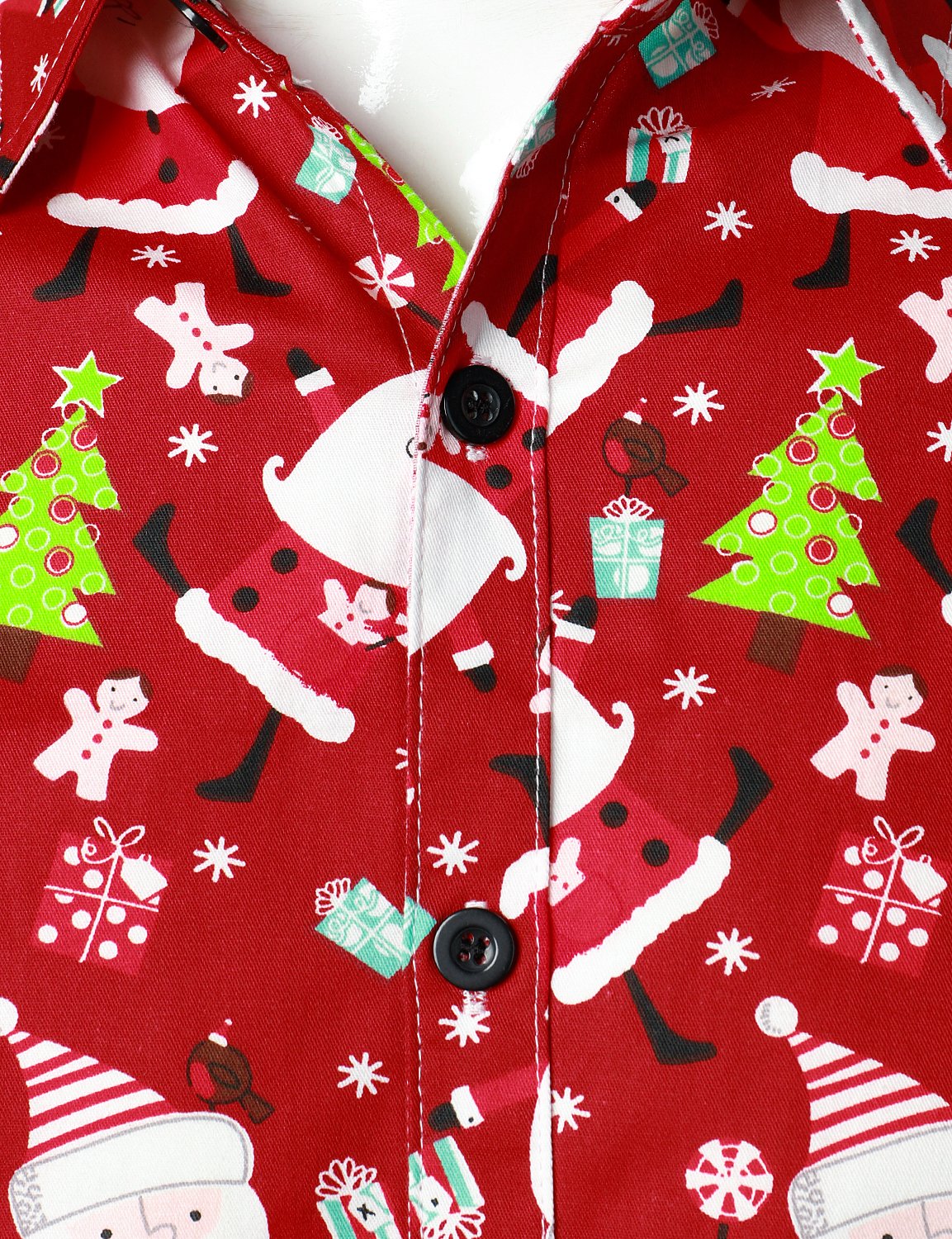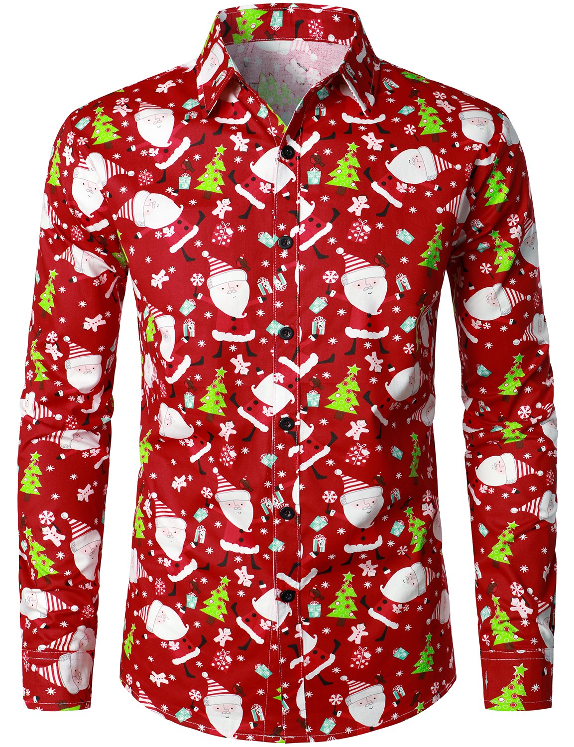 Herren Baumwolle Rot Langarm Weihnachtshemd