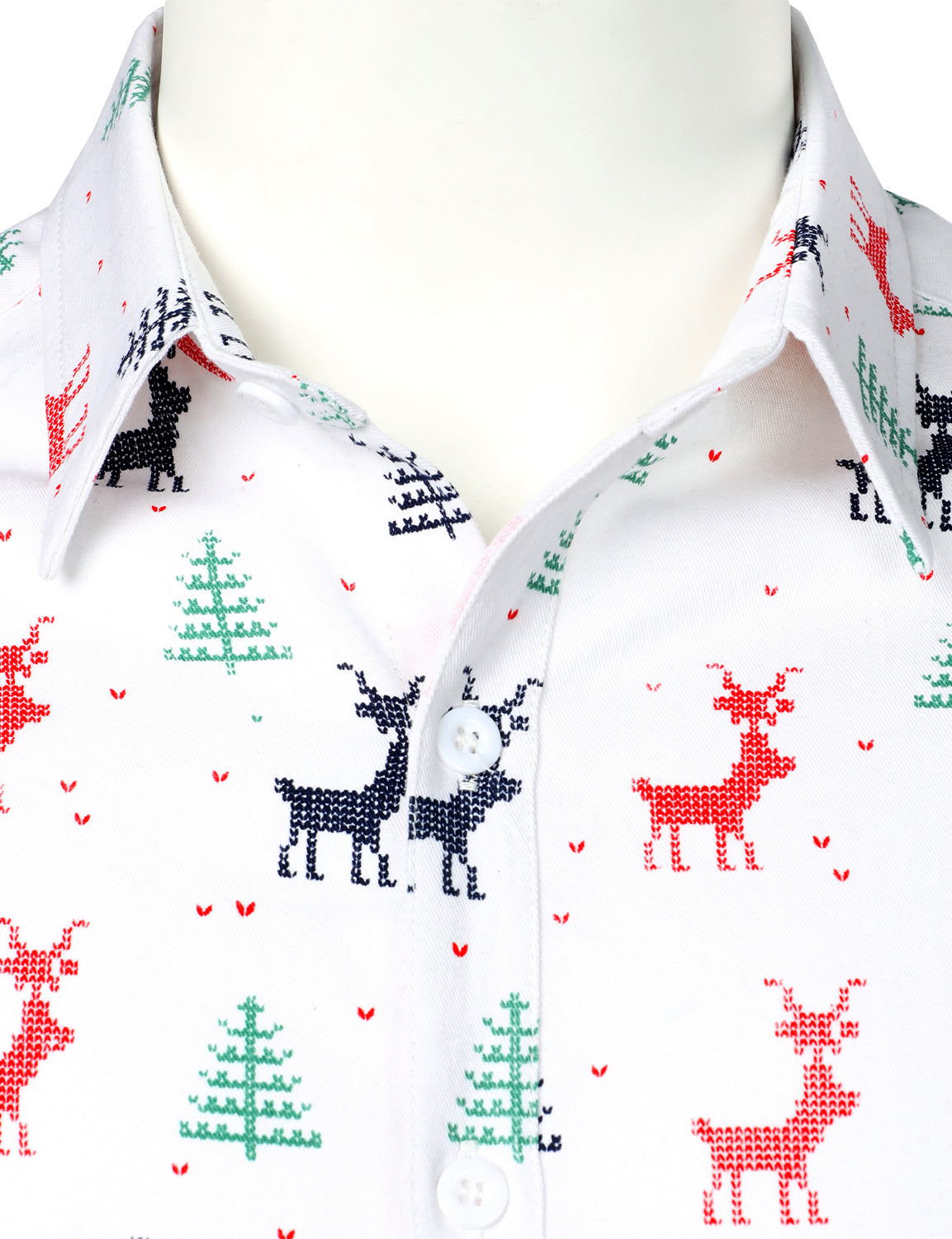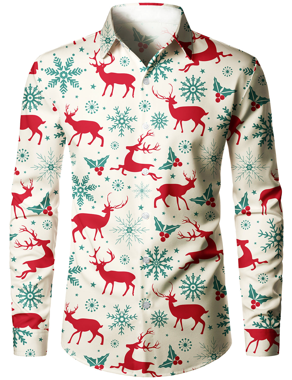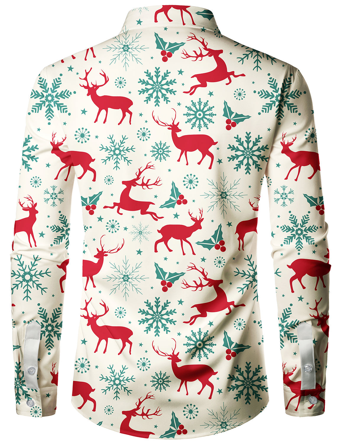 Herren Glänzendes Langarm Weiß Weihnachtshemd
