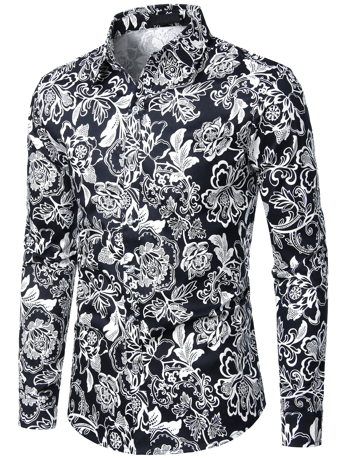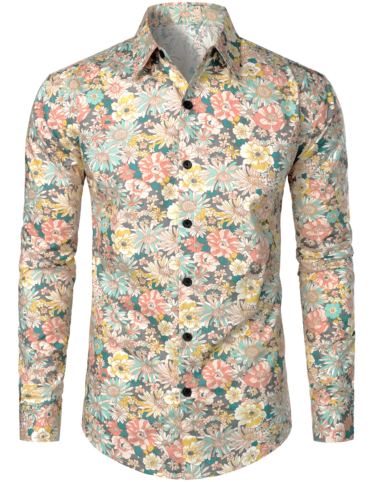 Herrenhemd aus Baumwolle mit Blumenmuster und langen Ärmeln