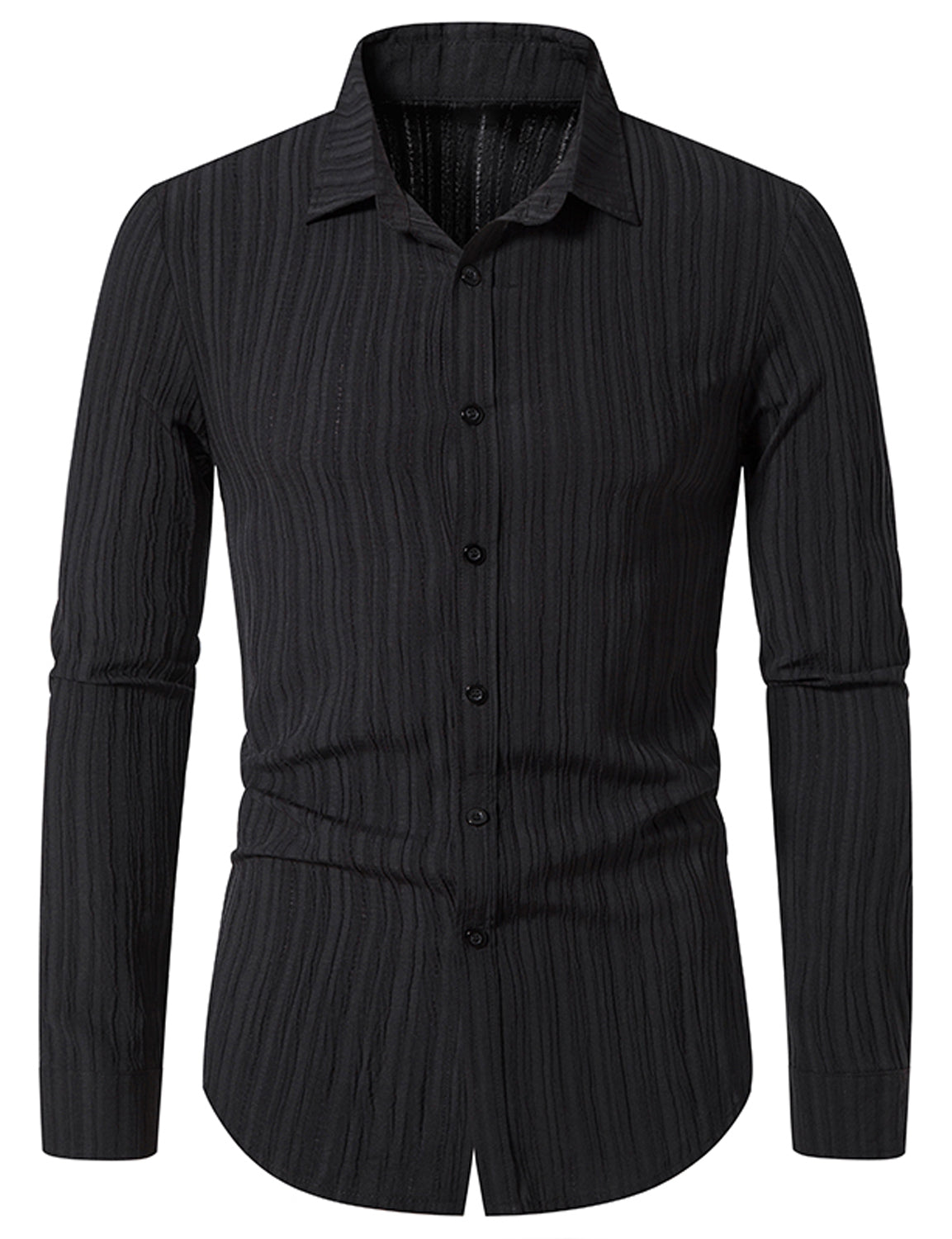 Herren Gestreifte, strukturierte, knitterfreie Langarm Hemden