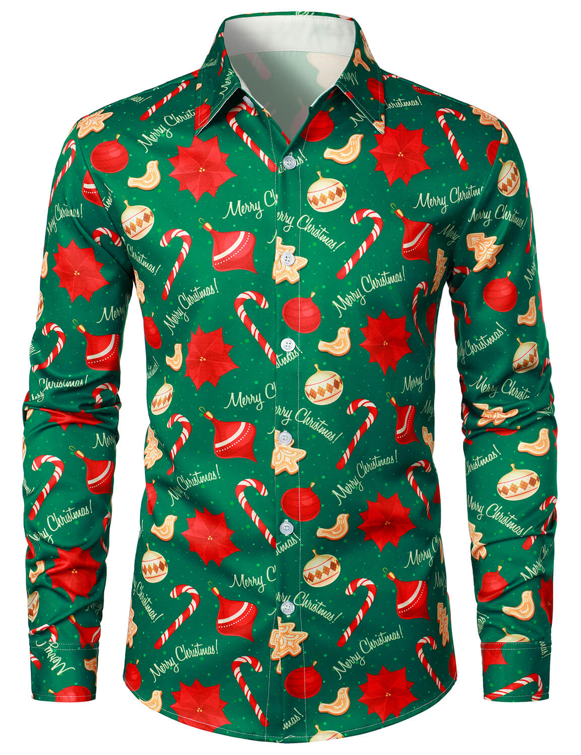 Herren Grün Lustige Langarm Weihnachtshemd