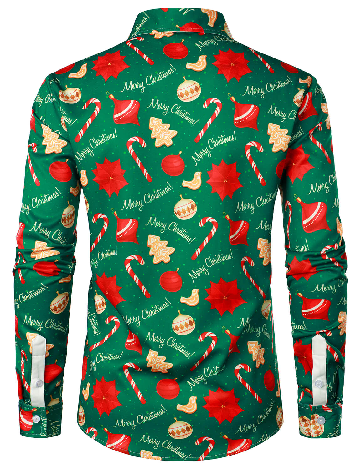 Herren Glänzendes Langarm Grün Weihnachtshemd