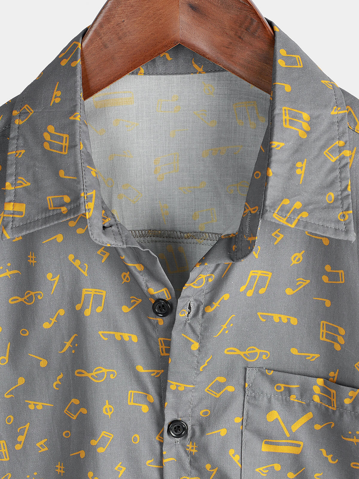 Herren Kurzärmliges Ferien Sommer Musik Hemd