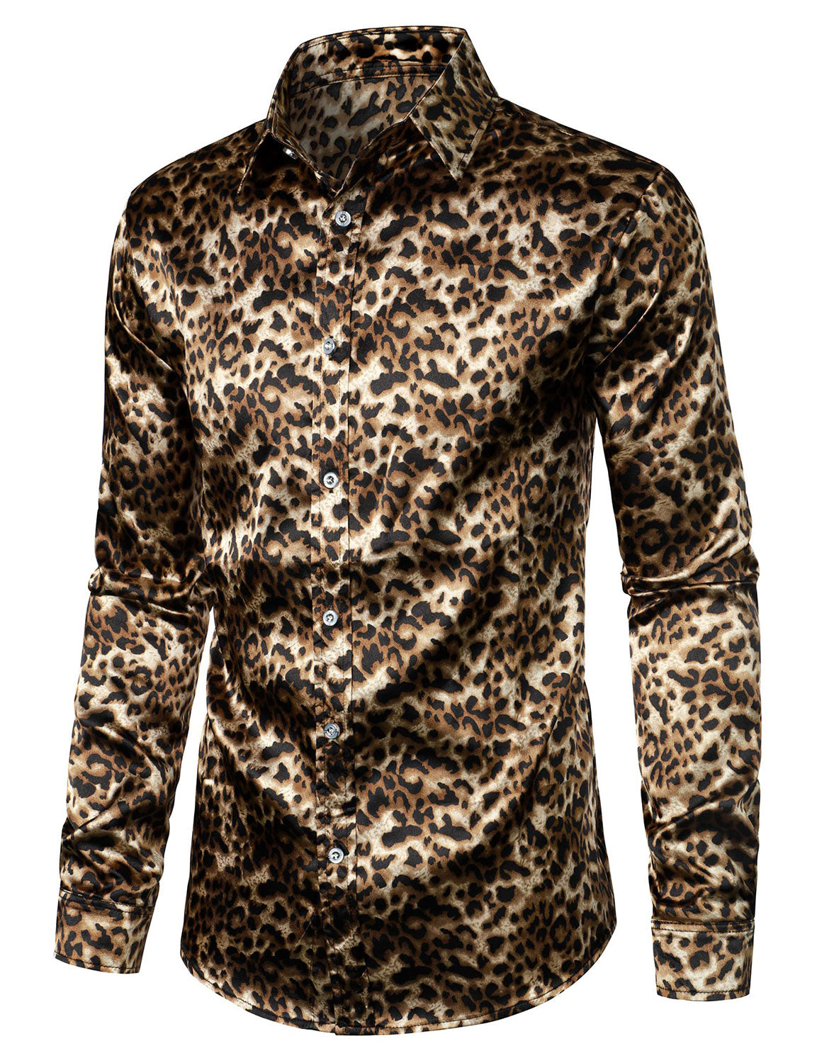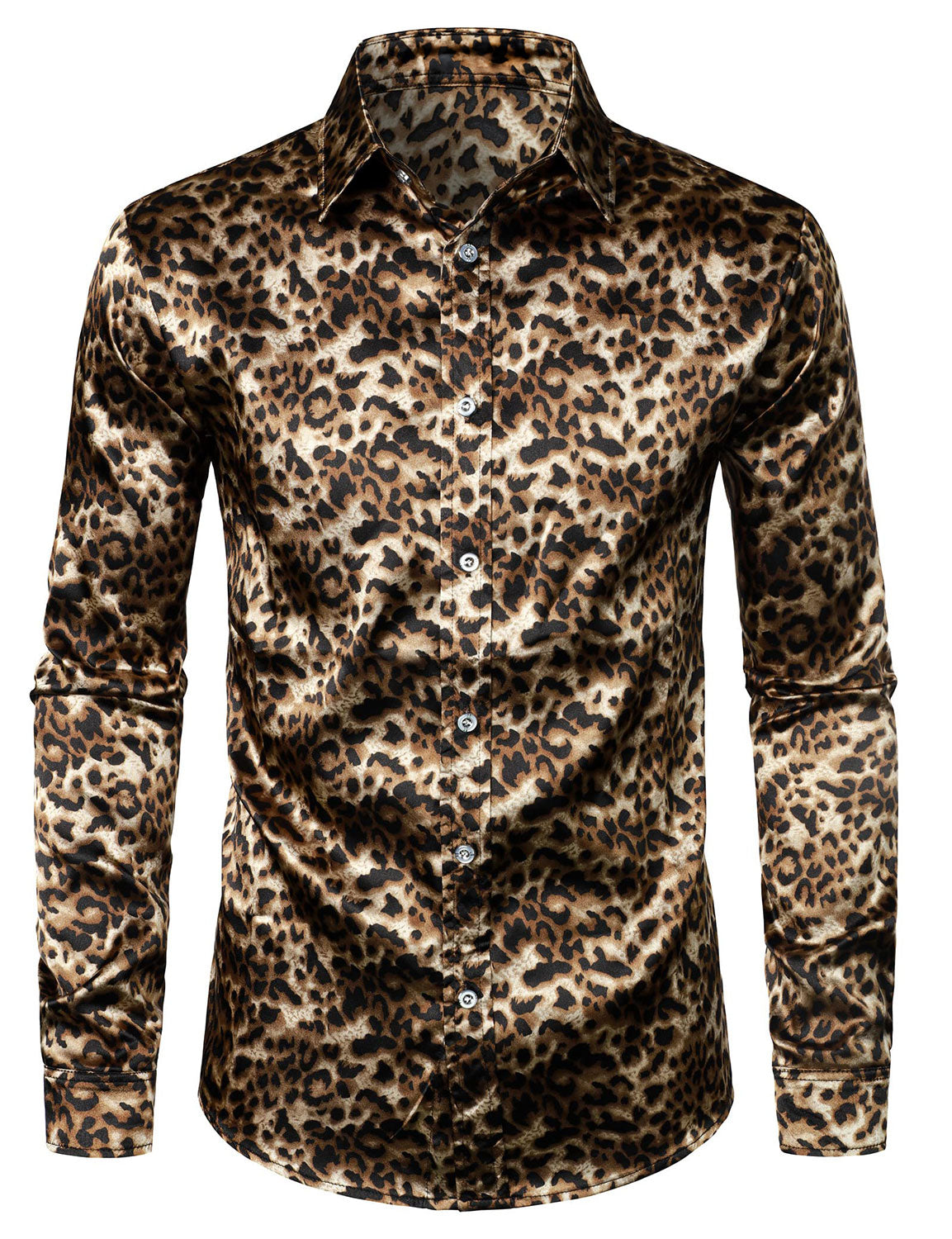 Herren Glänzendes Langarm Grün Weihnachtshemd