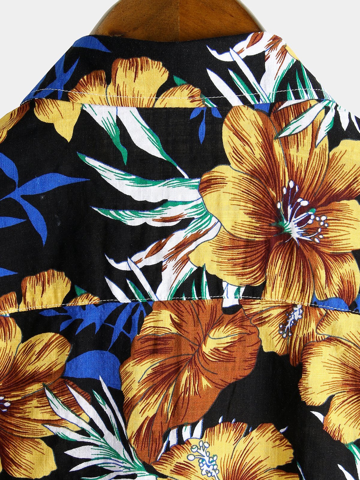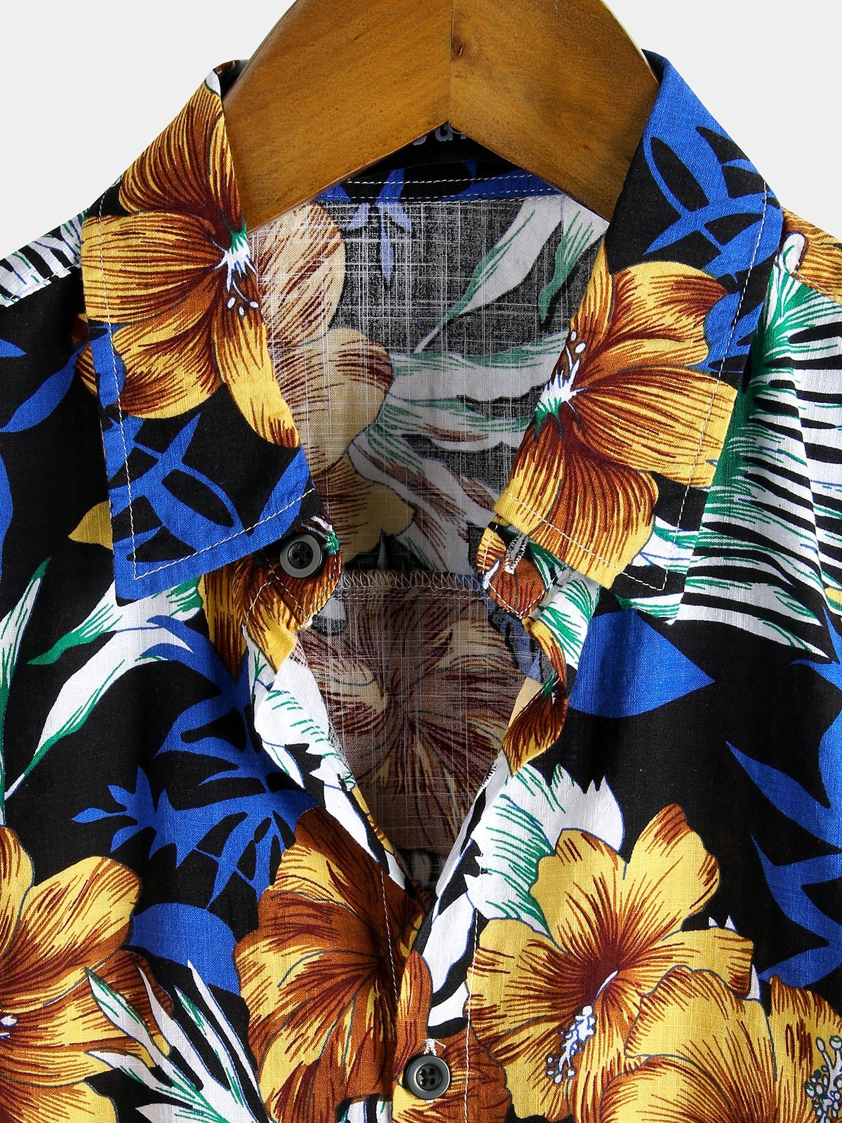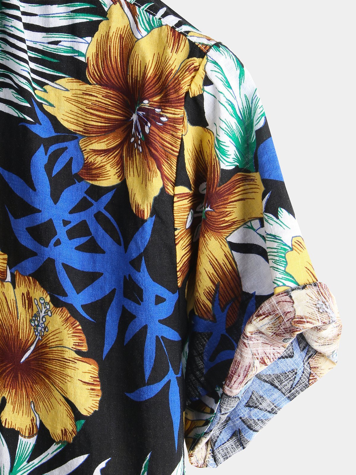 Herren Blumenmuster Baumwolle Kurzarmhemd