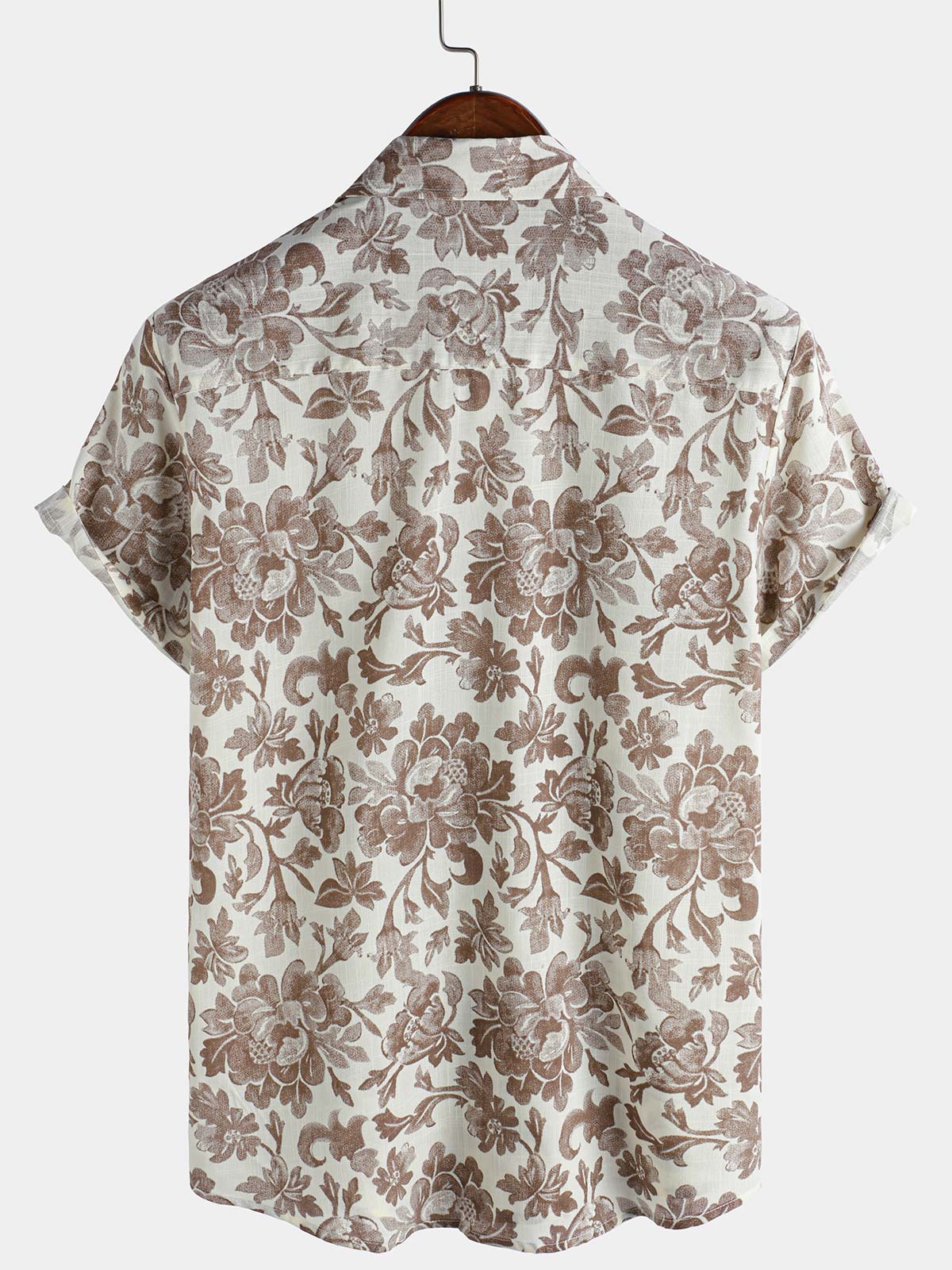 Herren Baumwolle Kurzarmhemd mit Retro-Blumenmuster