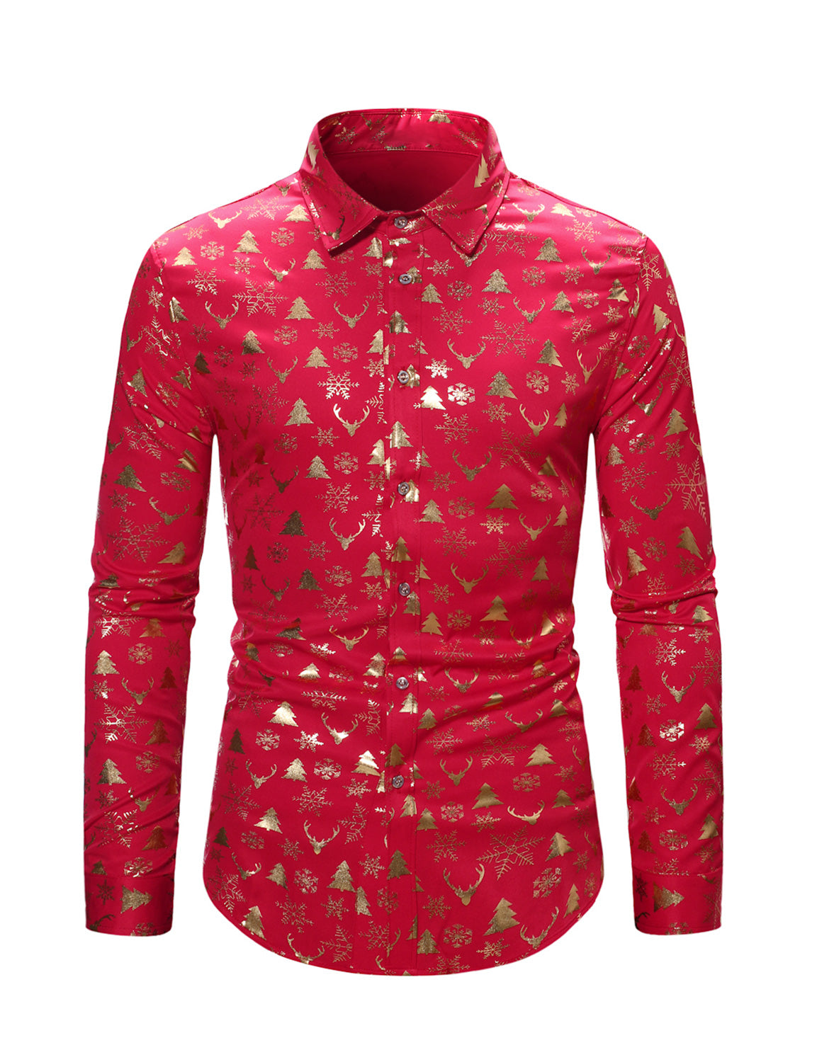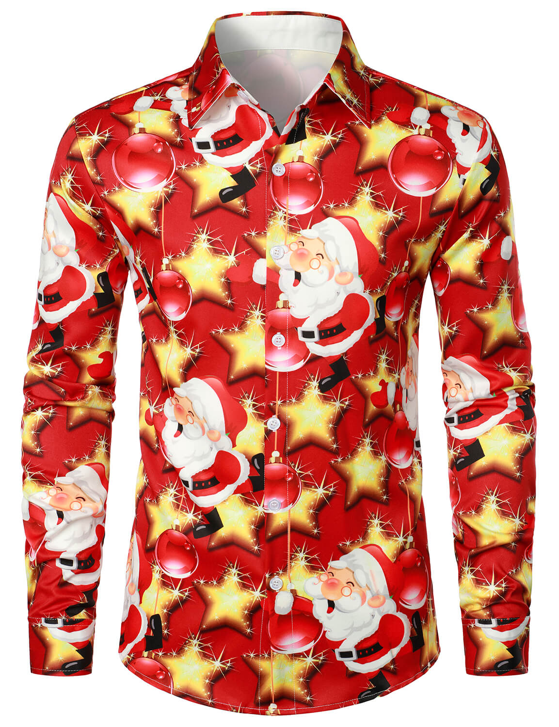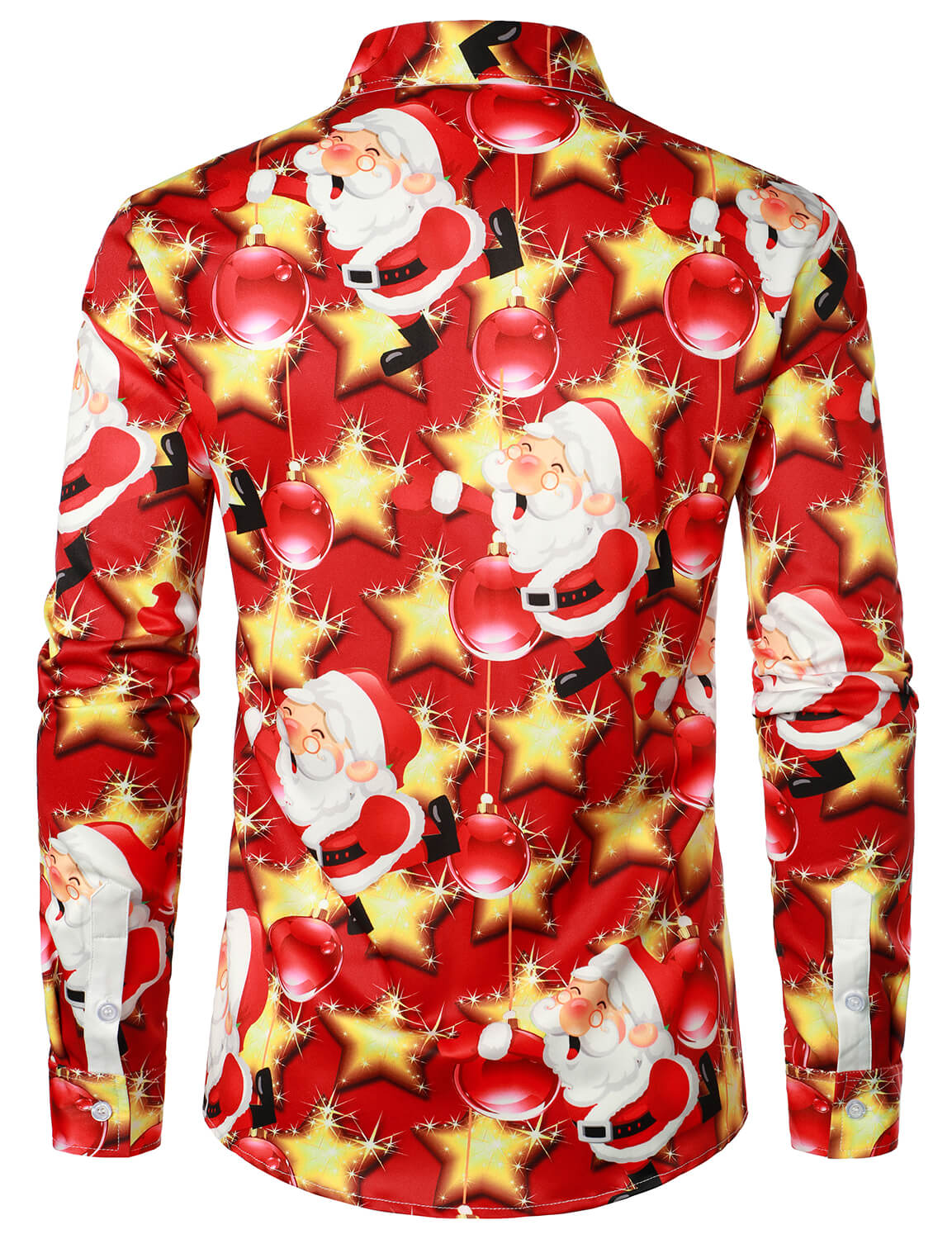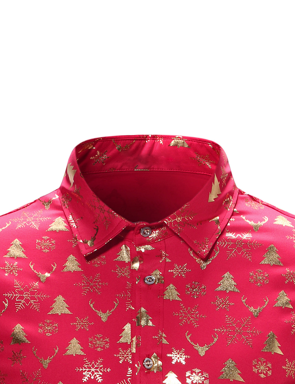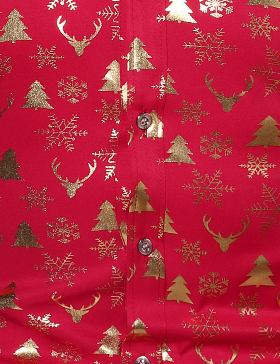 Herren Weihnachtshemd Rot Langärm Freizeithemd
