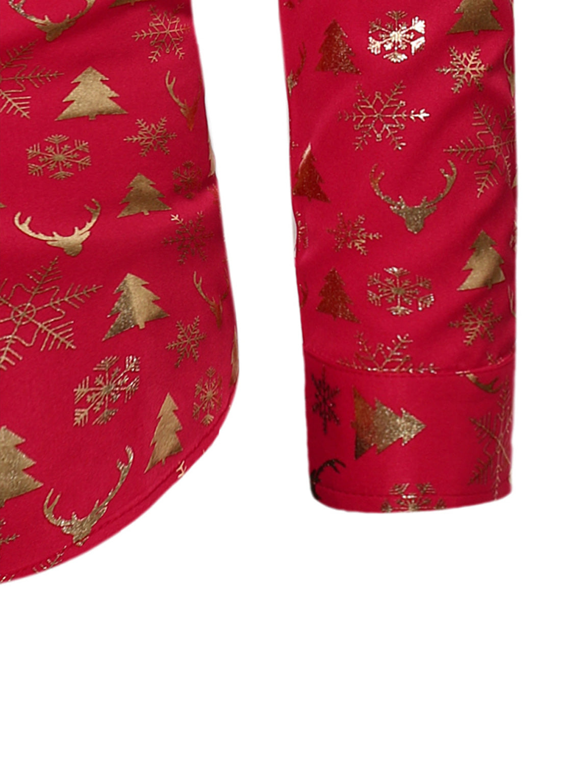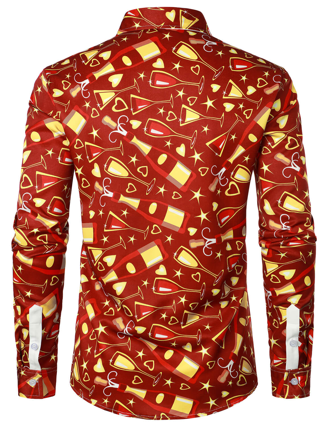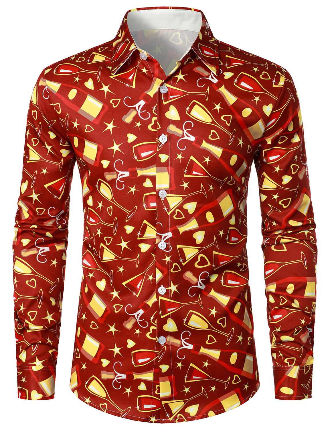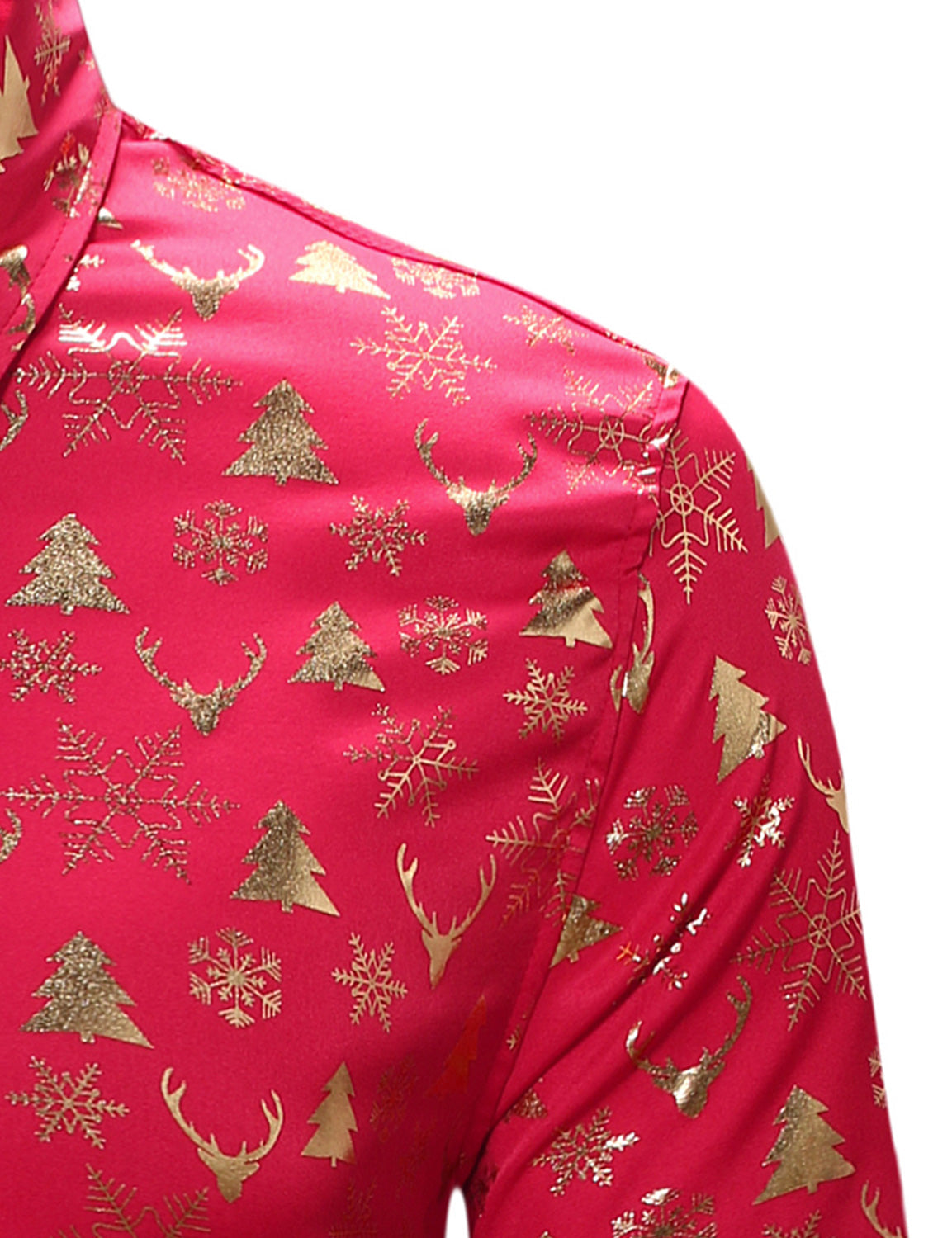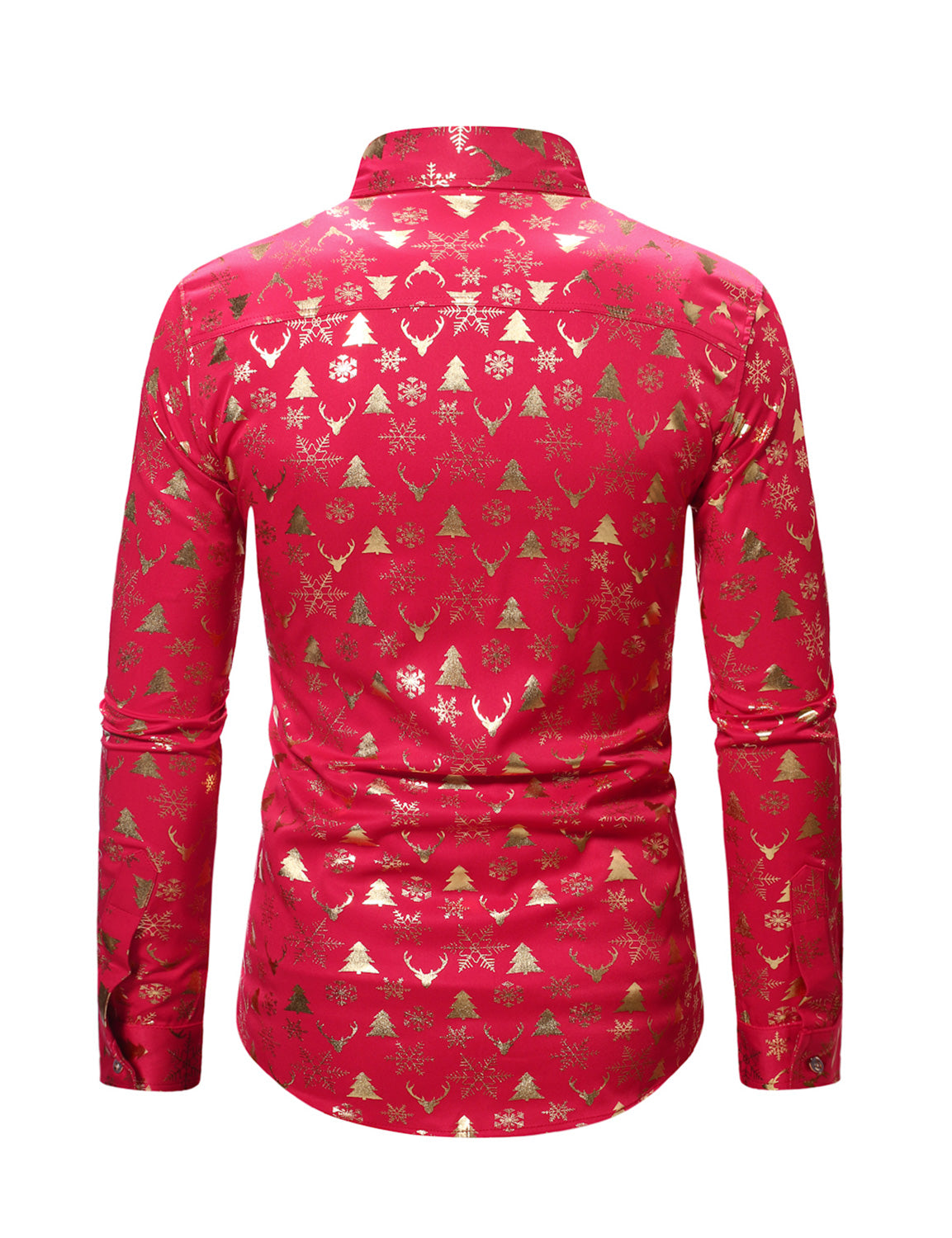 Herren Weihnachtshemd Rot Langärm Freizeithemd