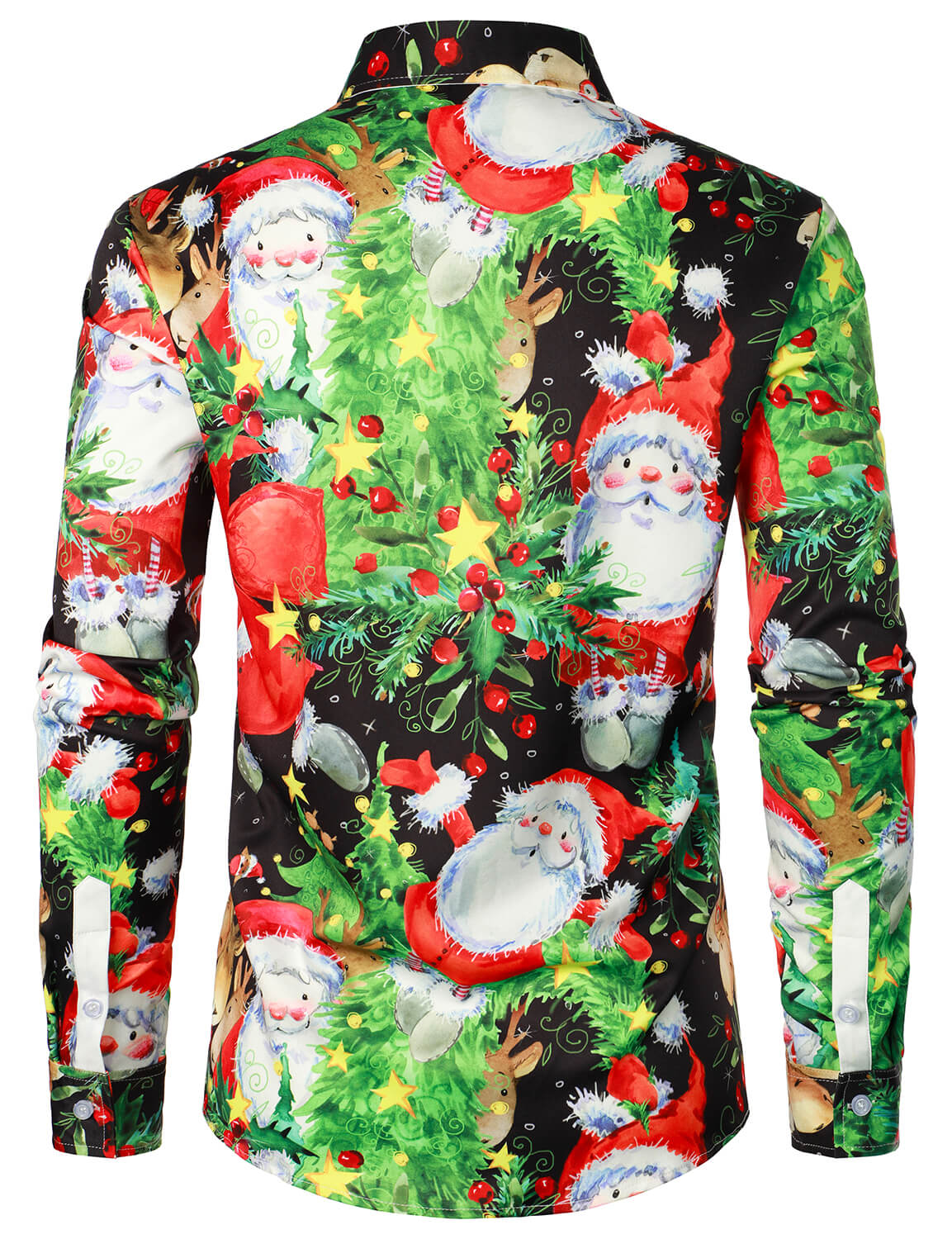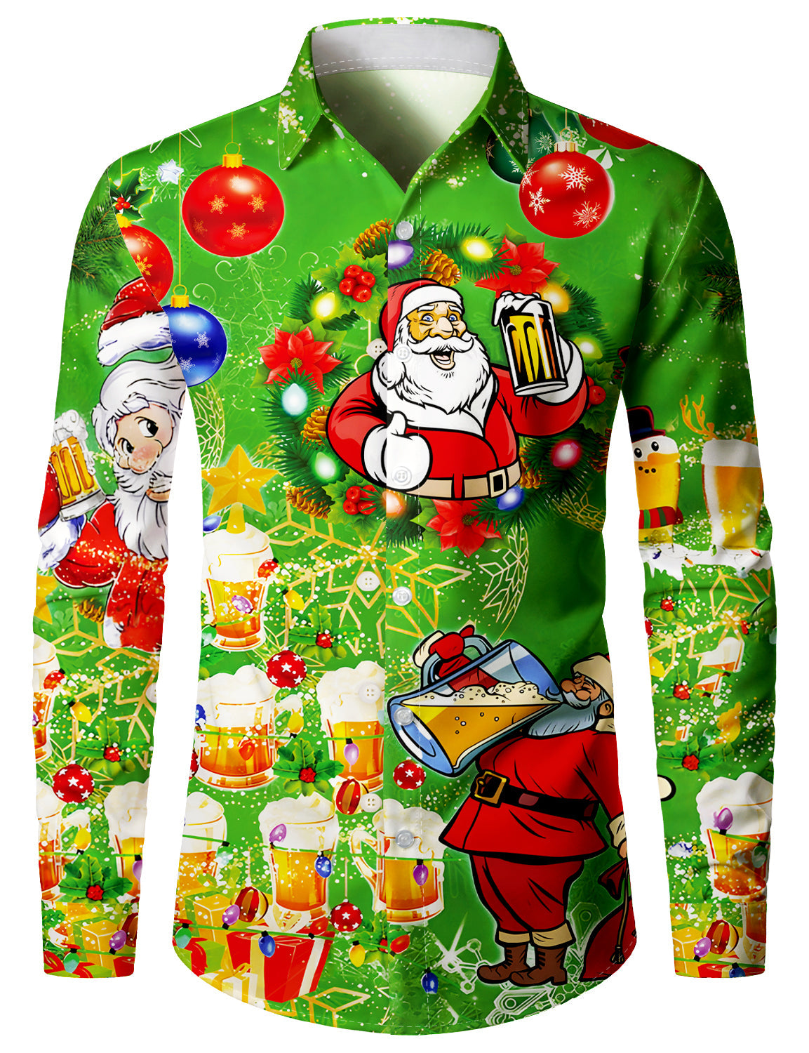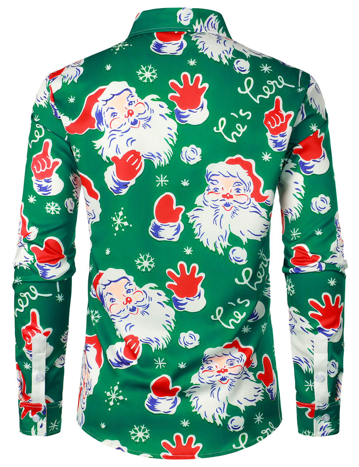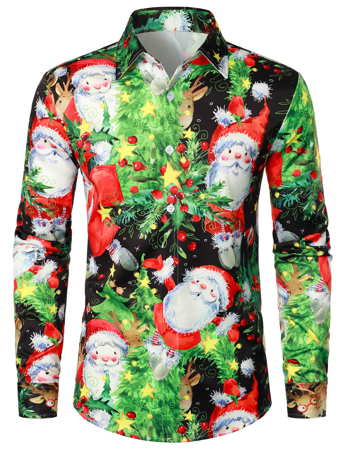 Herren Glänzendes Langarm Grün Weihnachtshemd