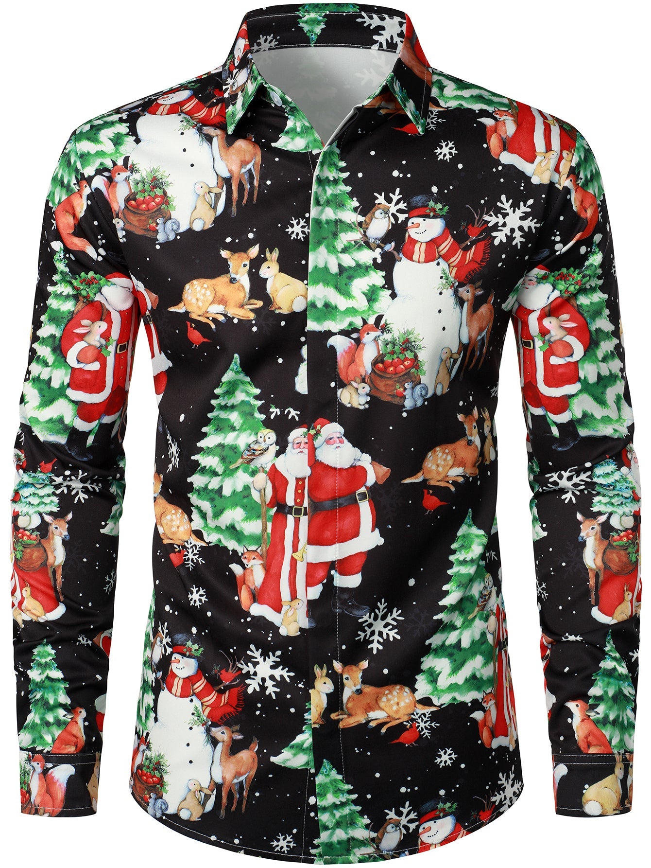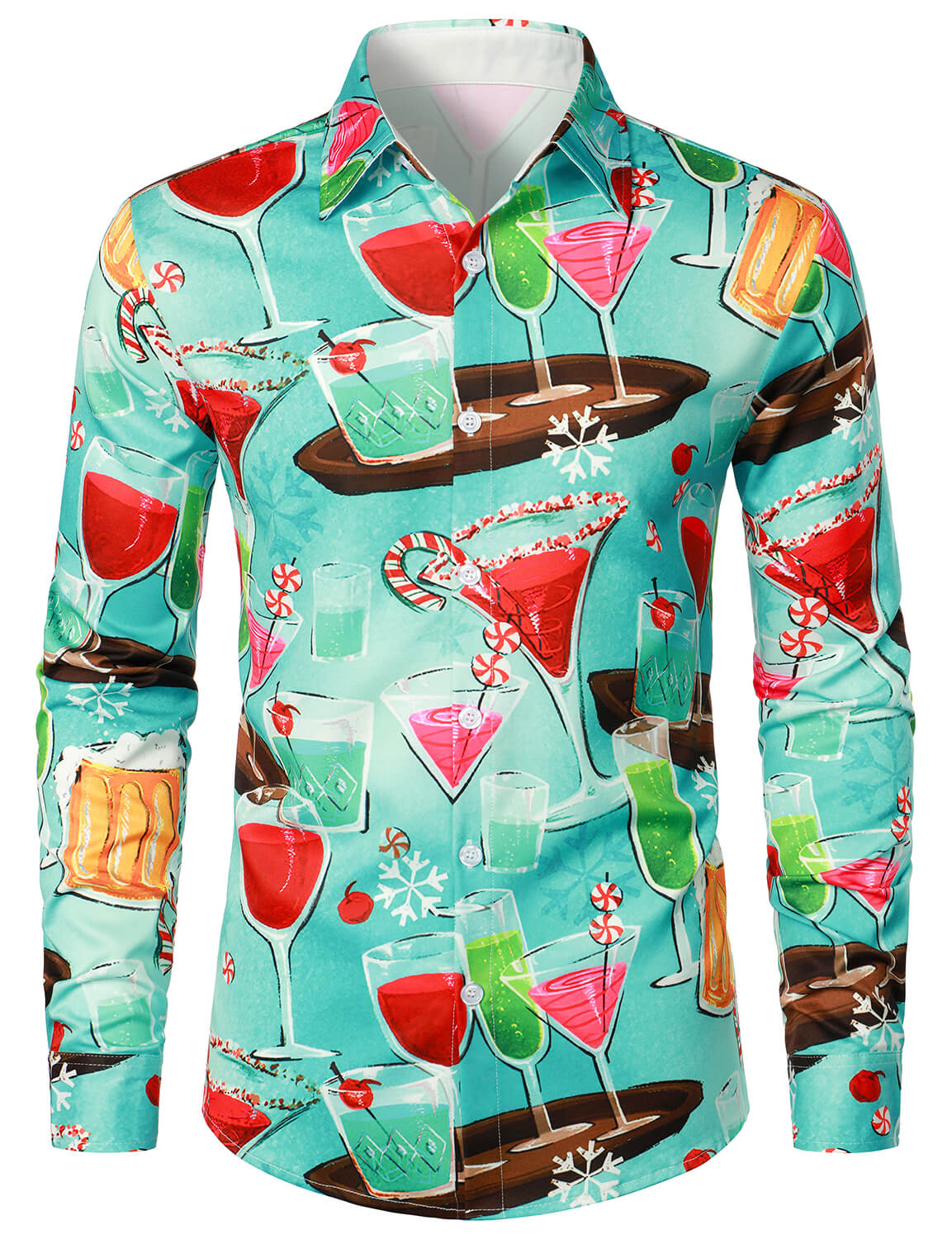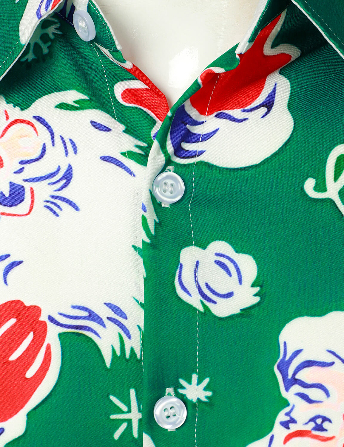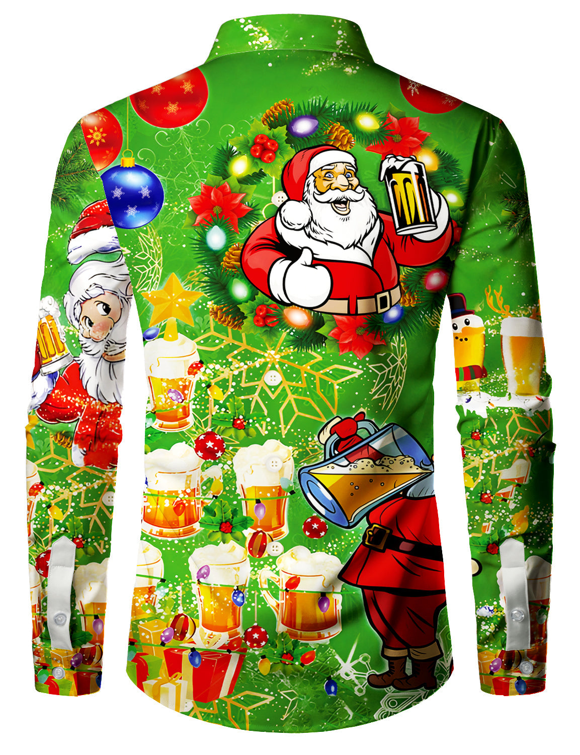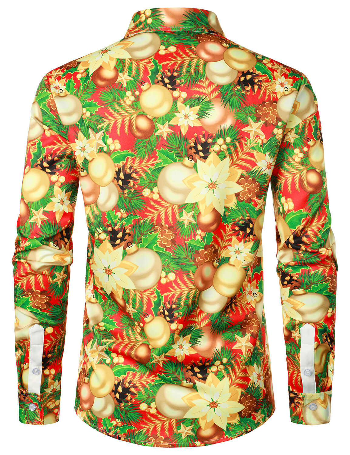 Herren Glänzendes Langarm Grün Weihnachtshemd