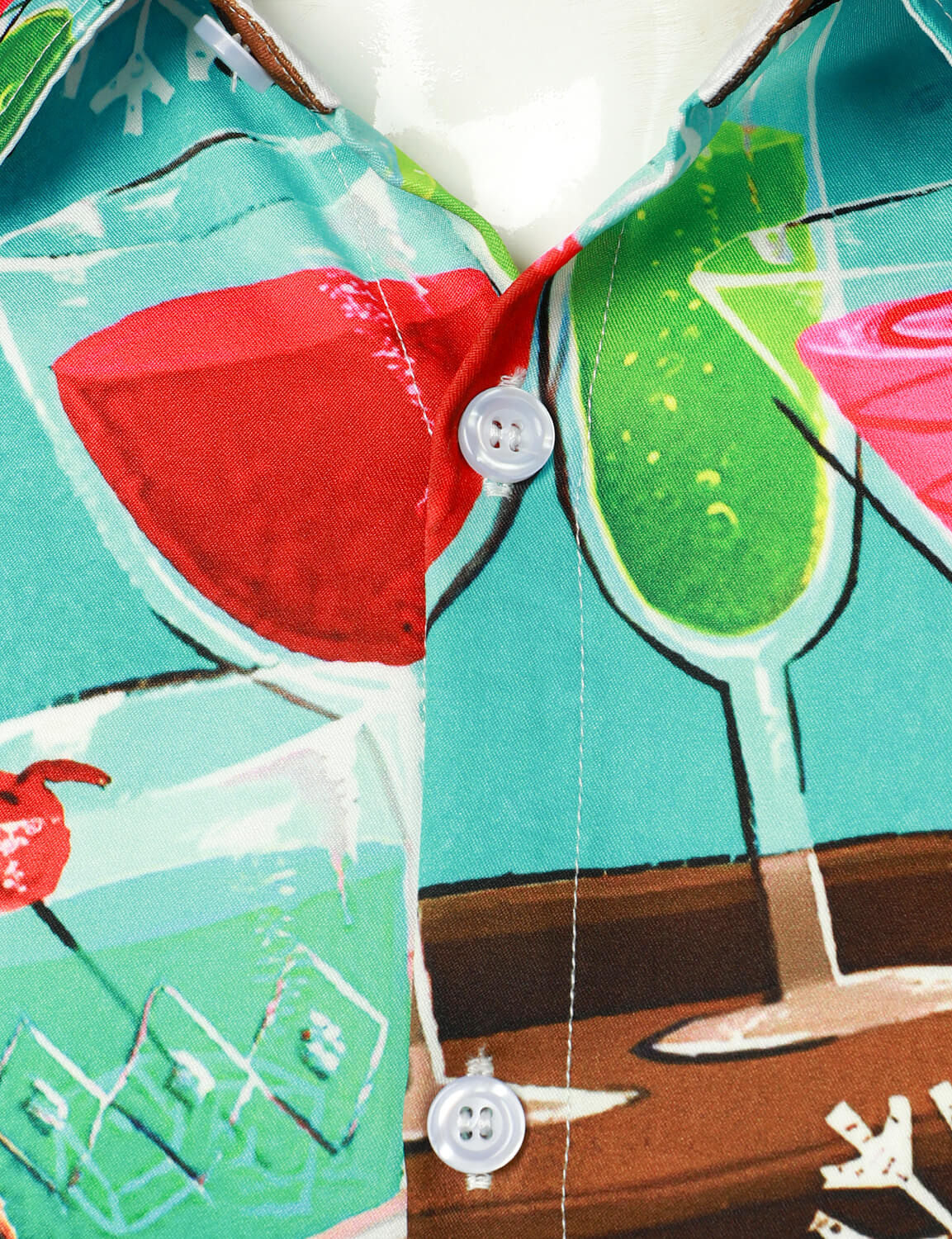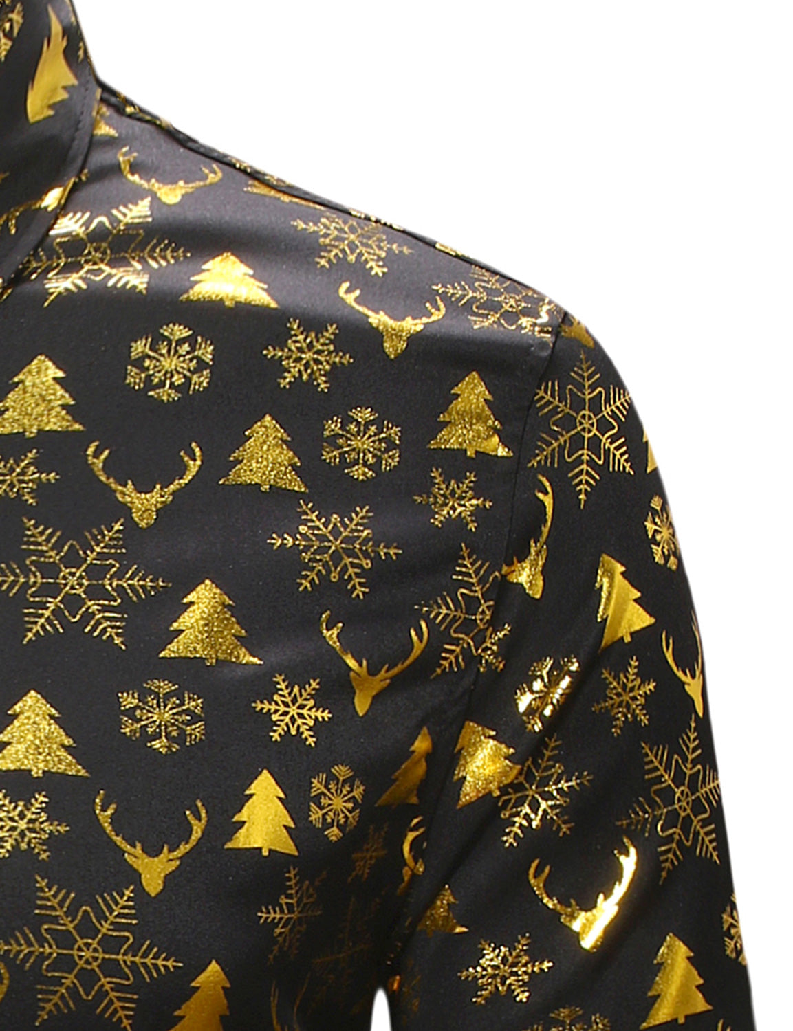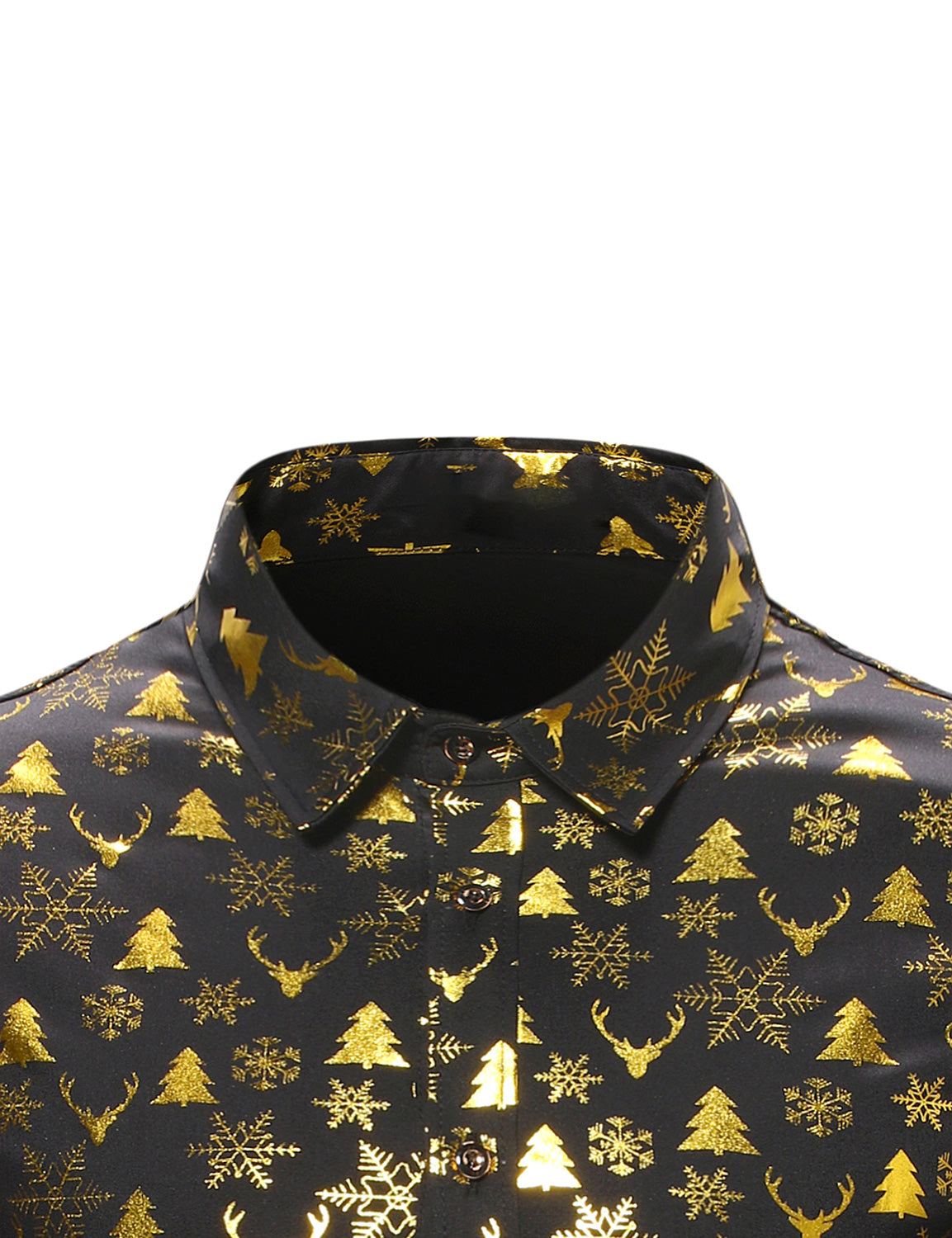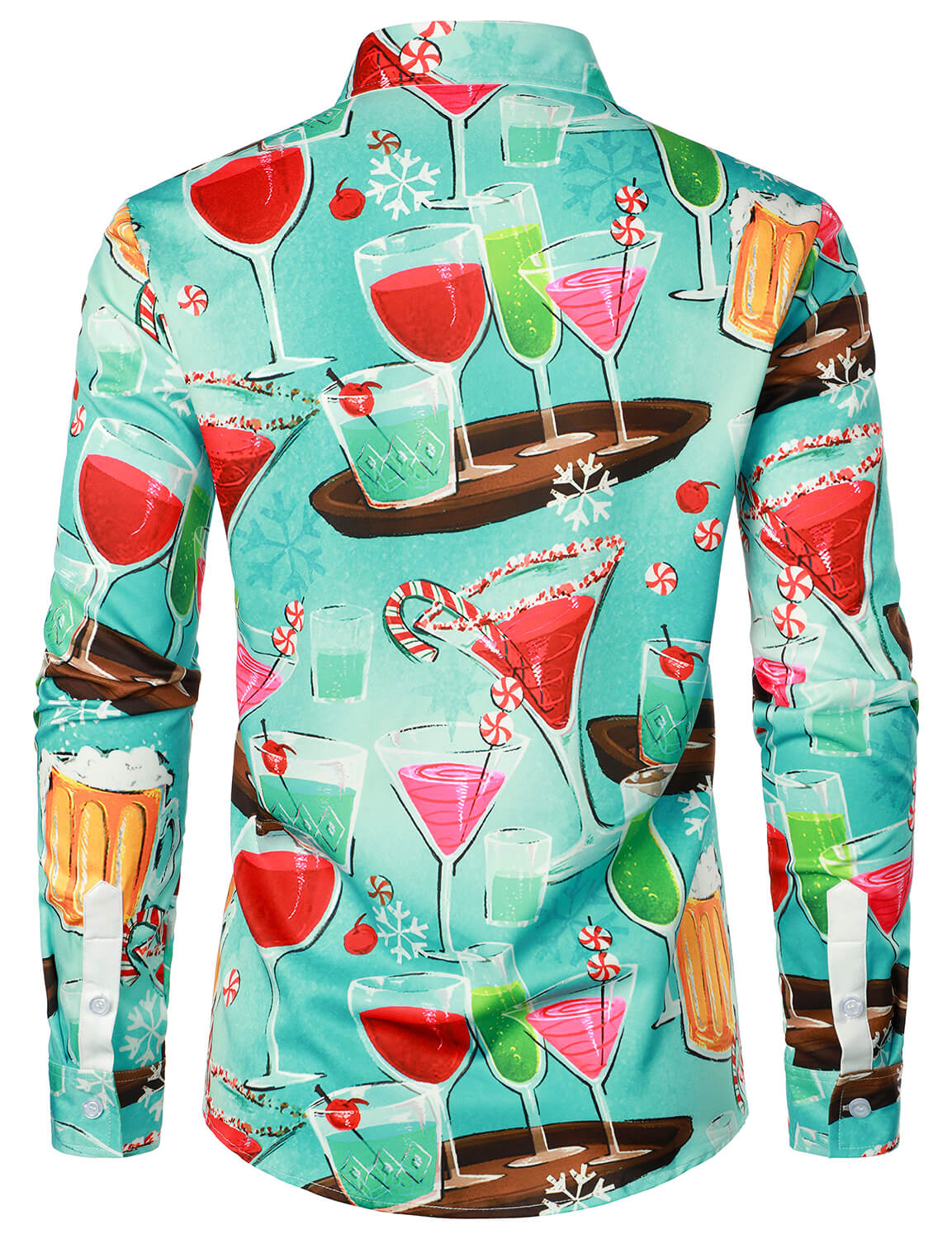 Herren Glänzendes Langarm Grün Weihnachtshemd