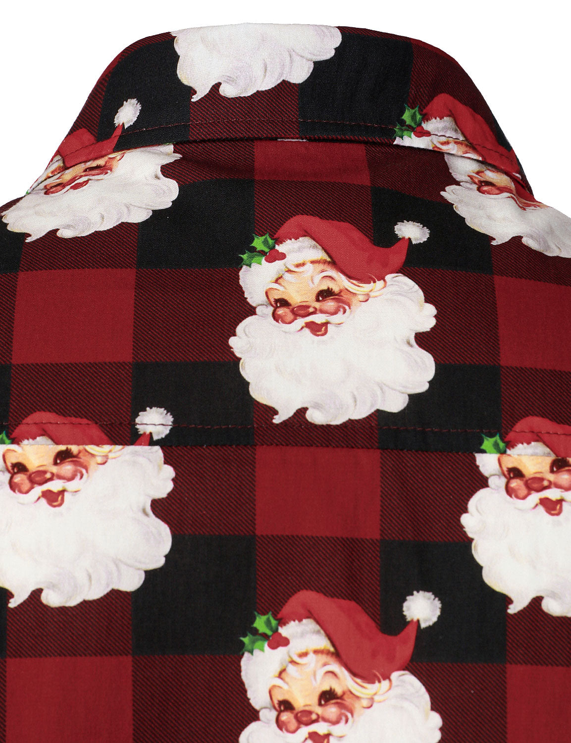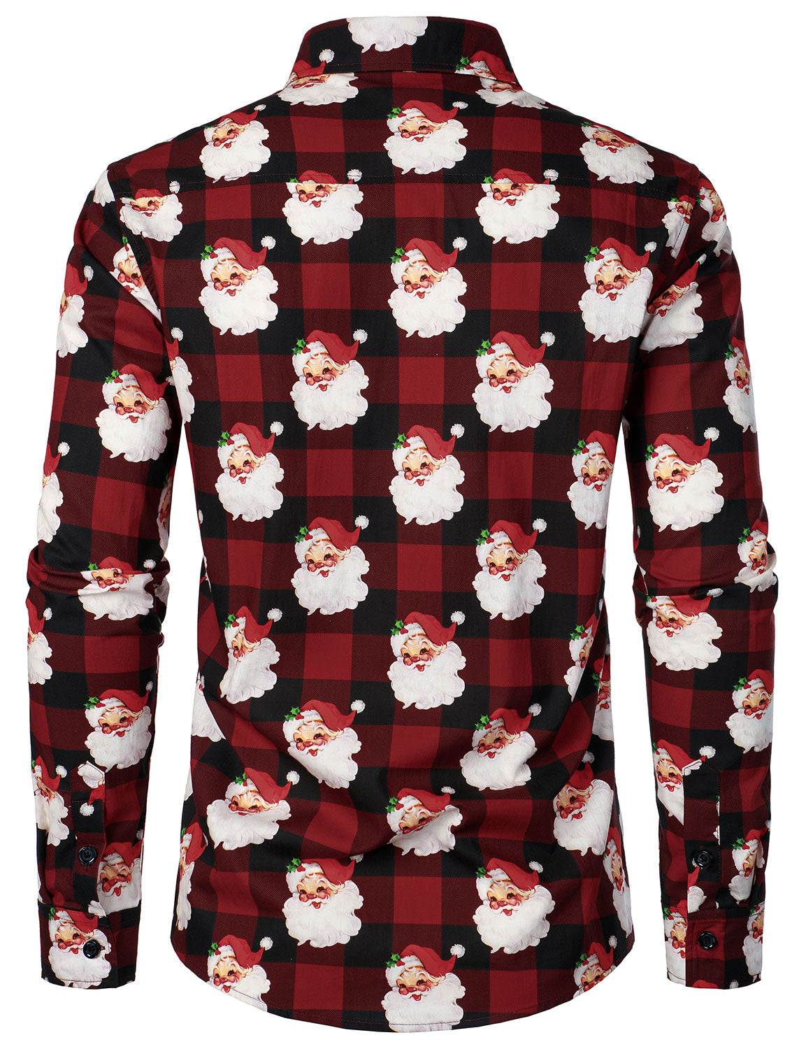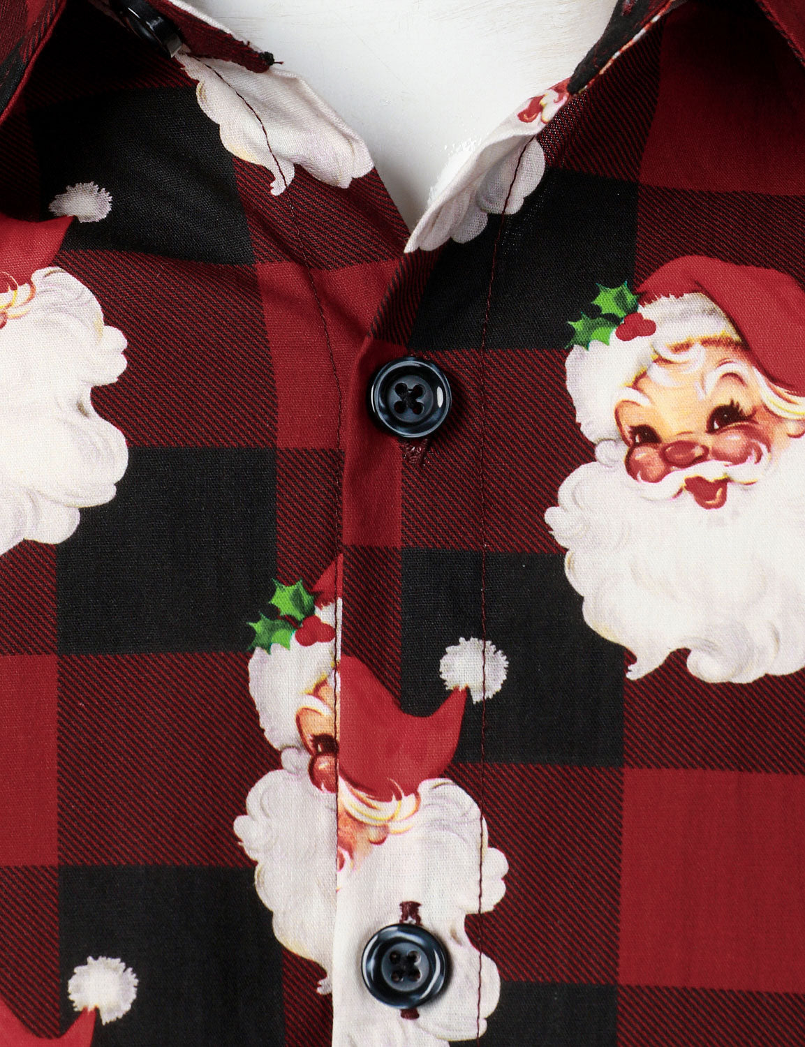 Herren Langärmliges Baumwollhemd mit Weihnachtsmann-Karomuster Rot