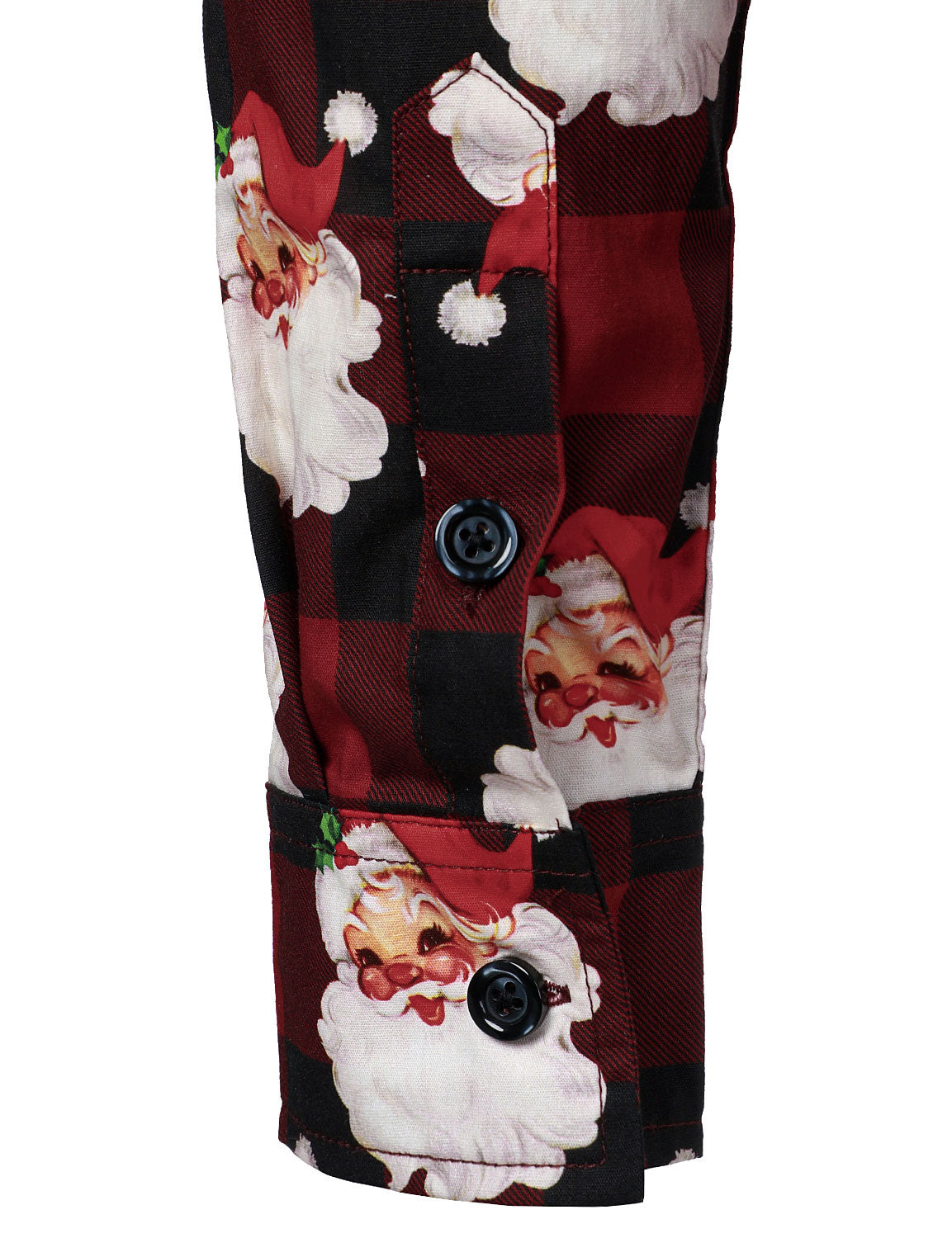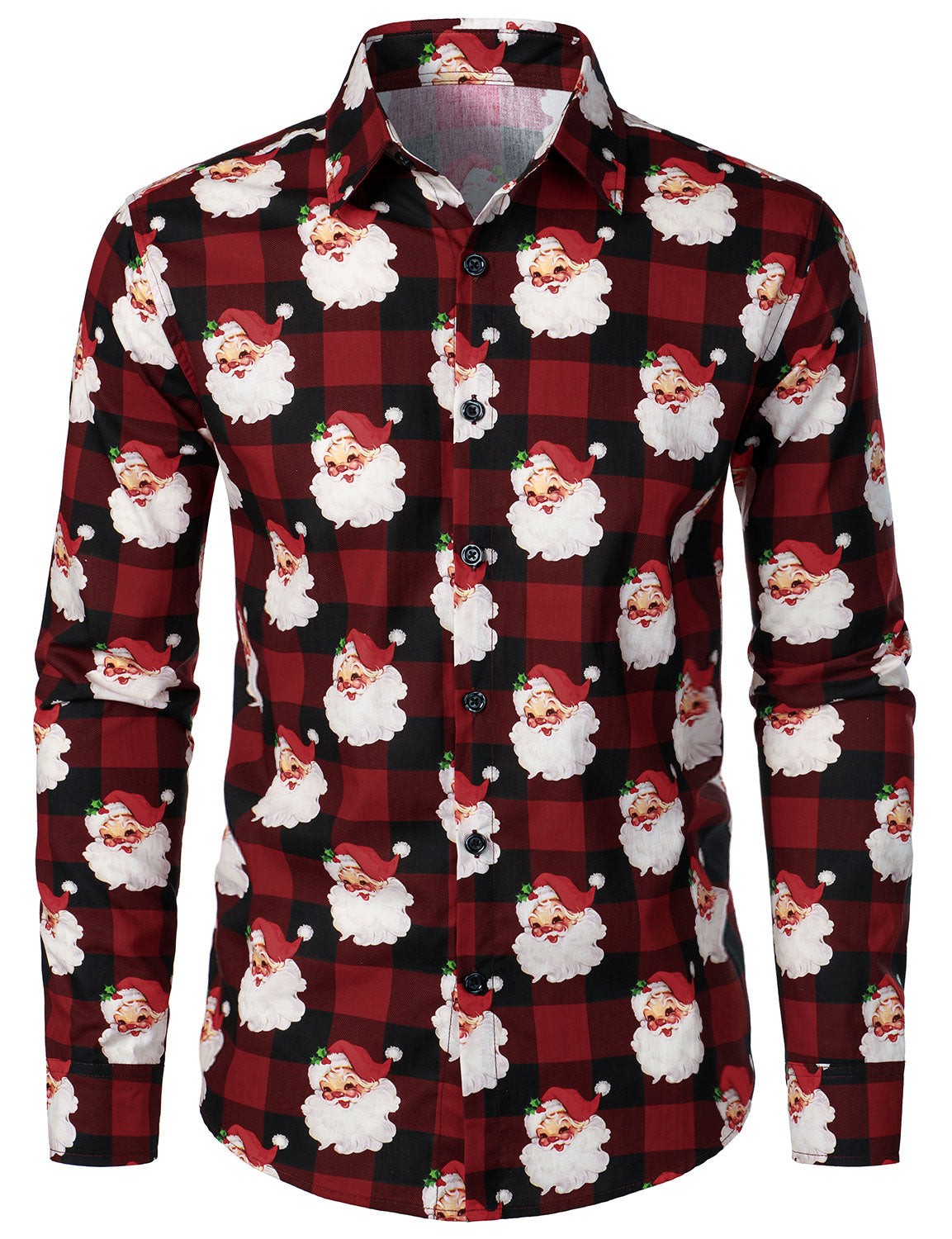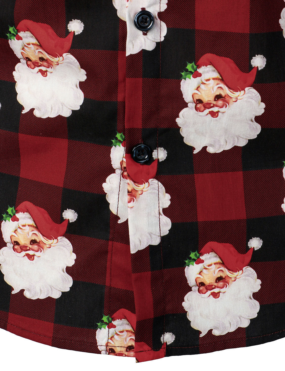 Herren Langärmliges Baumwollhemd mit Weihnachtsmann-Karomuster Rot