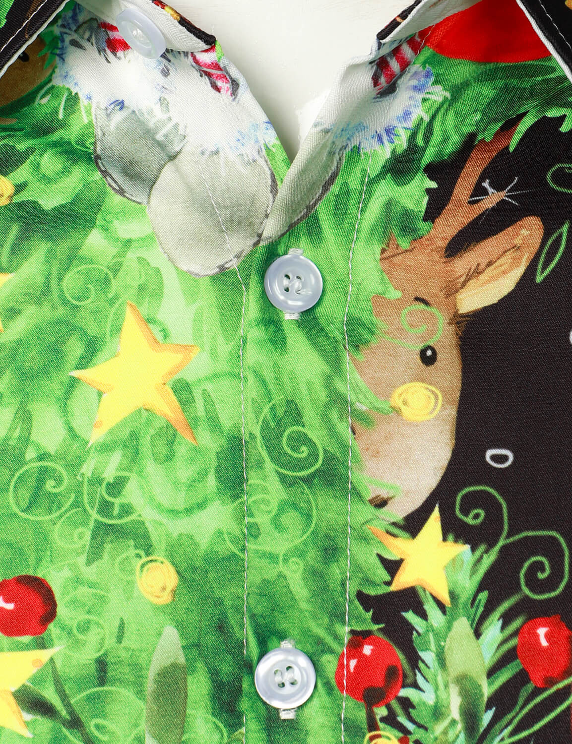 Herren Weihnachten Muster Grün Weihnachtshemd