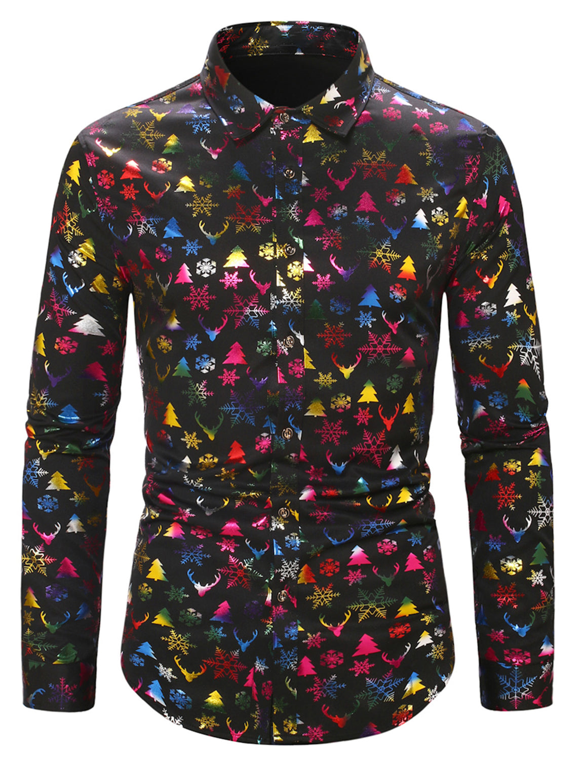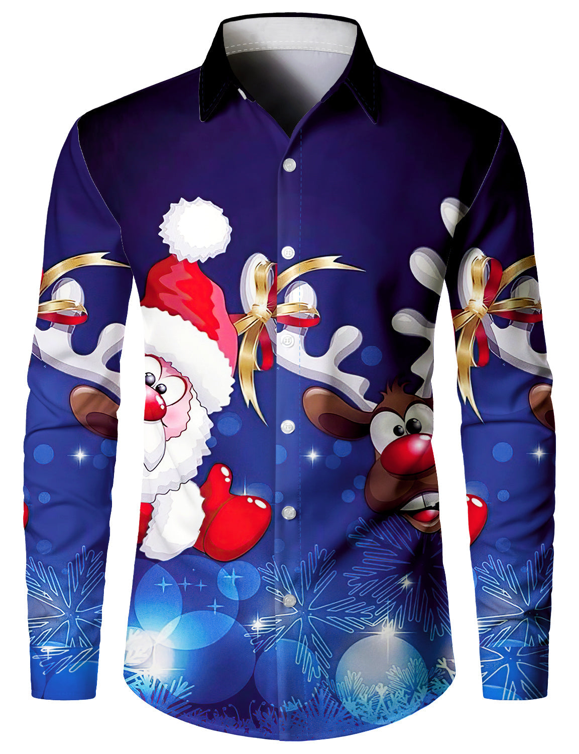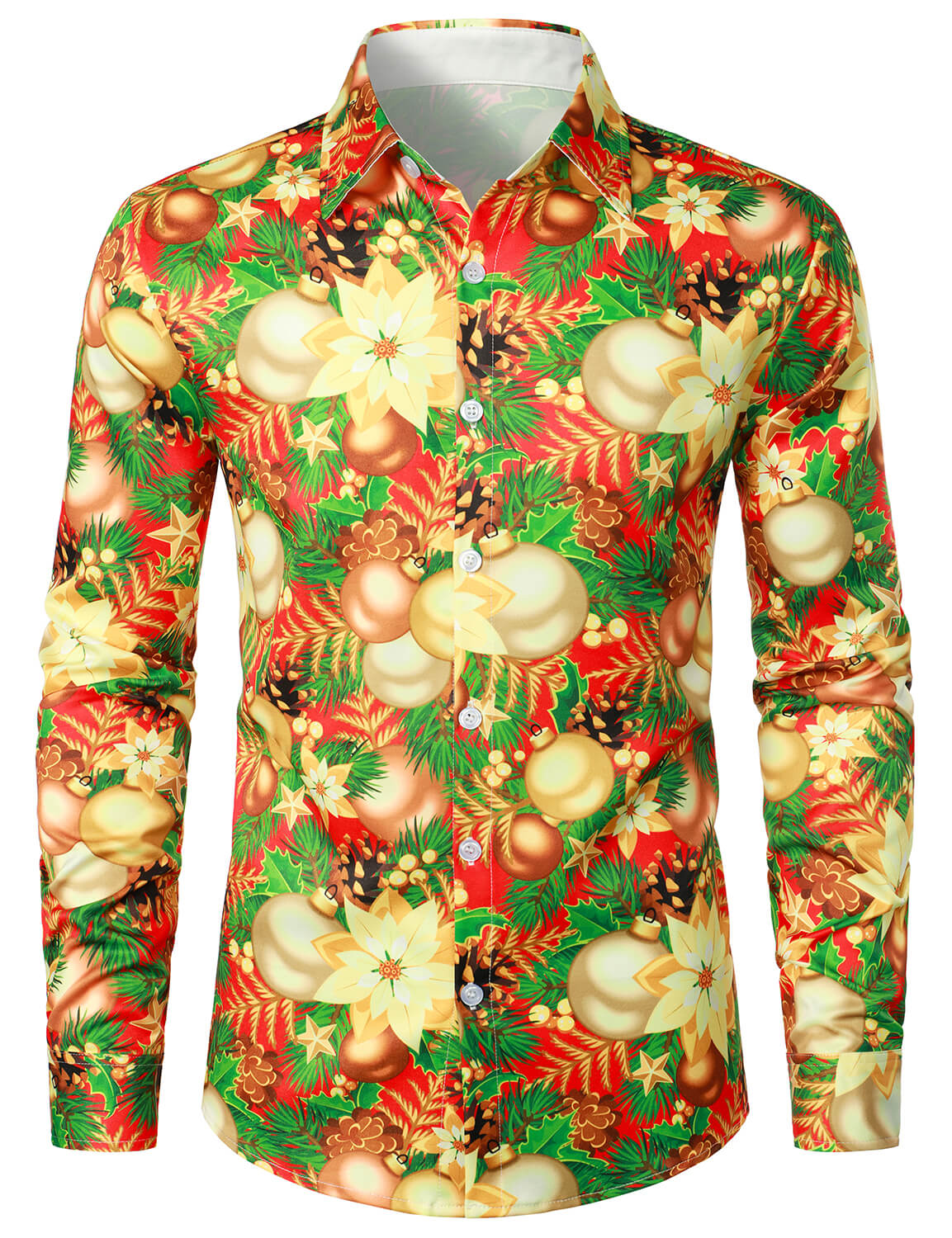 Herren Weihnachtliches Langarmhemd aus 100% Baumwolle