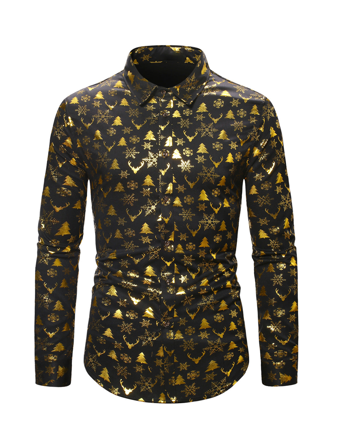 Herren Weihnachtliches 100% Baumwolle Langarmhemd