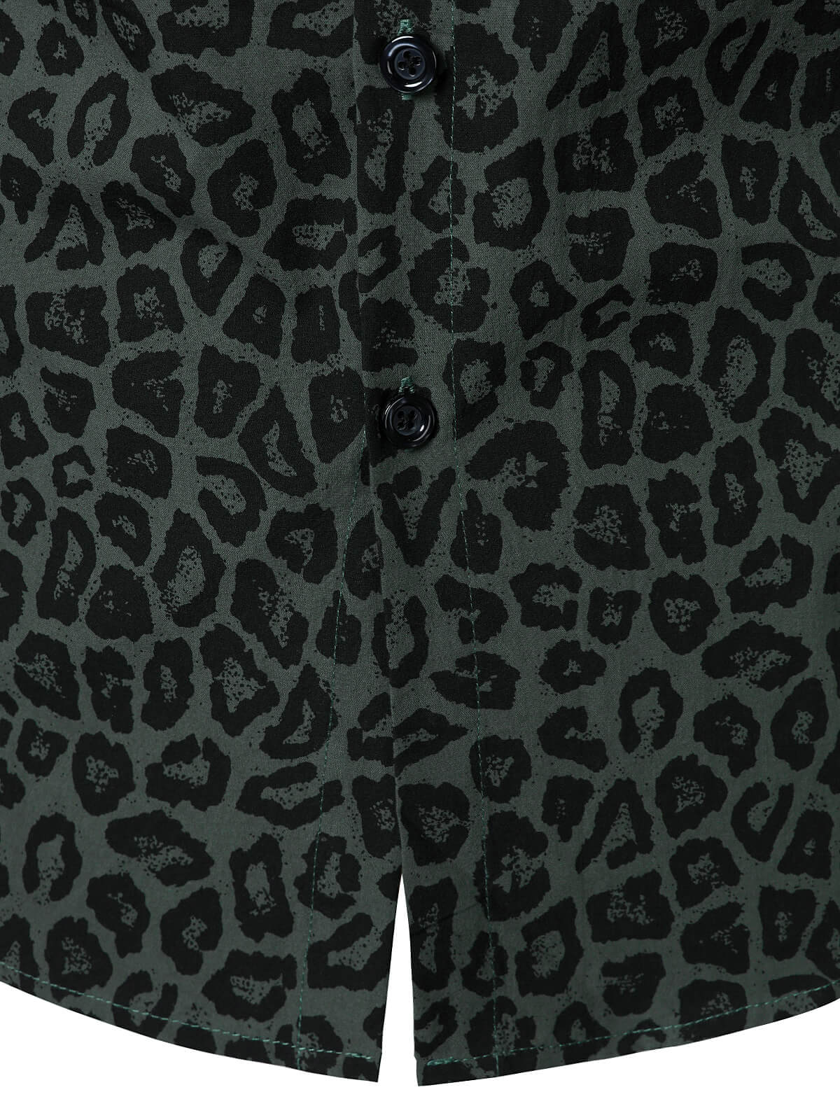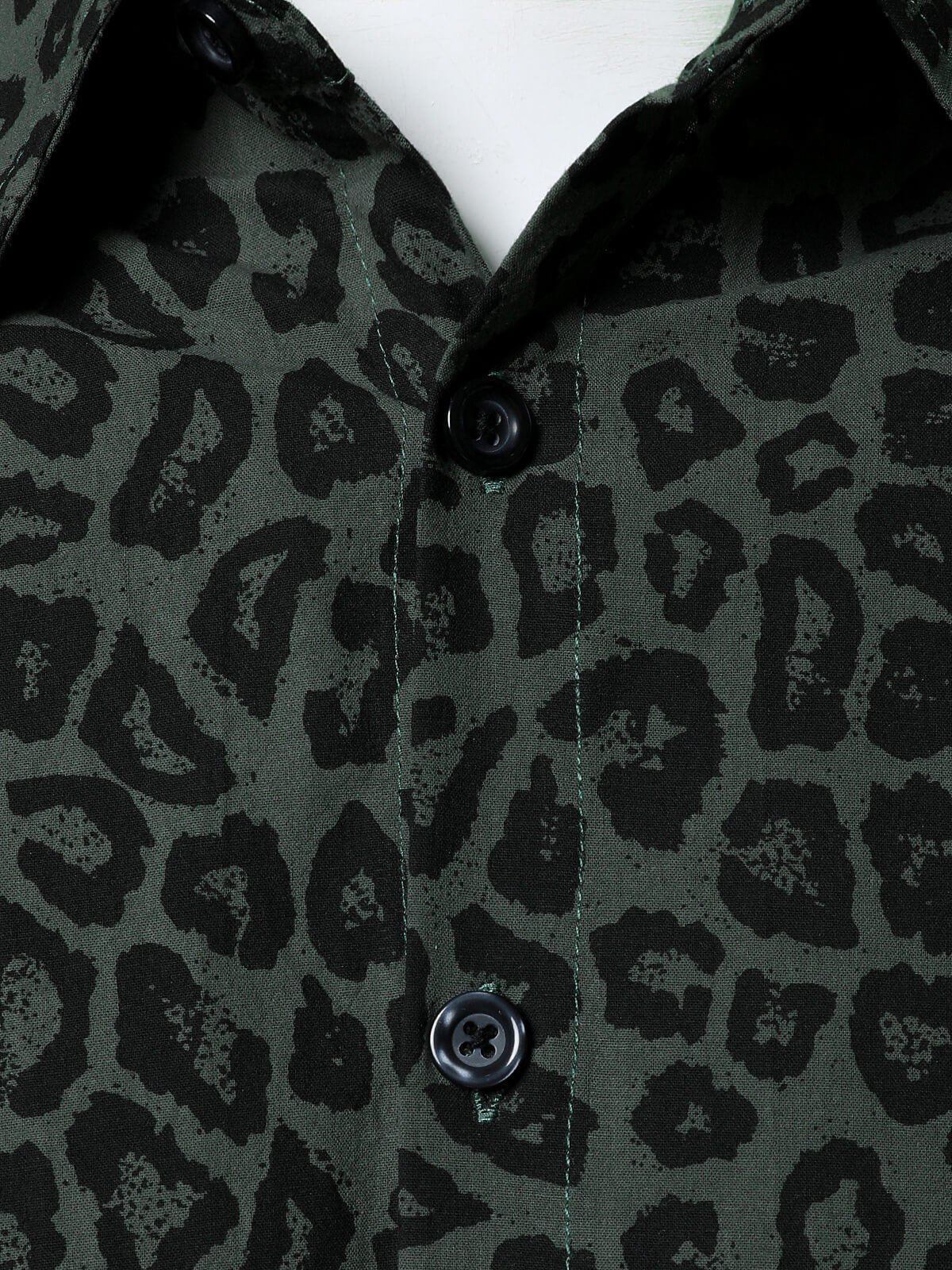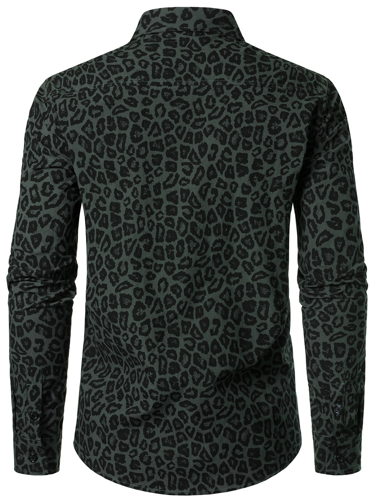 Herren Langarmhemd aus Baumwolle mit grünem Leopardenmuster