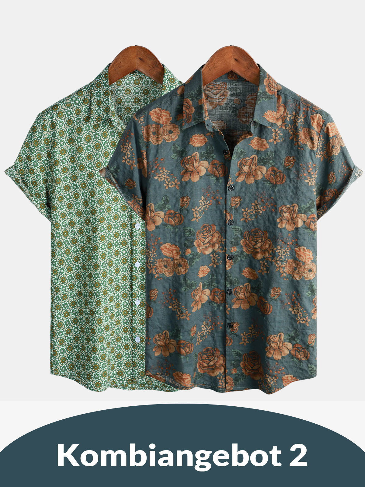 Kombiangebot 2 | Herren Vintage Floral Sommer Urlaub Hemden