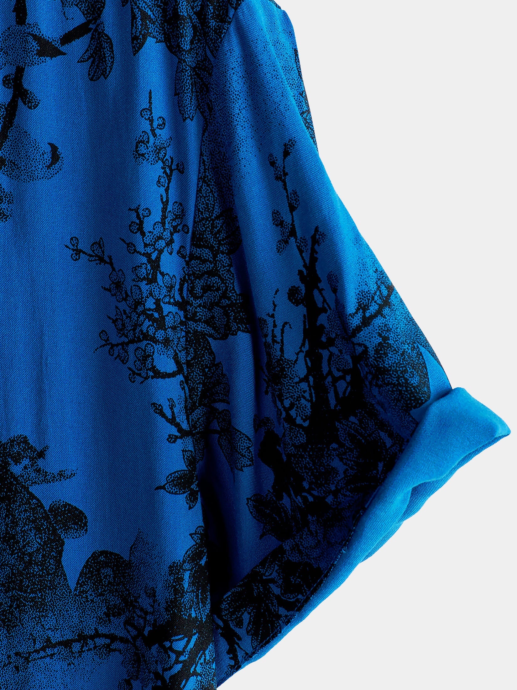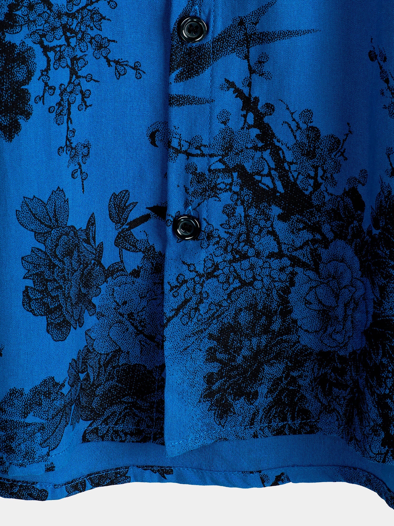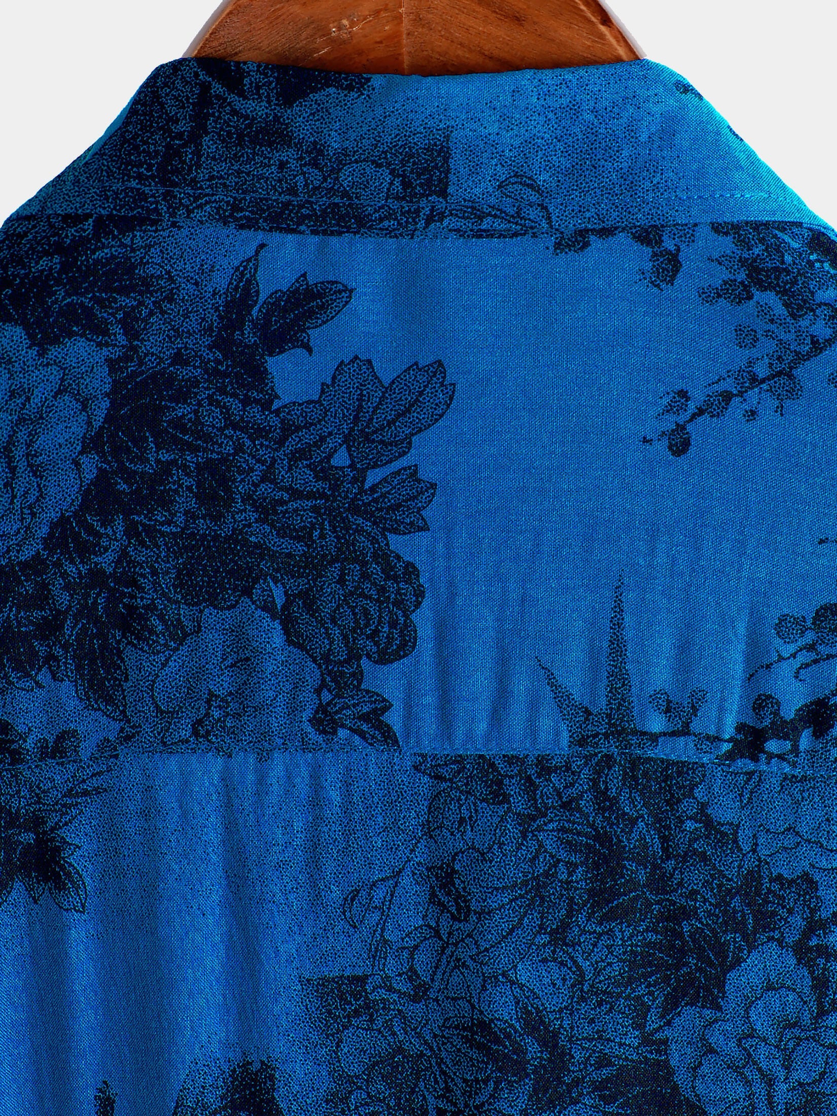 Herren Hawaiianisches Kurzarmhemd mit Blumenmuster Blau