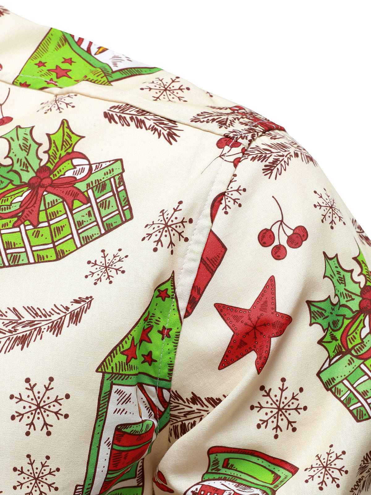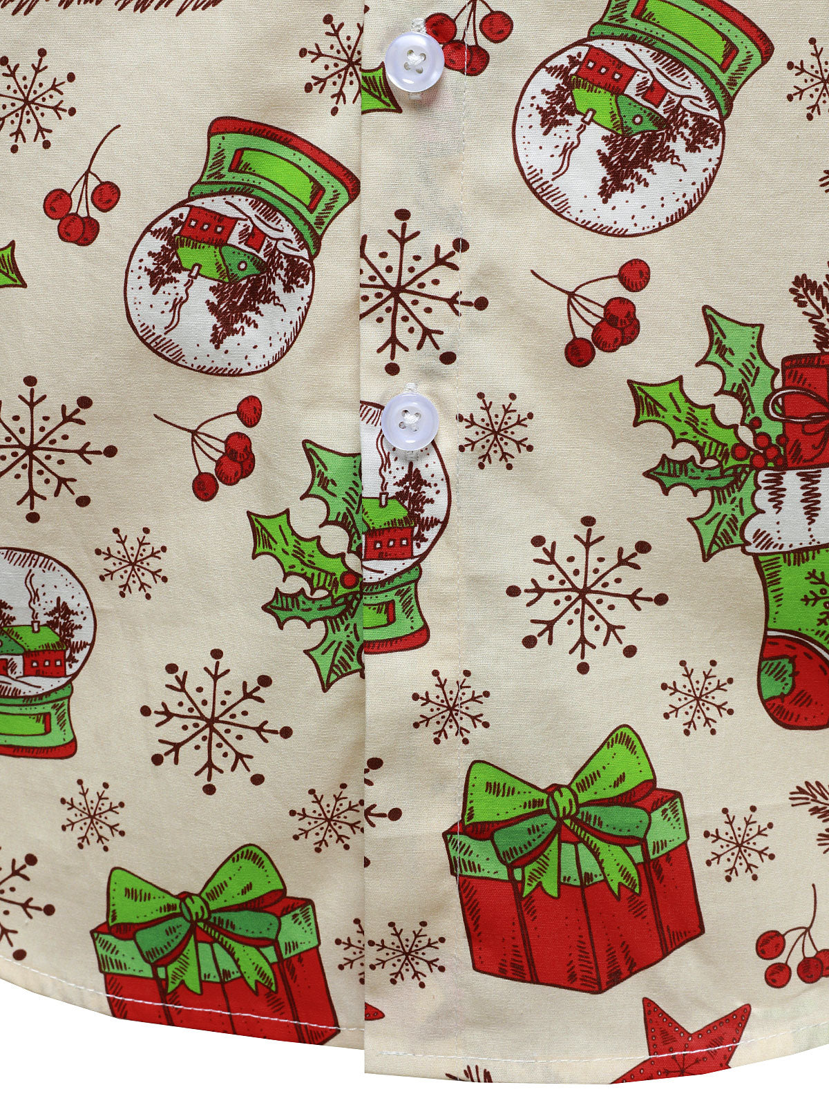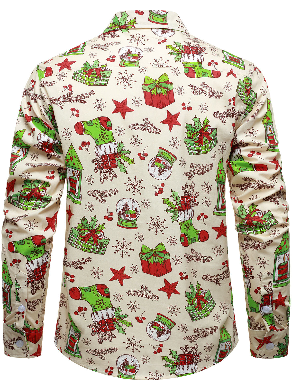 Herren Festlichem Weihnachtsaufdruck Baumwollhemd Beige