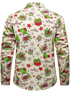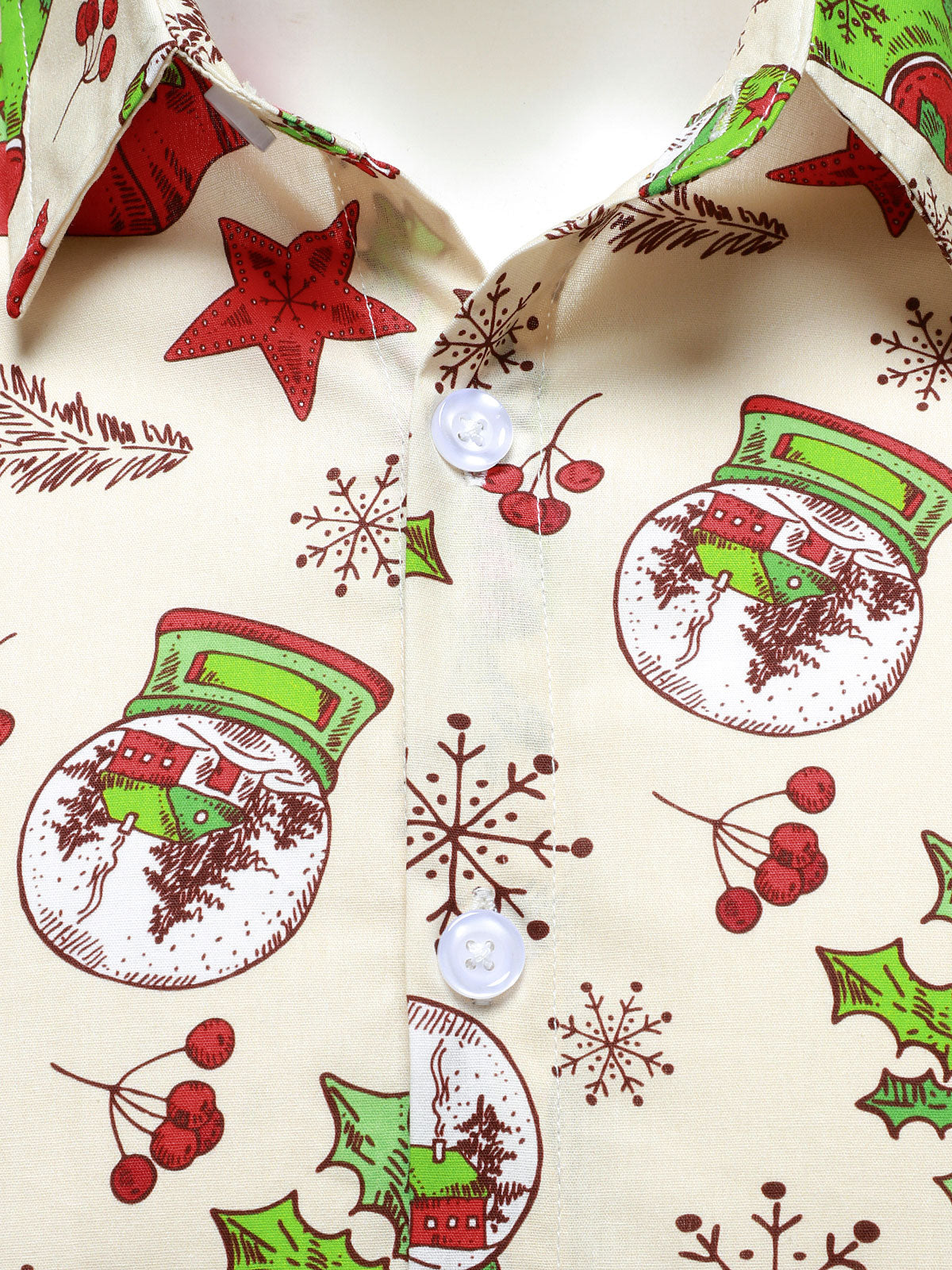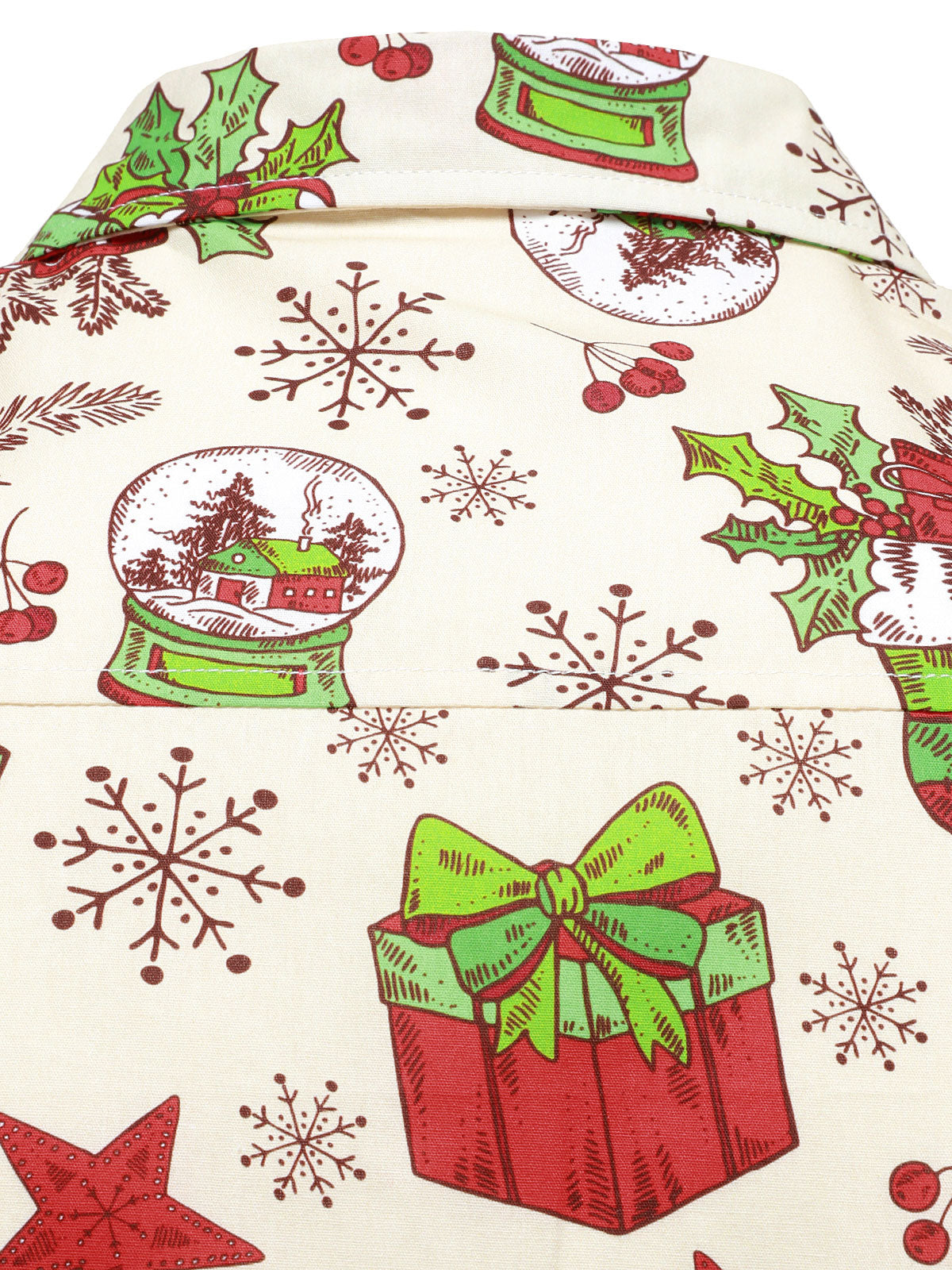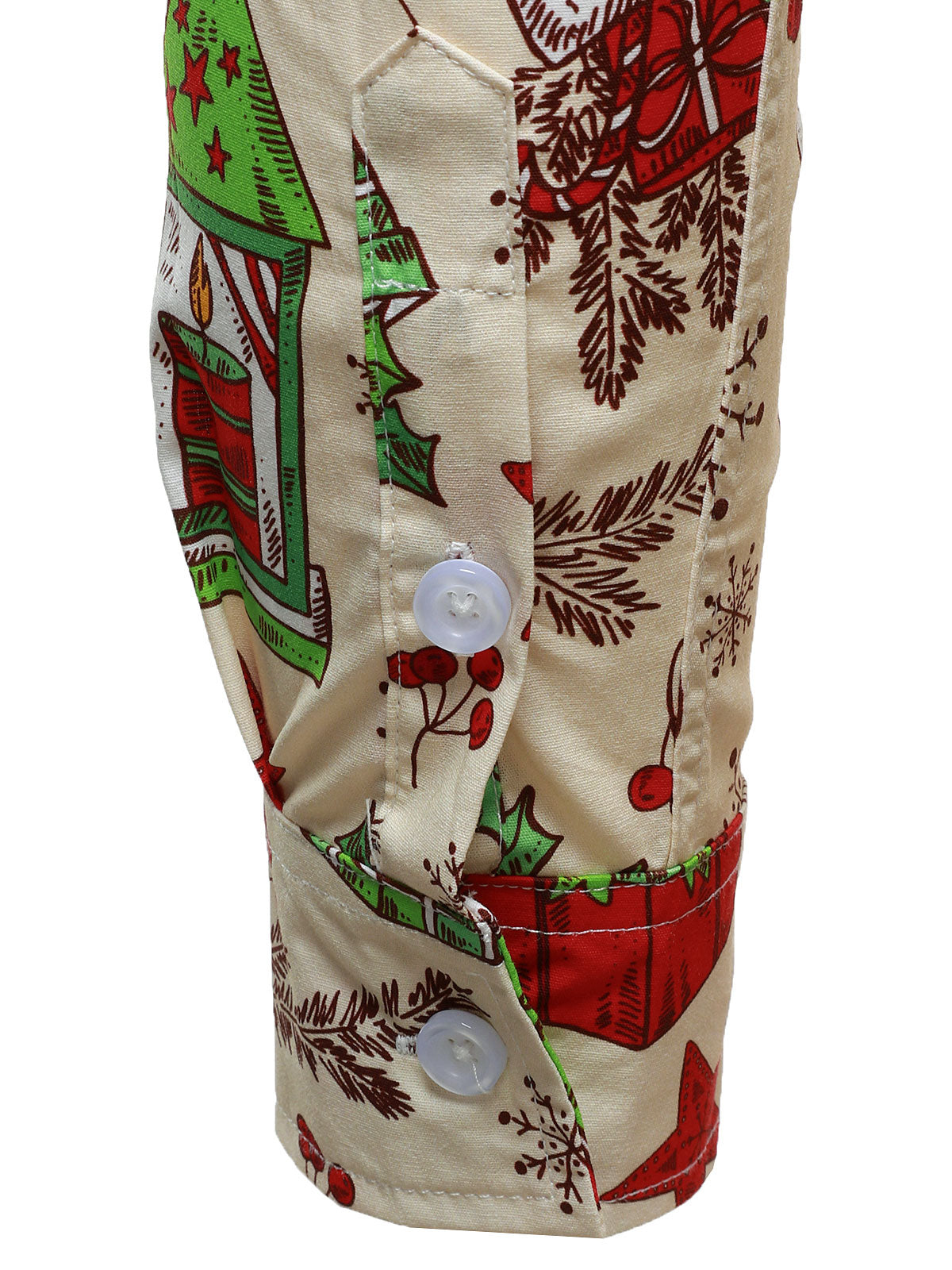 Herren Festlichem Weihnachtsaufdruck Baumwollhemd Beige