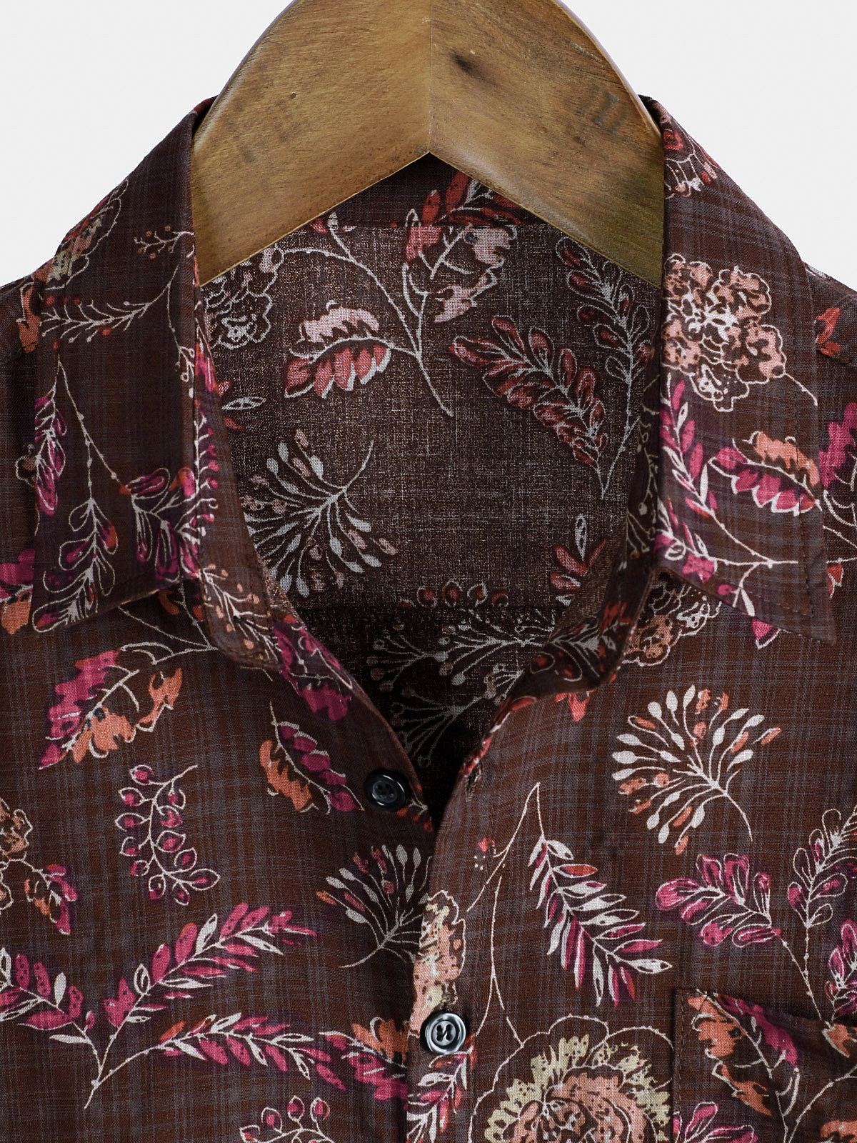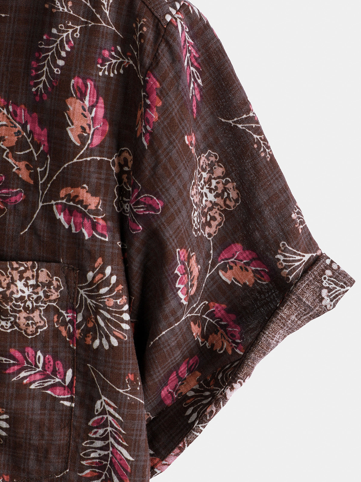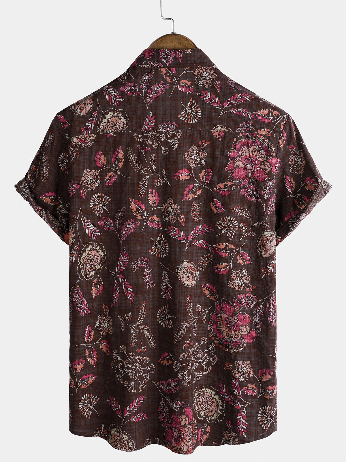 Herren Kurzarmhemd mit Blumenmuster im Vintage-Stil