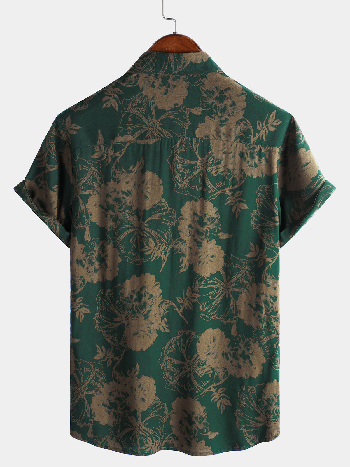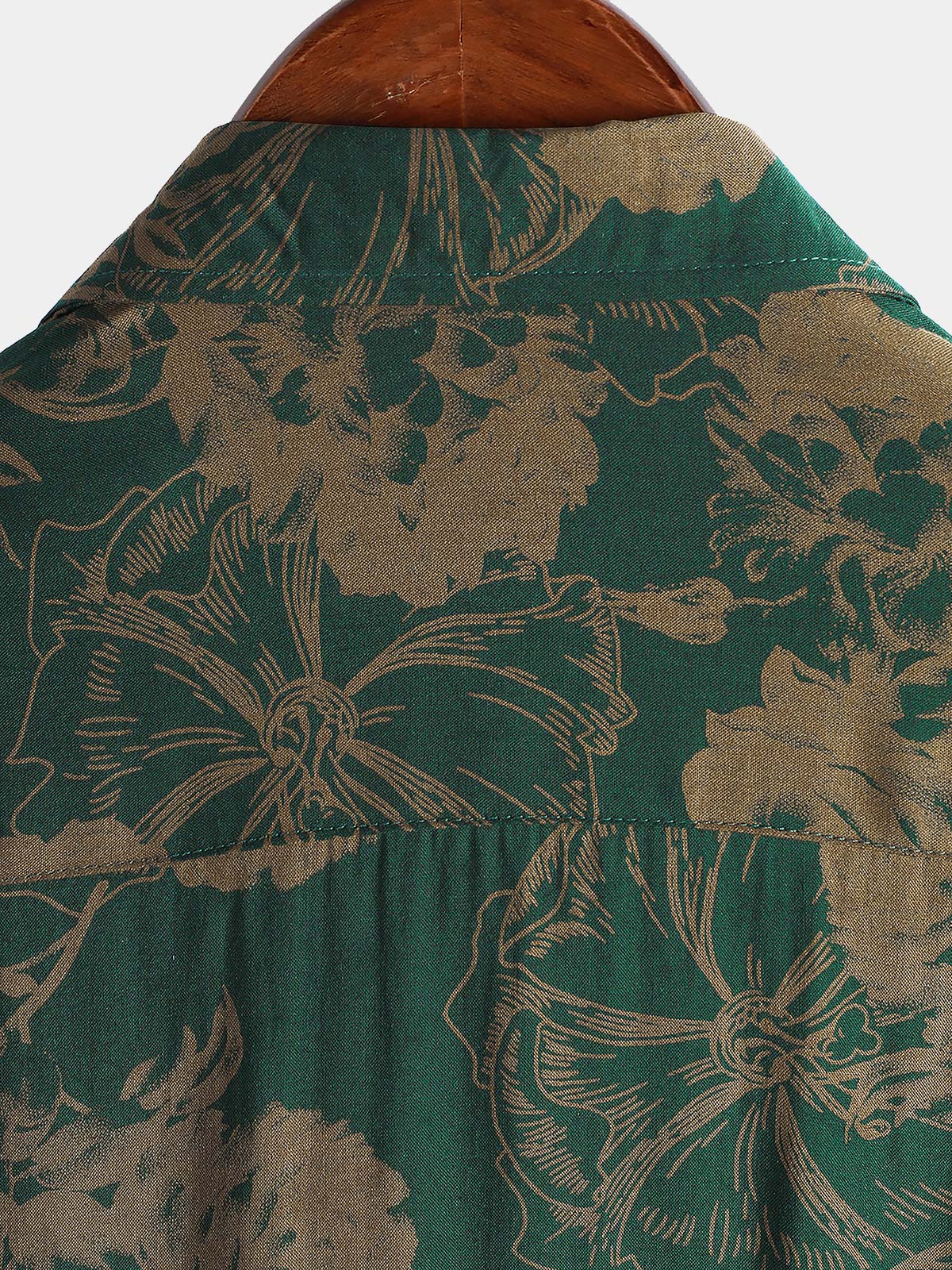 Herren Grün Vintage-Blumenmuster Sommer-Kurzarmhemd