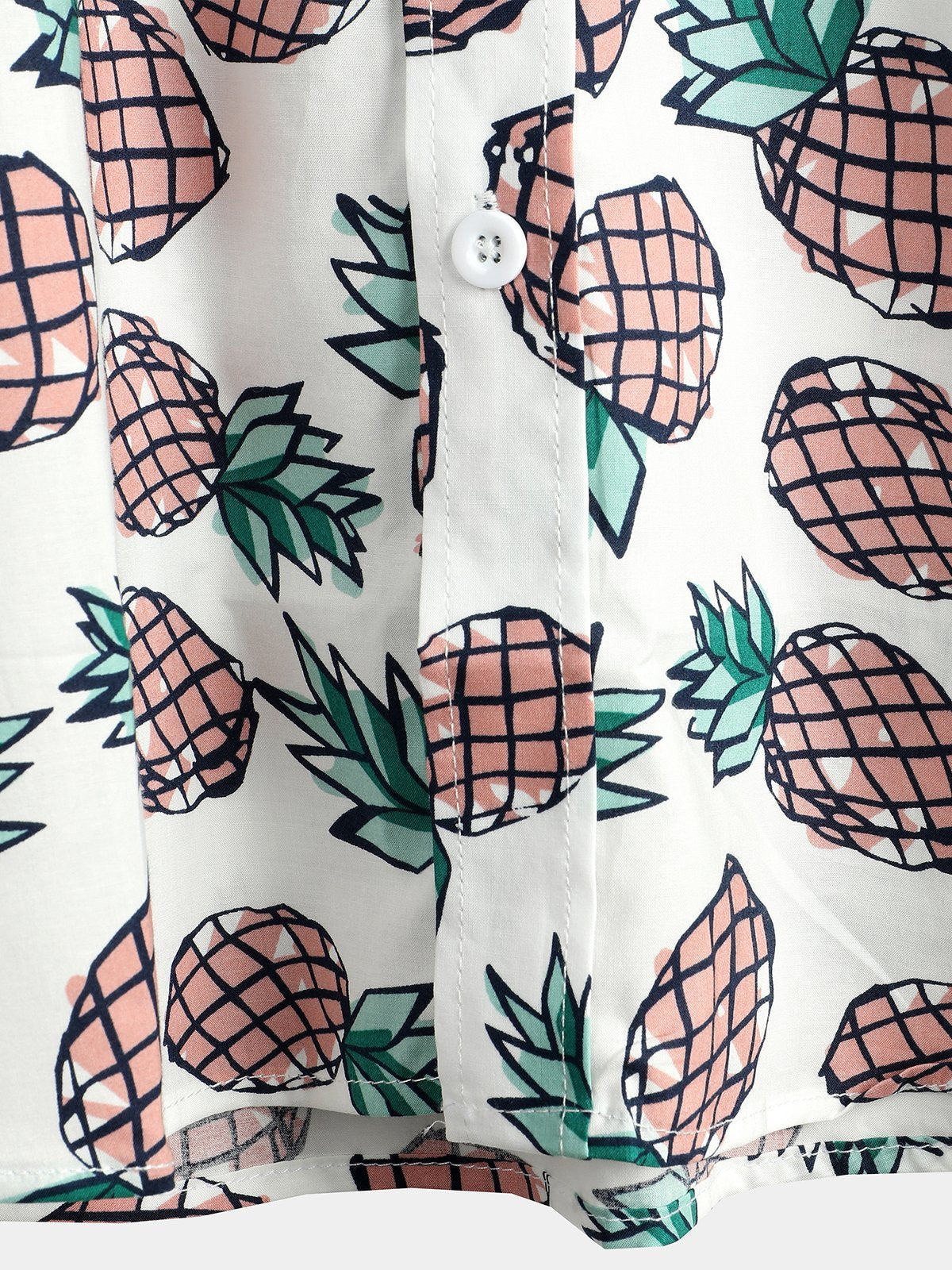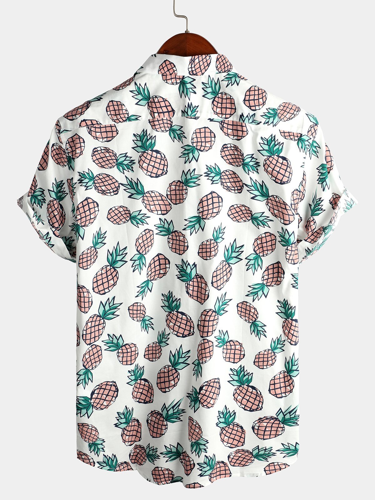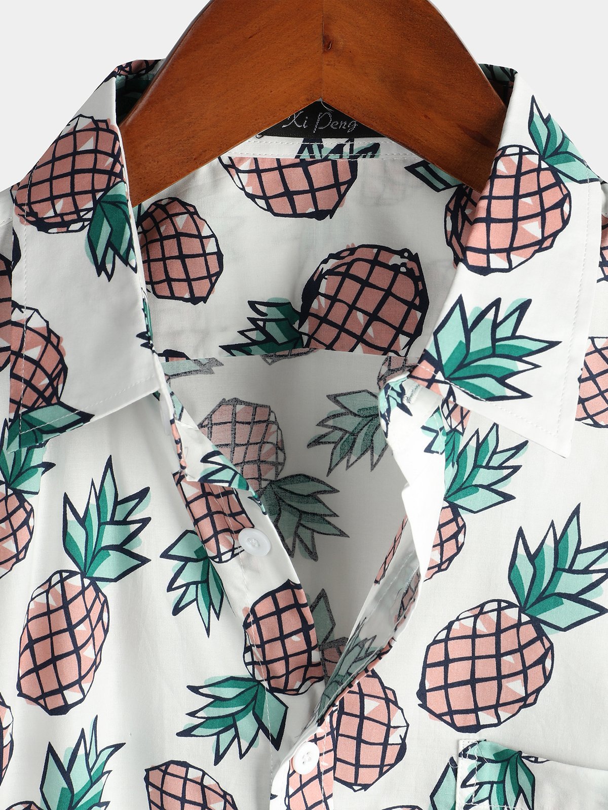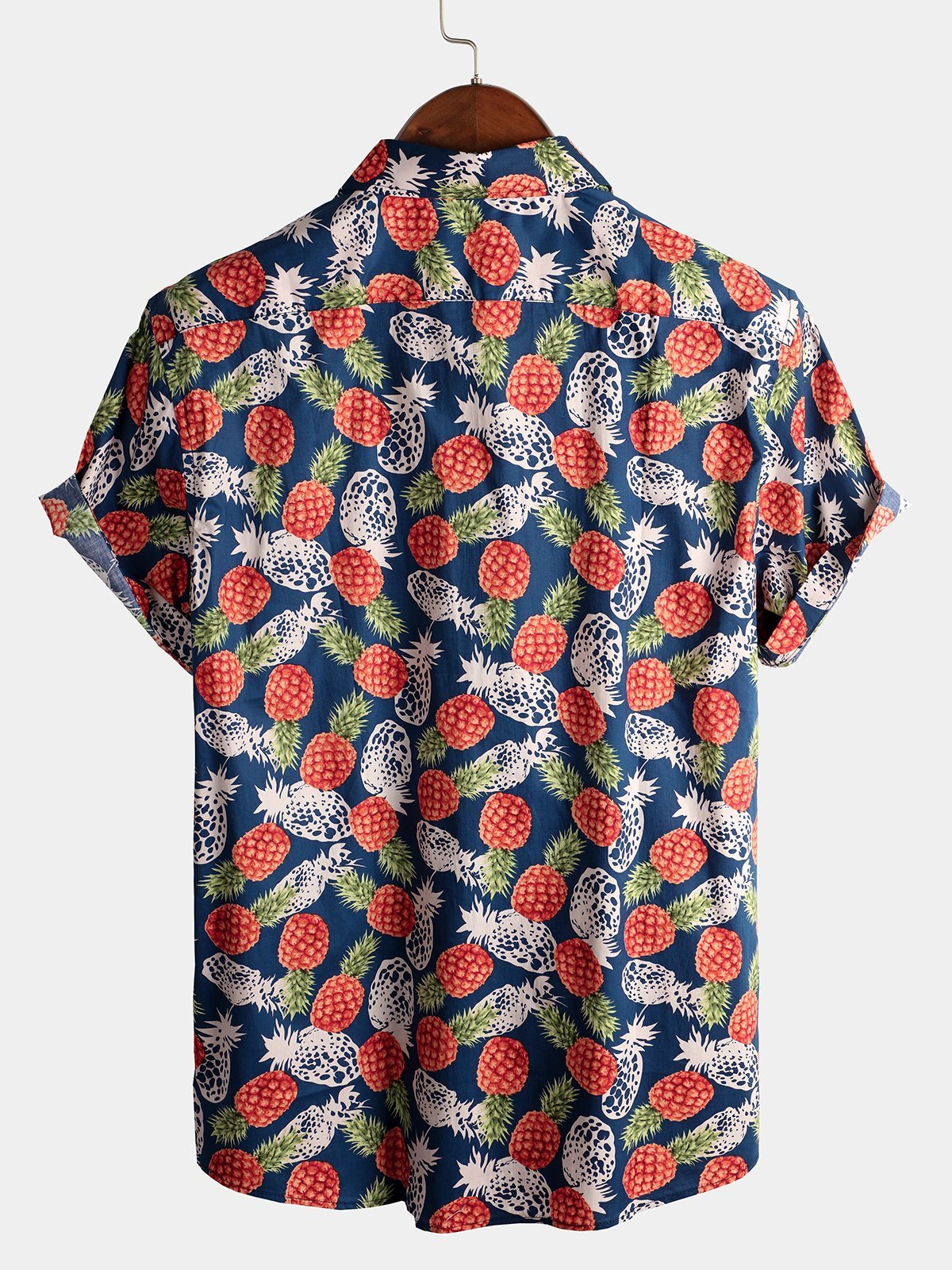 Herren Blumendruck Baumwolle Kurzarmhemd