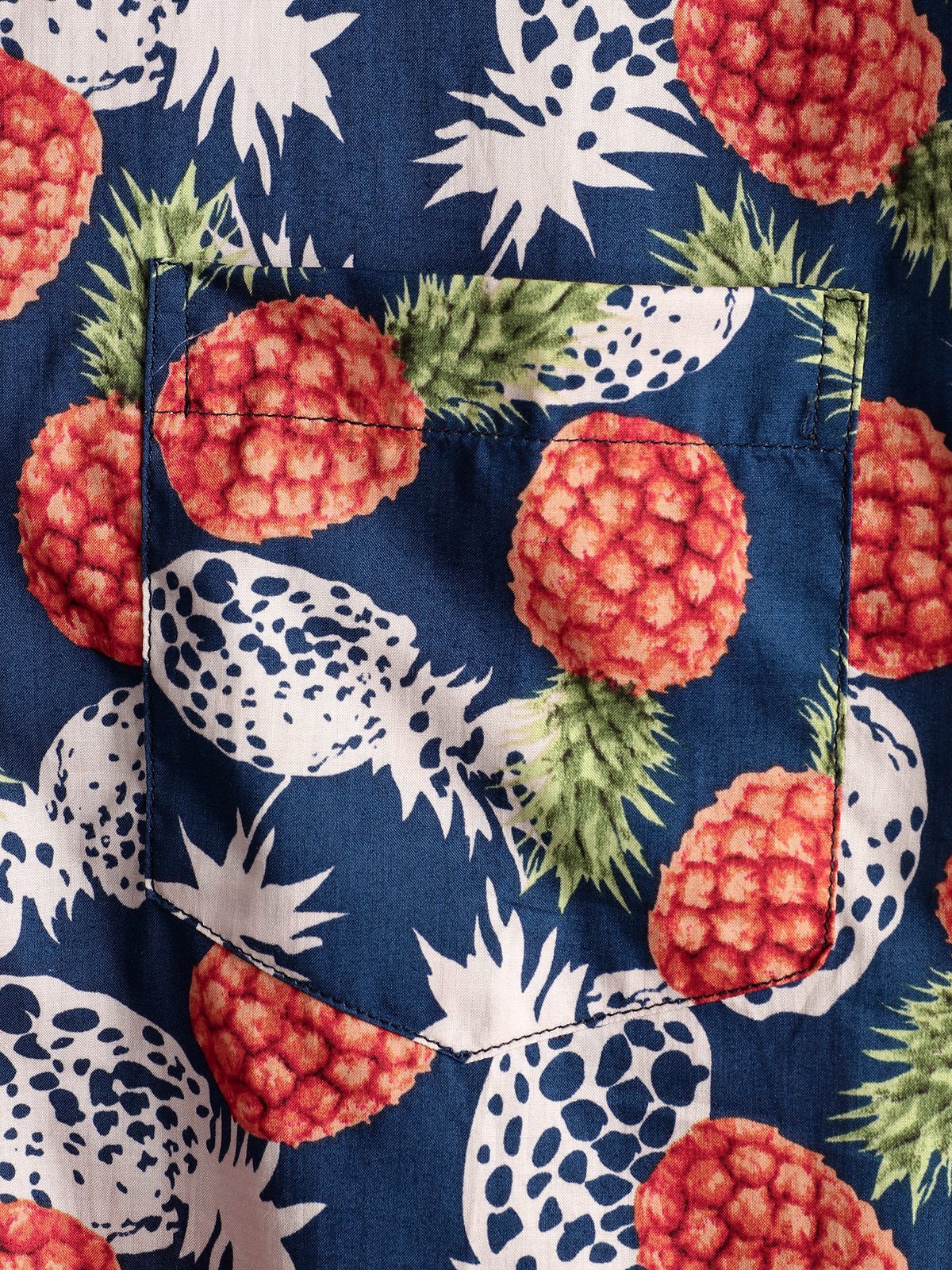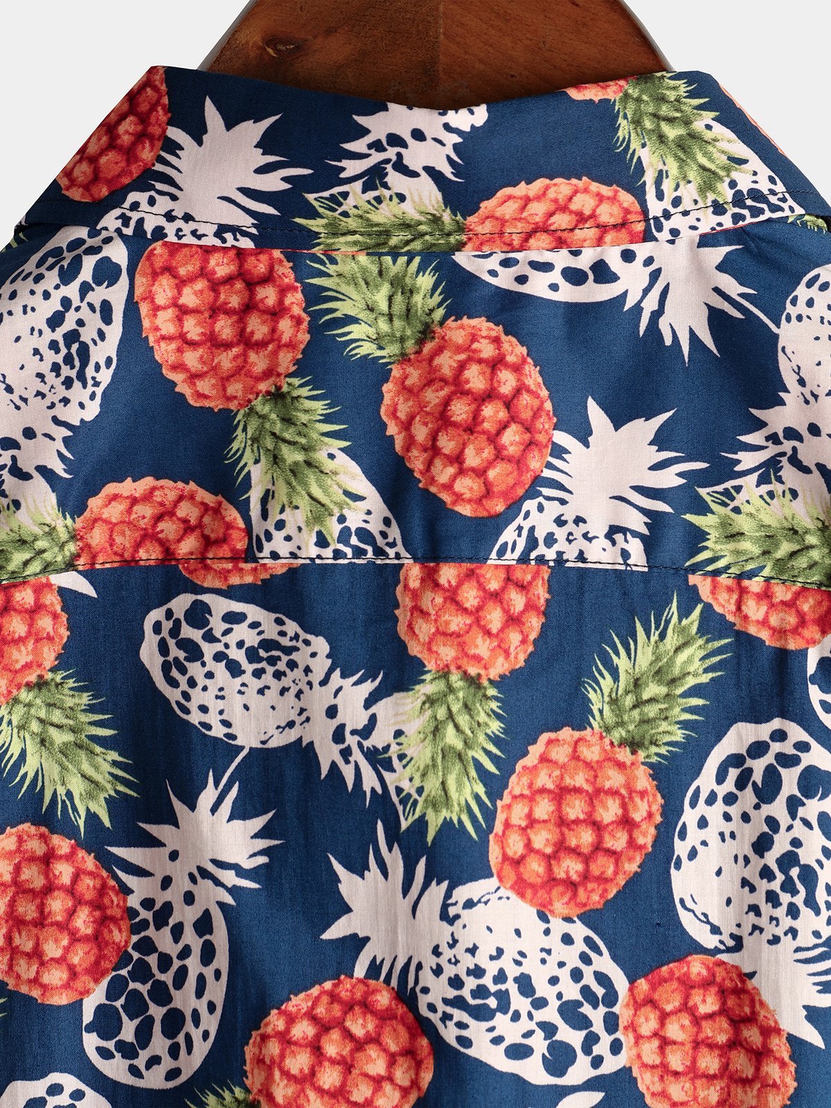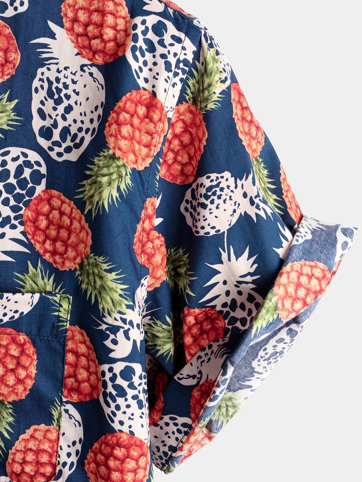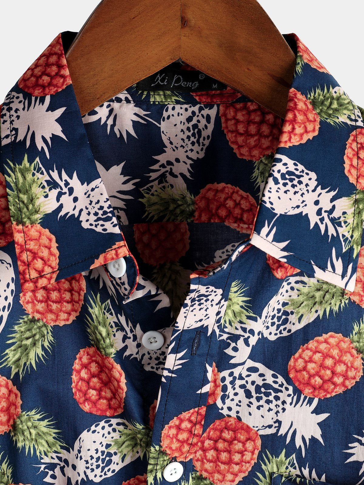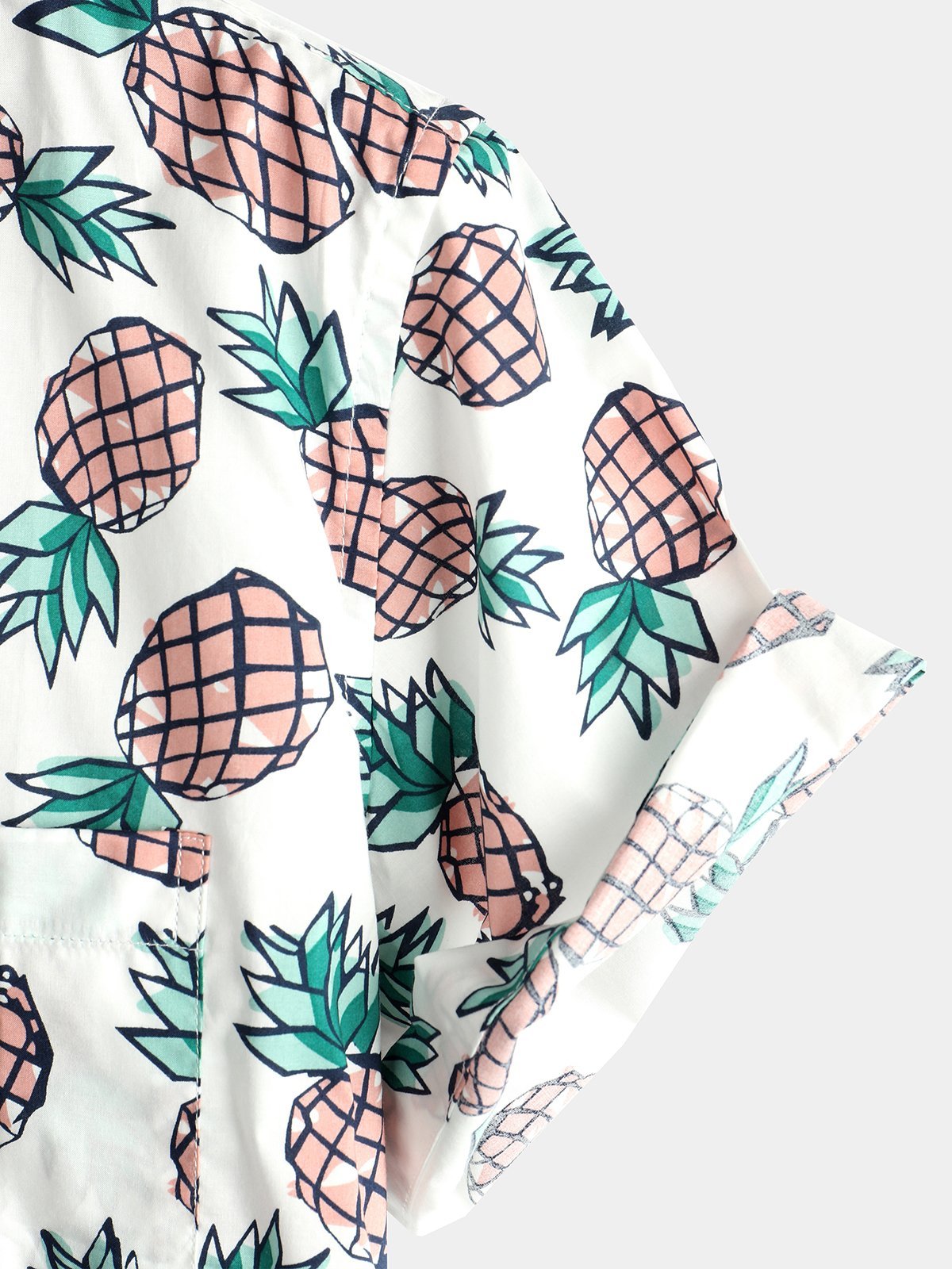 Herren Blumendruck Baumwolle Kurzarmhemd