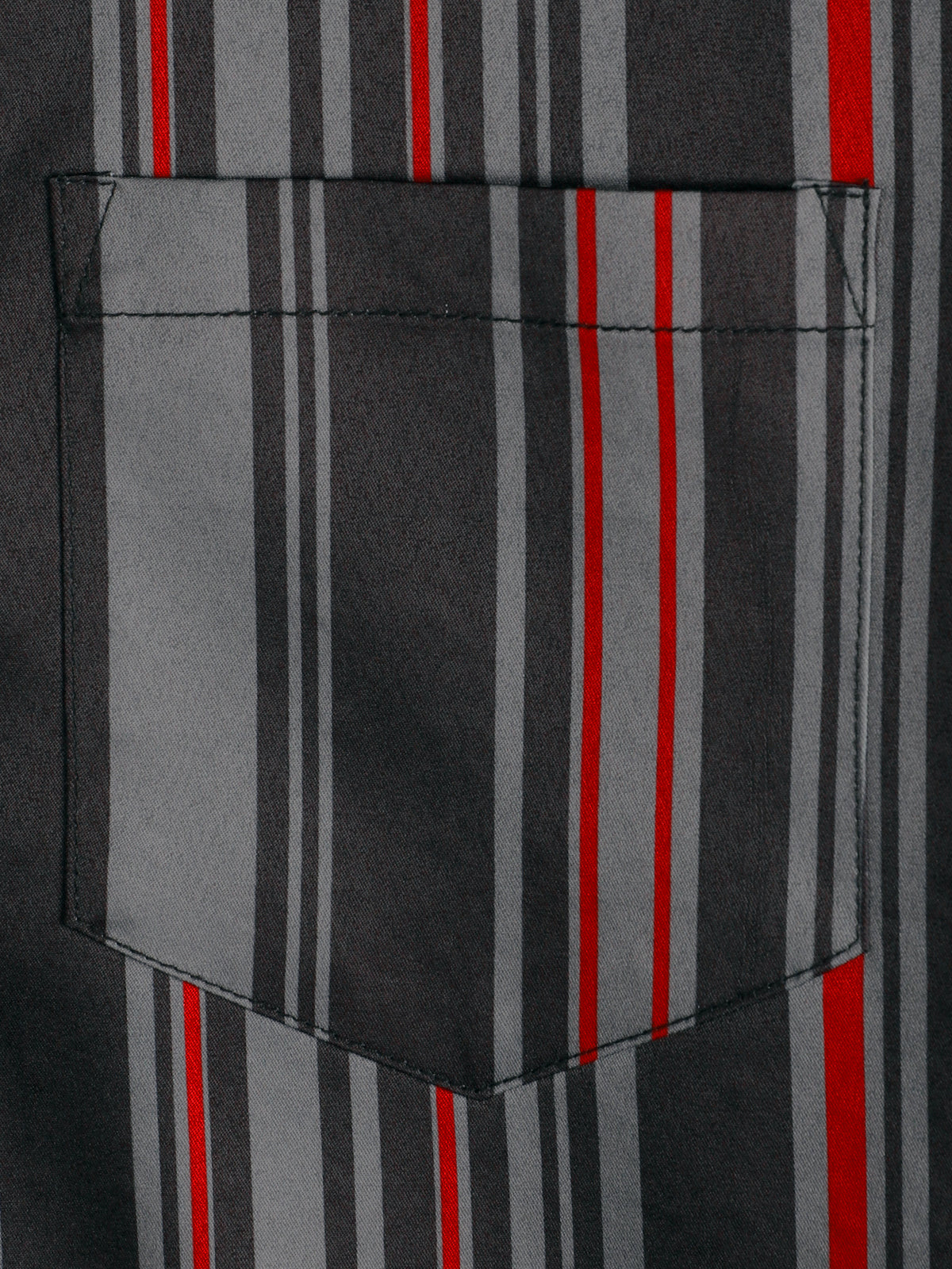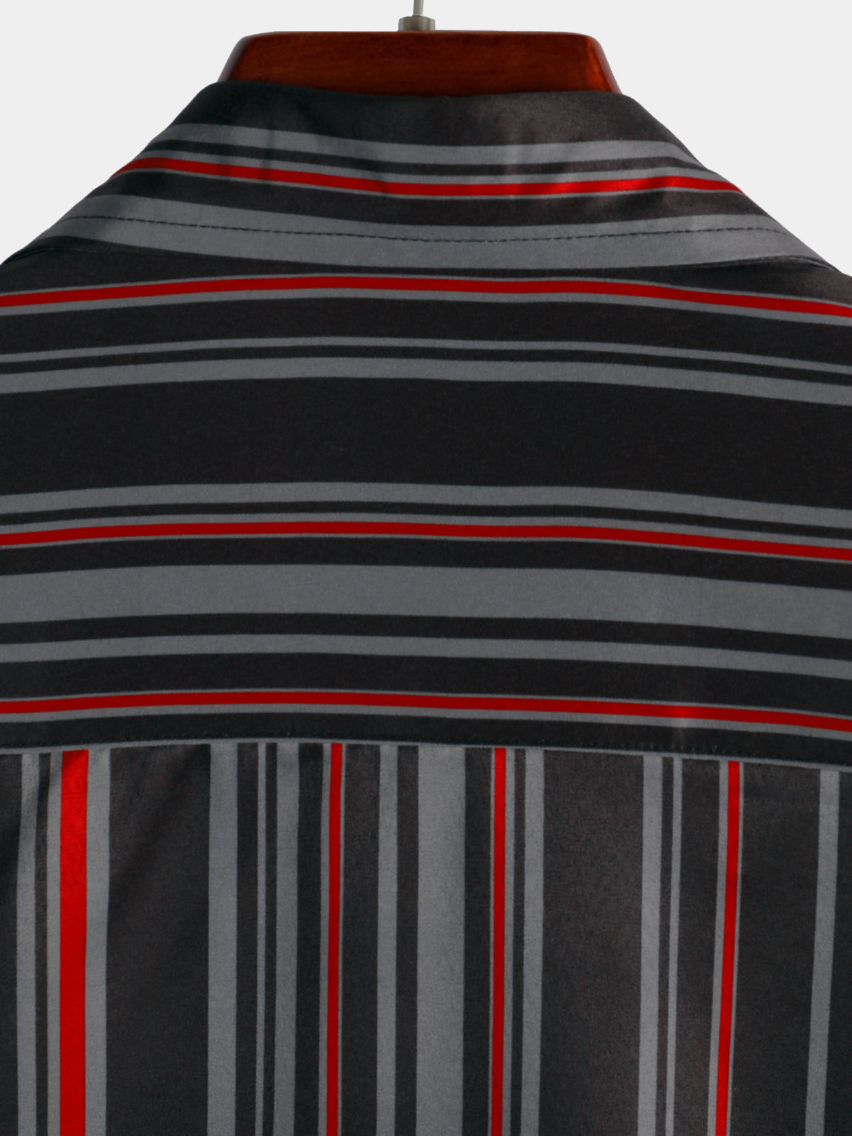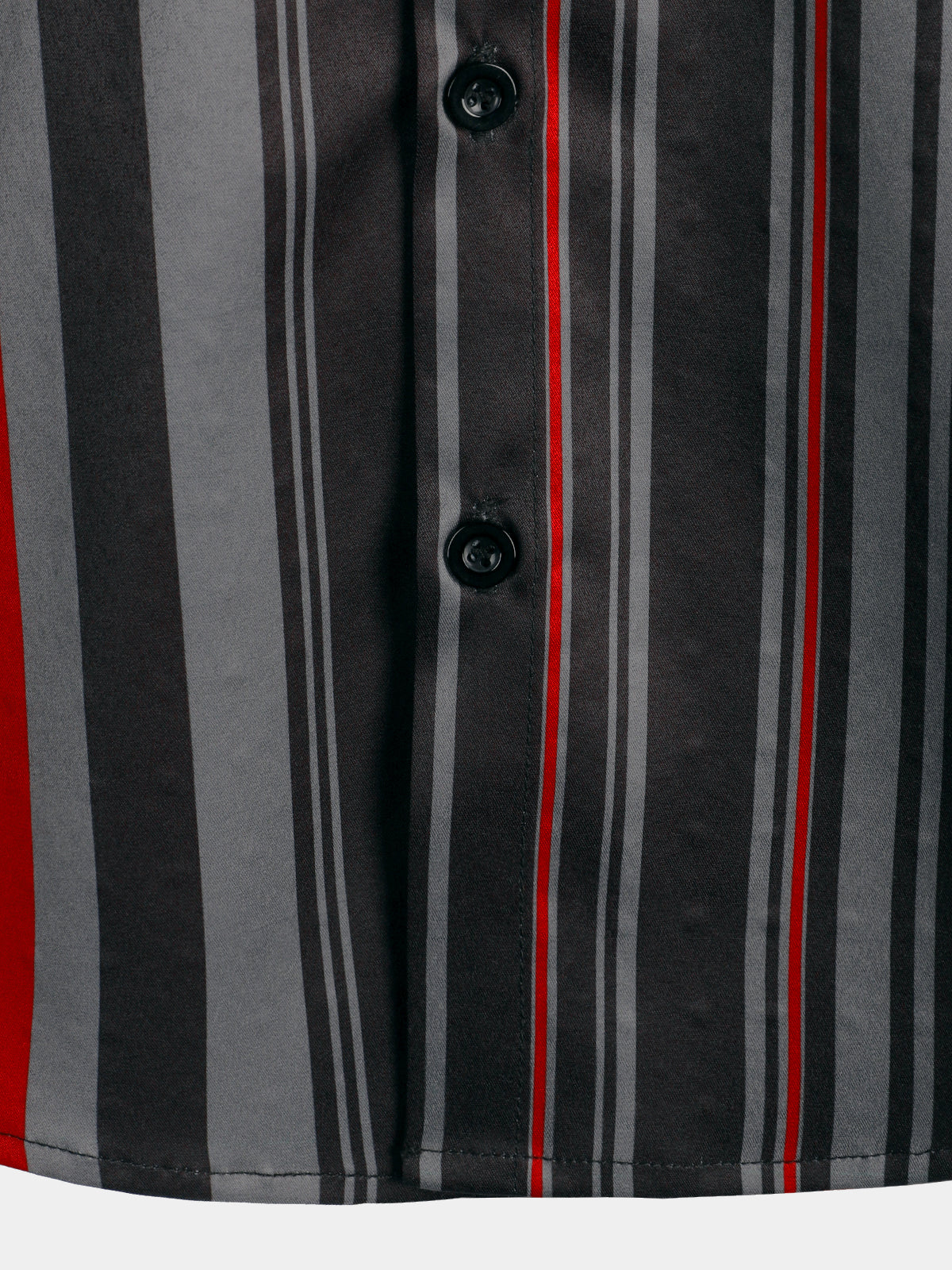 Herren Retro Schwarz-Rot Vertikal Gestreiftes Vintage Kurzarmhemd