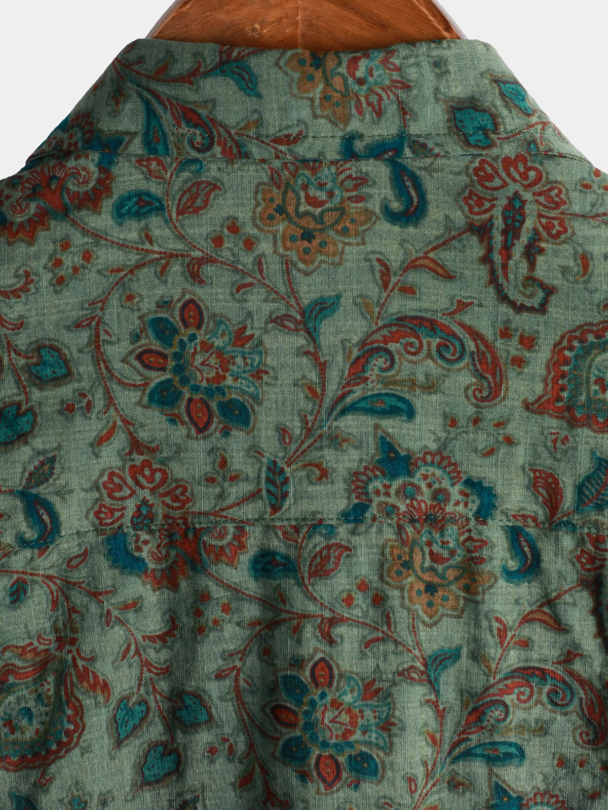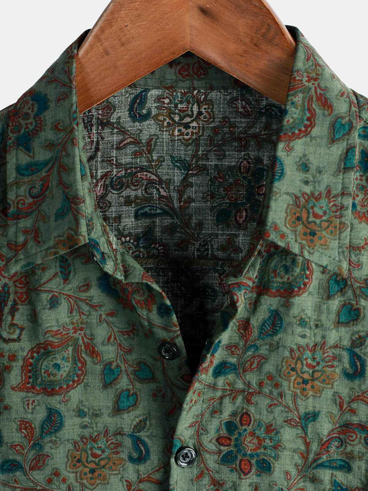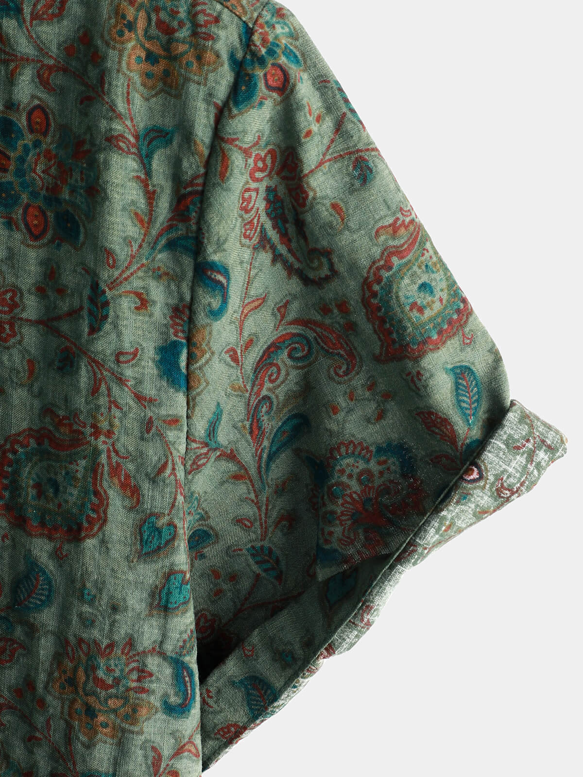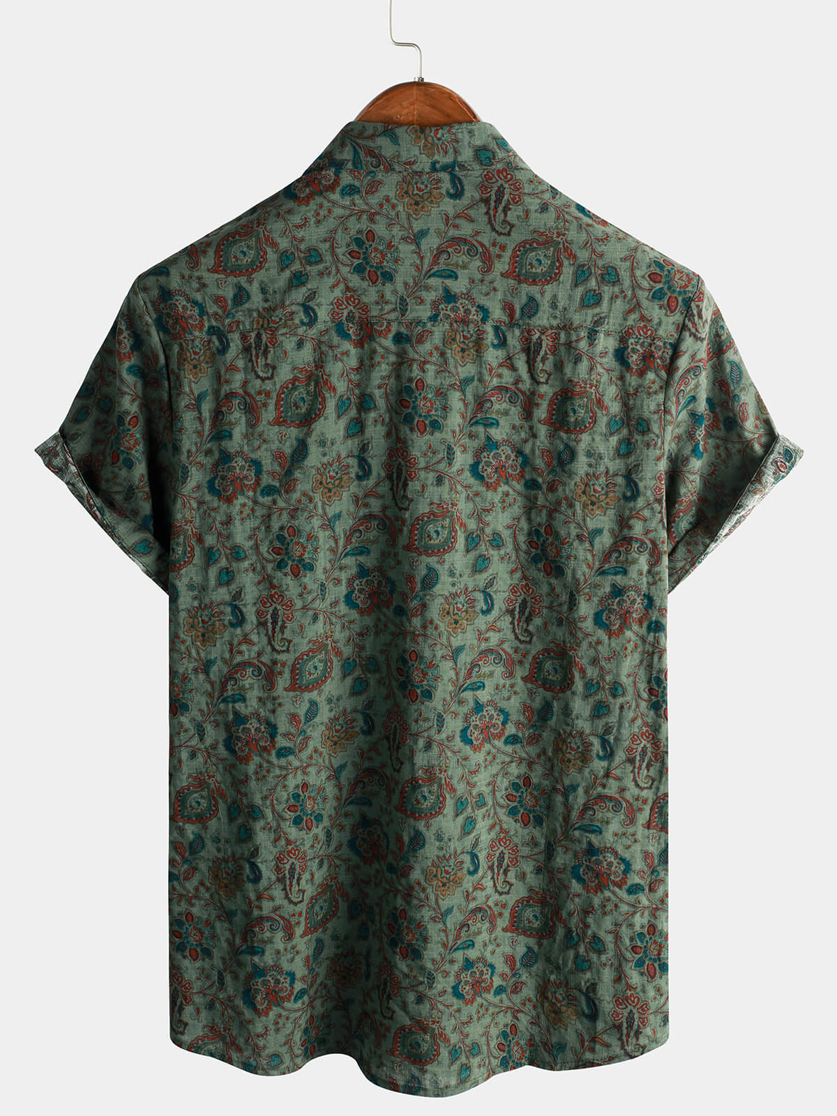 Herren Baumwolle Kurzarmhemd Paisley-Blumenmuster